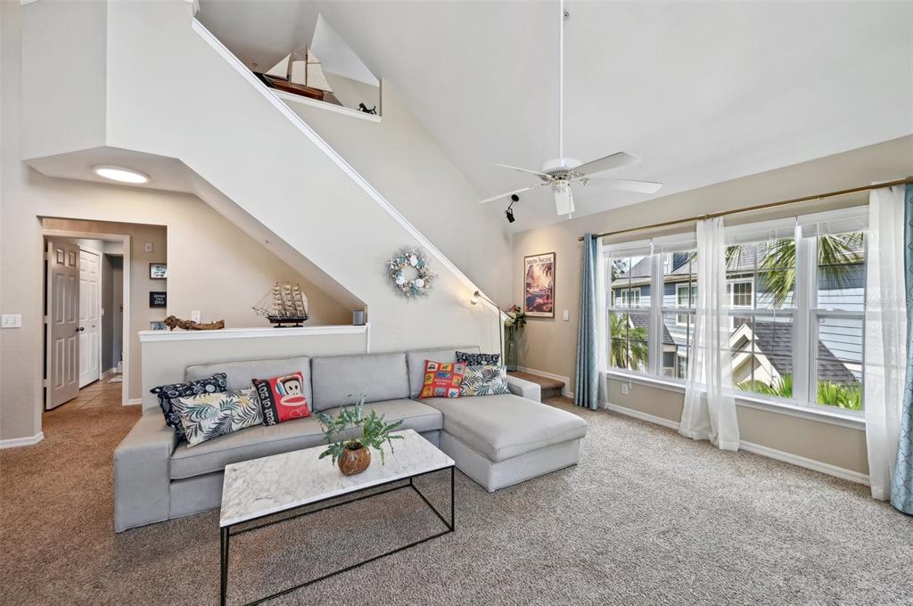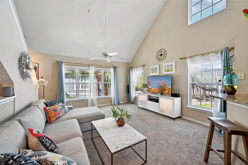 Walk-In Closet(s)Ceiling Fan(s) High Ceilings Living Room/Dining Room Combo Open Floorplan Window Treatments Primary Bedroom Main Floor Kitchen/Family Room ComboCathedral Ceiling(s)Exterior Features: