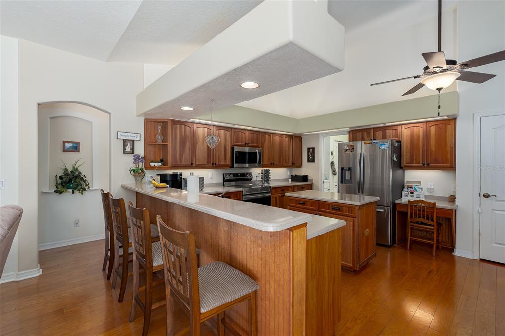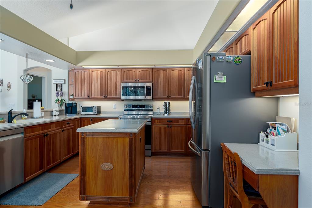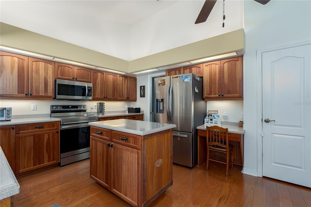 Split Bedroom Walk-In Closet(s) Vaulted Ceiling(s)Ceiling Fan(s) Thermostat Open Floorplan Solid Surface Counters Primary Bedroom Main Floor Kitchen/Family Room Combo Tray Ceiling(s)Cathedral Ceiling(s)Exterior Features: