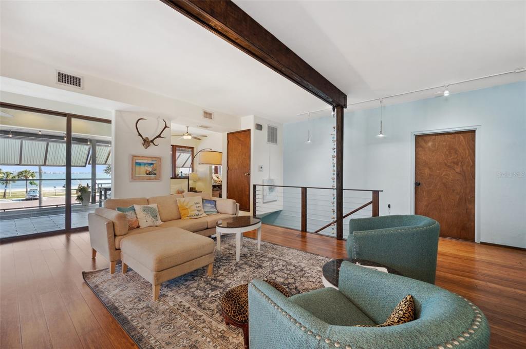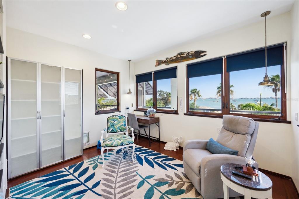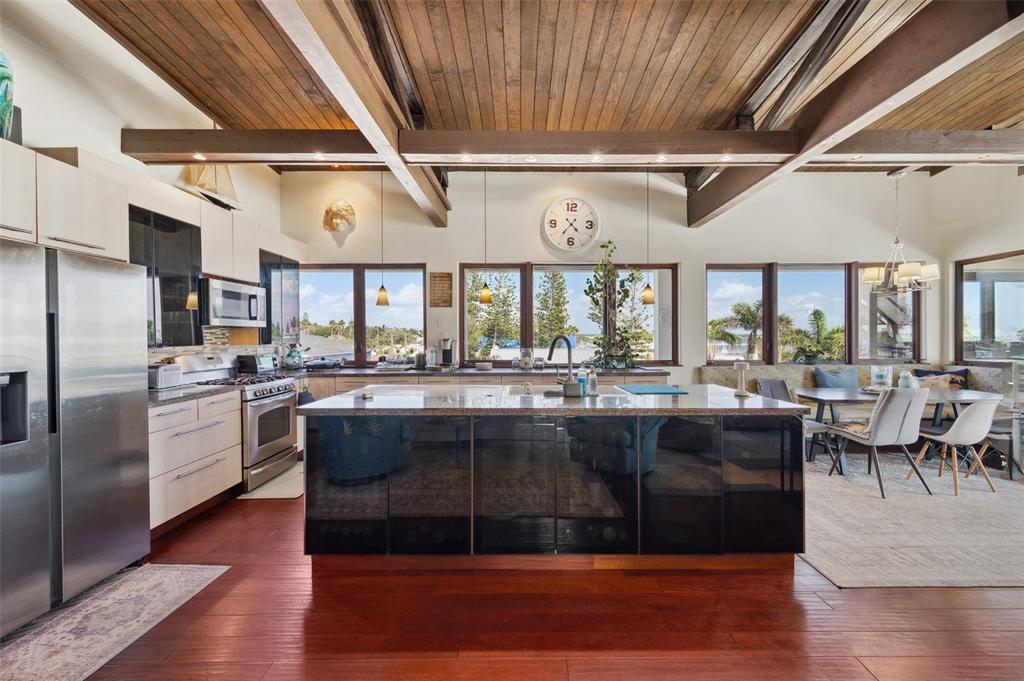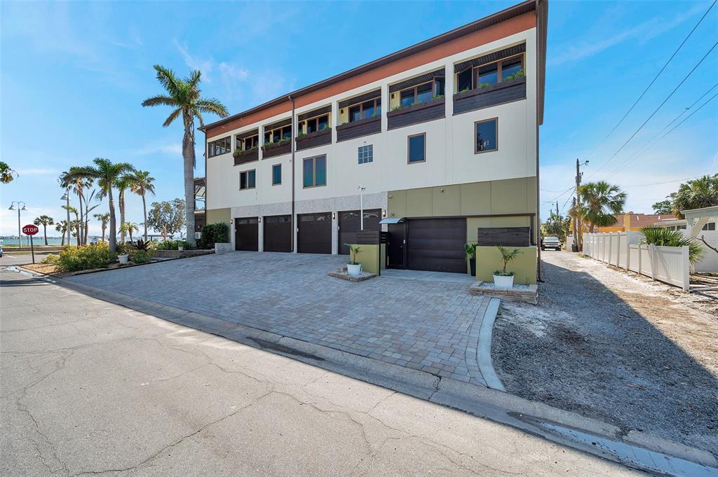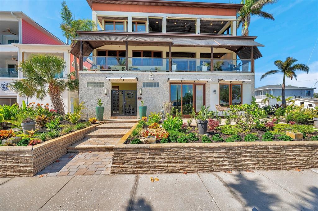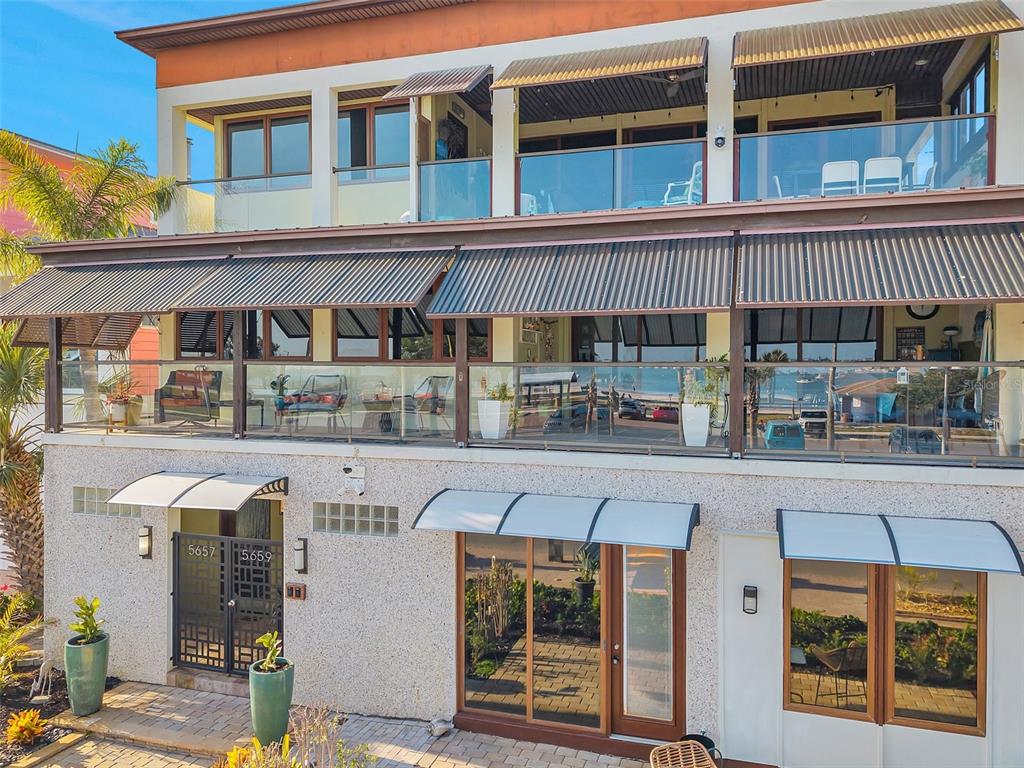 One-of-a-kind waterview single family home presenting a truly exceptional offering along the shimmering shores of boca ciega bay – this extraordinary all-concrete waterfront estate is a masterclass in versatility, privacy and architectural excellence. designed to accommodate multi-generational living, luxury guest hosting or supplementing rental income, this one-of-a-kind residence delivers a caliber of refinement and opportunity that is seldom available. this expansive residence offers 7 bedrooms, 7.5 bathrooms, and a spacious 5-car garage, which includes a tandem bay that provides additional space—allowing parking for up to 6 vehicles, including rv clearance. the well-planned layout includes an elevator servicing all three floors, with separate living quarters on each level. every floor features its own private entrance and upscale finishes, ensuring both flexibility and privacy for large or extended families. at the heart of the estate lies the crown jewel – the magnificent top floor. the owner’s retreat includes 3 bedrooms, 3 bathrooms, an office and laundry room. rich mahogany floors, soaring vaulted ceilings with exposed beams, and walls of windows that fill the interior with natural light and uninterrupted views of boca ciega bay. the gourmet kitchen features an oversized island, generous cabinetry, and boasts a gas stove—a rare and sought after luxury in this area. the primary suite is a true sanctuary that features an expansive walk-in shower, dual water closets, and a custom-designed walk-in closet with premium built-ins. the covered veranda spans the width of the residence, which offers panoramic waterfront views and spectacular sunsets—creating the perfect space to unwind or entertain. second floor – flexible living potential originally designed as a 3-bedroom, 3-bathroom layout with a home office, the second floor currently includes a partition wall that creates a 2-bedroom, 2-bathroom suite along with a home office in the front and a 1-bedroom, 1-bath executive apartment with kitchenette in the back. this flexible design is ideal for extended family, guests, or private rental use. with minimal effort, the floor can be easily reconfigured back to its original 3-bedroom, 3-bath layout with office, maximizing the home's full potential. completing the estate on the ground floor is a charming studio suite with a full bathroom featuring a walk-in shower—ideal for guests, staff quarters, or additional rental income. this space is artfully surrounded by windows, framing breathtaking water views from every angle and seamlessly blending indoor elegance with the natural beauty outside. this level also includes a laundry room, a separate half bath and a well-equipped workshop for creative or practical pursuits. the estate is outfitted with hurricane-impact windows and sliders throughout. each living space is independently climate-controlled with its own air conditioning system. the home features tankless gas water heaters, fresh interior paint, and a whole-house water filtration system. the grounds are beautifully landscaped and irrigated with a well-water system5659-5657 SHR S, GULFPORT, FL 33707