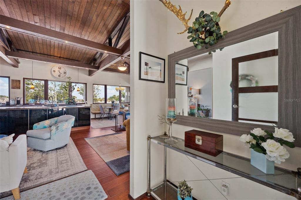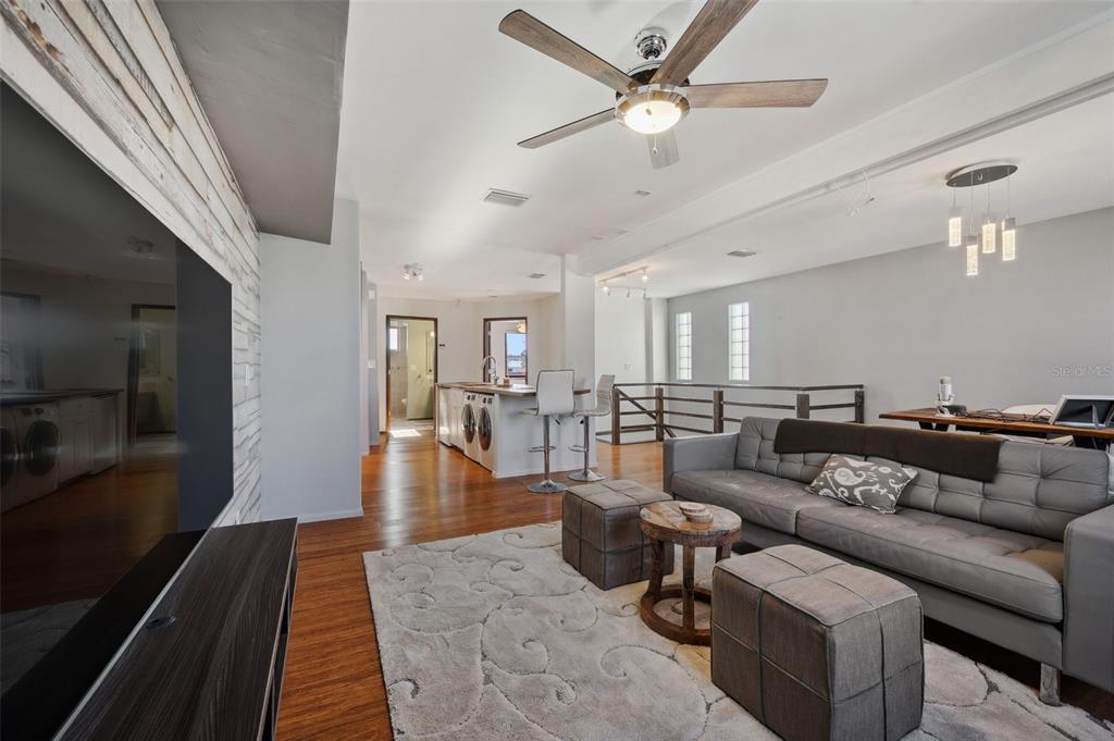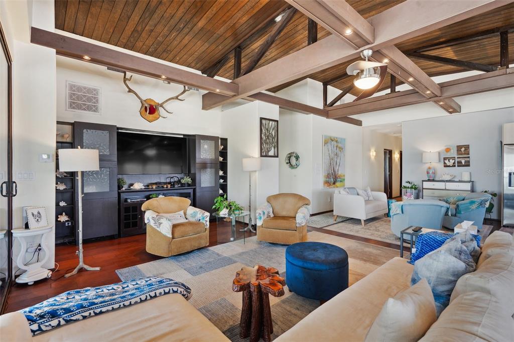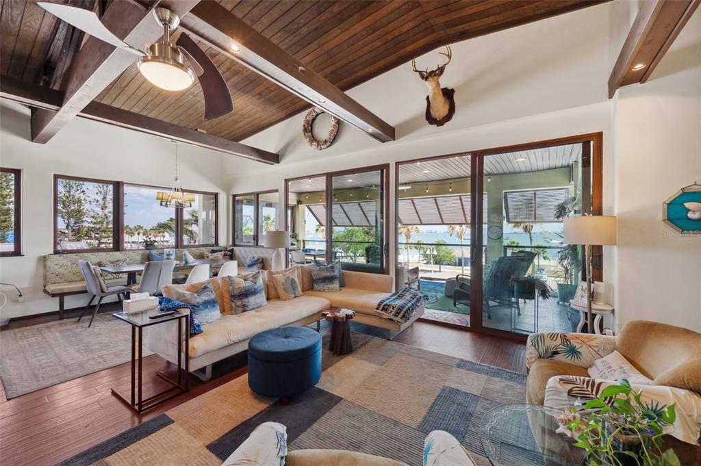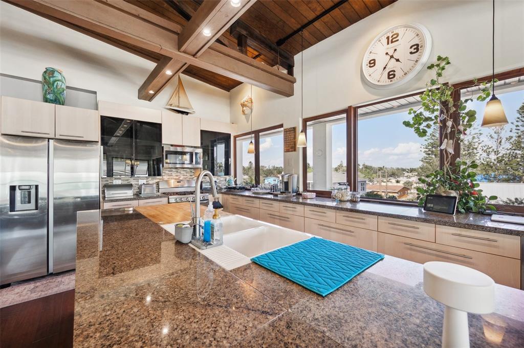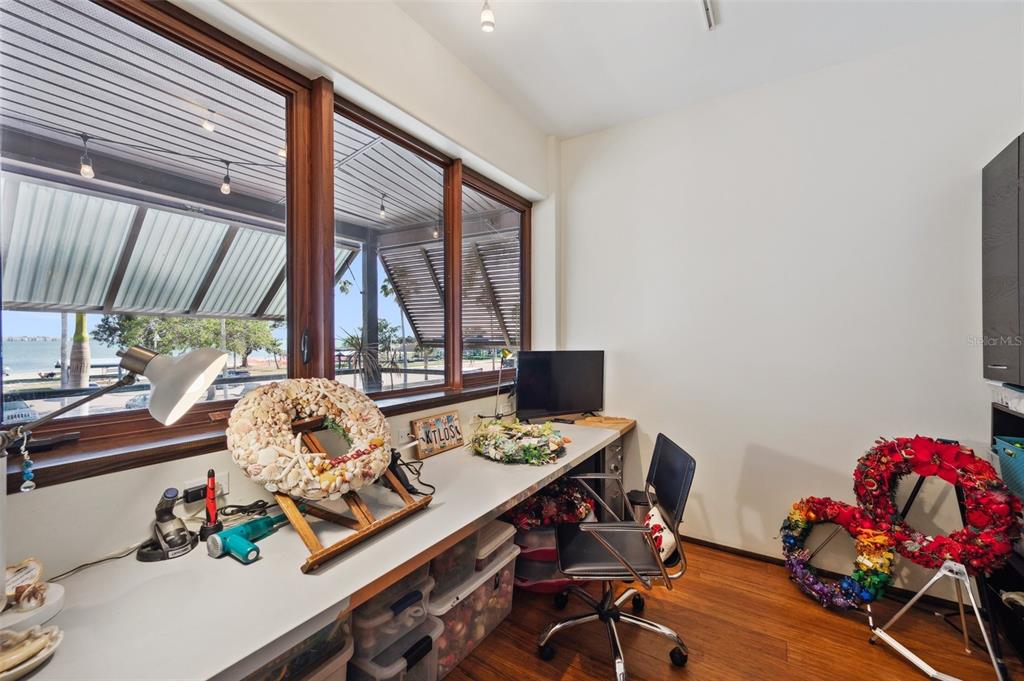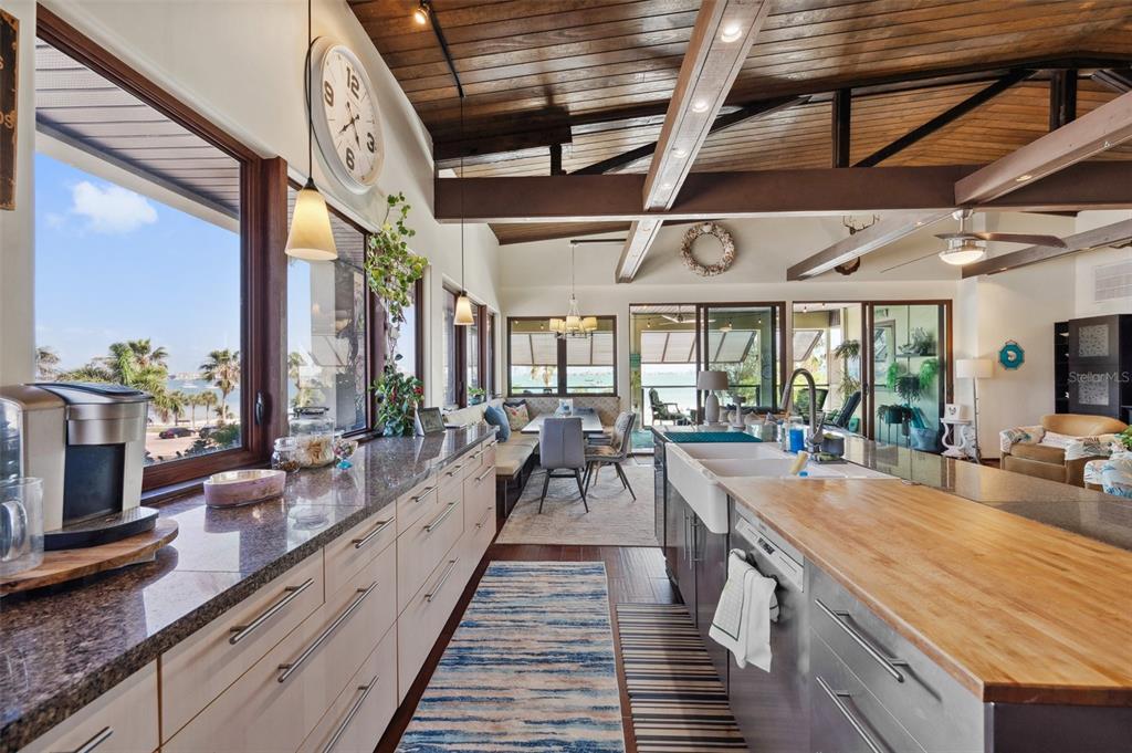 One-of-a-kind waterview single family home presenting a truly exceptional offering along the shimmering shores of boca ciega bay – this extraordinary all-concrete waterfront estate is a masterclass in versatility, privacy and architectural excellence. designed to accommodate multi-generational living, luxury guest hosting or supplementing rental income, this one-of-a-kind residence delivers a caliber of refinement and opportunity that is seldom available. this expansive residence offers 7 bedrooms, 7.5 bathrooms, and a spacious 5-car garage, which includes a tandem bay that provides additional space—allowing parking for up to 6 vehicles, including rv clearance. the well-planned layout includes an elevator servicing all three floors, with separate living quarters on each level. every floor features its own private entrance and upscale finishes, ensuring both flexibility and privacy for large or extended families. at the heart of the estate lies the crown jewel – the magnificent top floor. the owner’s retreat includes 3 bedrooms, 3 bathrooms, an office and laundry room. rich mahogany floors, soaring vaulted ceilings with exposed beams, and walls of windows that fill the interior with natural light and uninterrupted views of boca ciega bay. the gourmet kitchen features an oversized island, generous cabinetry, and boasts a gas stove—a rare and sought after luxury in this area. the primary suite is a true sanctuary that features an expansive walk-in shower, dual water closets, and a custom-designed walk-in closet with premium built-ins. the covered veranda spans the width of the residence, which offers panoramic waterfront views and spectacular sunsets—creating the perfect space to unwind or entertain. second floor – flexible living potential originally designed as a 3-bedroom, 3-bathroom layout with a home office, the second floor currently includes a partition wall that creates a 2-bedroom, 2-bathroom suite along with a home office in the front and a 1-bedroom, 1-bath executive apartment with kitchenette in the back. this flexible design is ideal for extended family, guests, or private rental use. with minimal effort, the floor can be easily reconfigured back to its original 3-bedroom, 3-bath layout with office, maximizing the home's full potential. completing the estate on the ground floor is a charming studio suite with a full bathroom featuring a walk-in shower—ideal for guests, staff quarters, or additional rental income. this space is artfully surrounded by windows, framing breathtaking water views from every angle and seamlessly blending indoor elegance with the natural beauty outside. this level also includes a laundry room, a separate half bath and a well-equipped workshop for creative or practical pursuits. the estate is outfitted with hurricane-impact windows and sliders throughout. each living space is independently climate-controlled with its own air conditioning system. the home features tankless gas water heaters, fresh interior paint, and a whole-house water filtration system. the grounds are beautifully landscaped and irrigated with a well-water system5659-5657 SHR S, GULFPORT, FL 33707