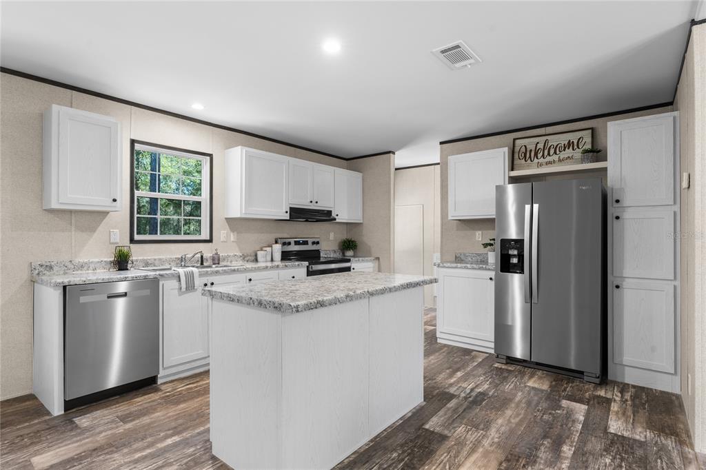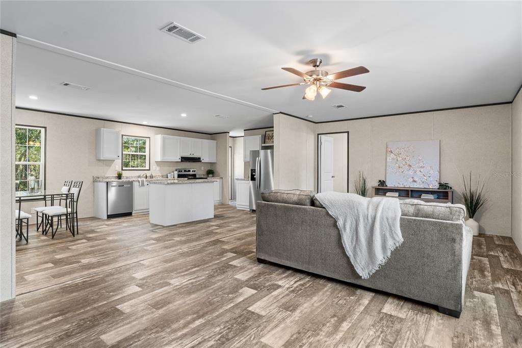 Welcome to this brand new home in black jack ridge estates! this 2025 champion prime 3br|2ba, 1,493 sf manufactured home offers the perfect combination of modern design, energy efficiency, and spacious living on a nearly 1 acre lot. this property has all new infrastructure including electric, septic, and well to provide years of hassle free low maintenance living. this stunning property is energy star certified and built to wind zone 2 standards, ensuring comfort and durability. energy-efficient features include r-22 floor and roof insulation, r-11 insulated walls, and low-e insulated windows, designed to enhance comfort and reduce energy costs. inside, the open concept living space creates a seamless flow between the living, dining, and kitchen areas, with durable armorflor flooring throughout. the modern kitchen includes mission-style cabinetry with hidden hinges, a stainless-steel sink, sleek appliances (30" electric range and hood, dishwasher, and an 18-cu ft refrigerator). the spacious bedrooms offer ample closet space with ventilated shelving for organized living. the primary suite includes a luxurious 60” fiberglass shower and a spacious closet, while the secondary bathroom features a tub/shower combo. the exterior of the home is as durable as it is stylish, with vinyl lap siding, osb sheathing, and 3-tab shingles. this property provides plenty of space for outdoor activities, gardening, or simply enjoying the natural beauty of florida including proximity to a regional gem, cedar lakes woods and gardens. this home is ideal for those seeking a blend of modern comfort and rural charm with low living costs while still being close to the area's favorite shopping and entertainment locations. don’t miss this opportunity—qualified buyers are encouraged to schedule your private showing today!5671 NE 108, BRONSON, FL 32621