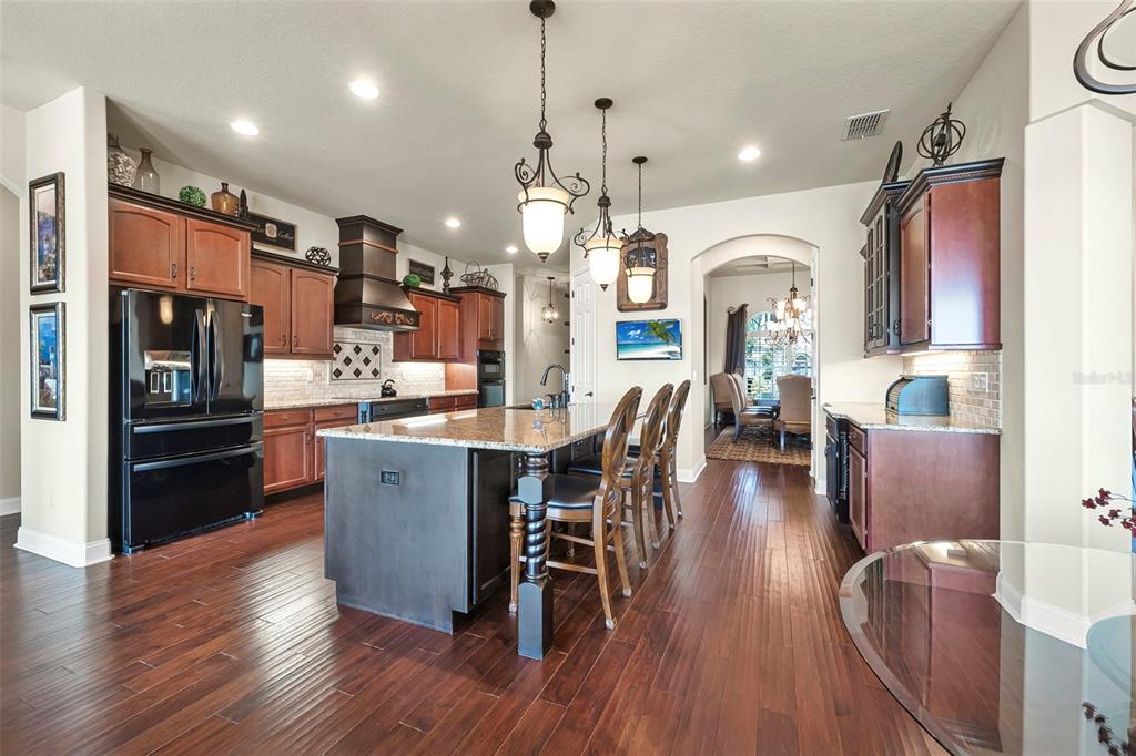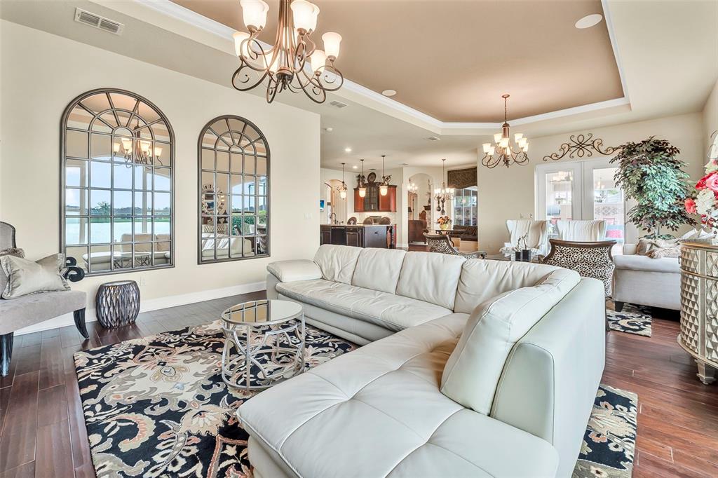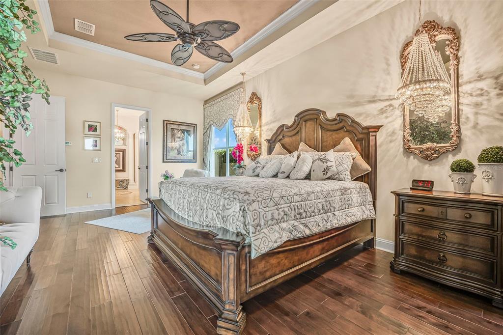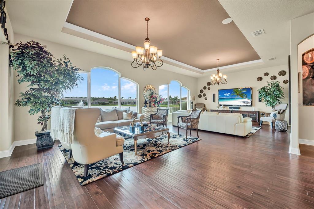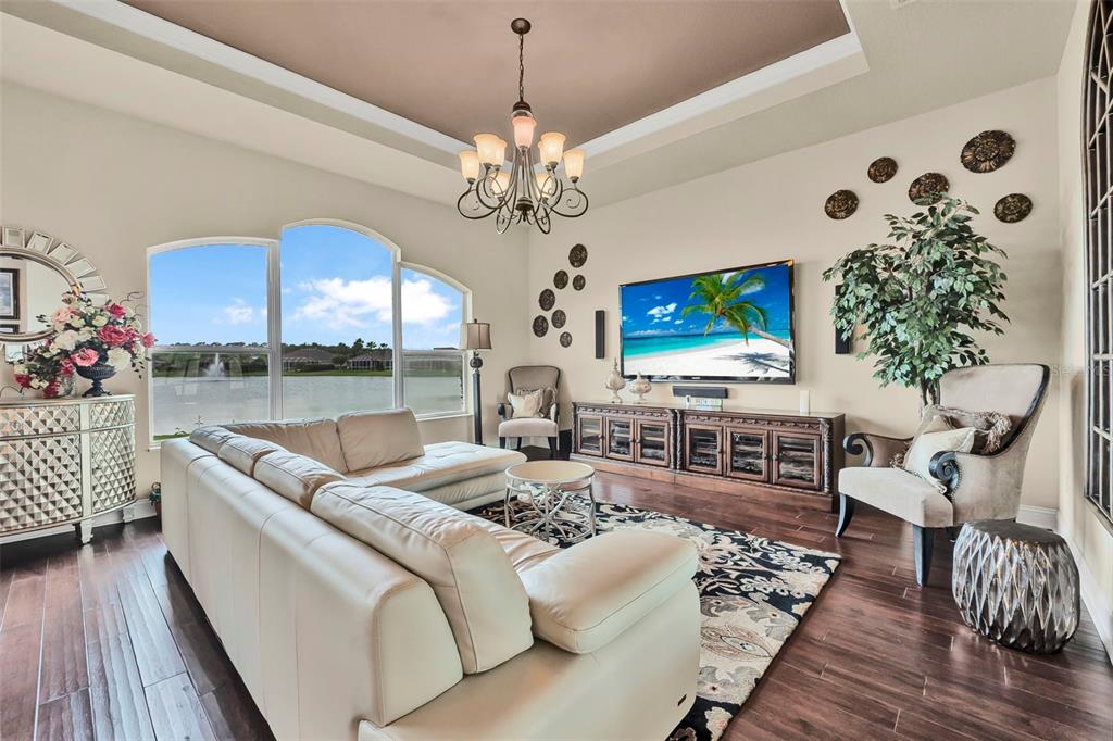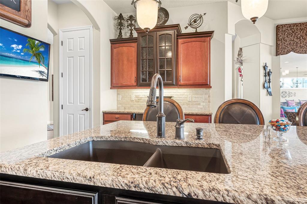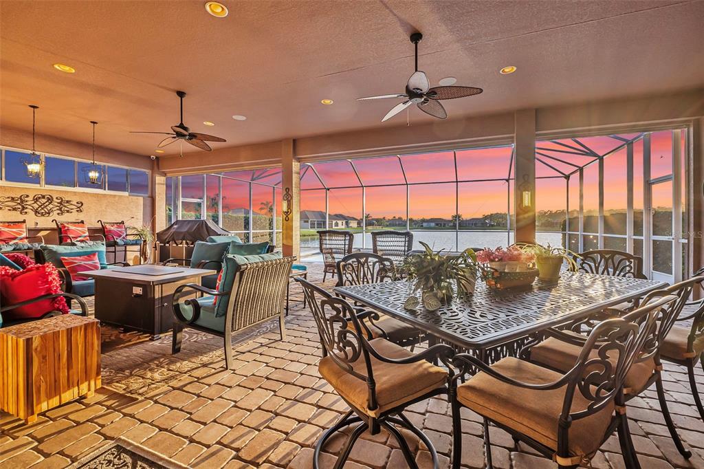 Welcome to 568 luna bella lane, a luxurious lakefront estate nestled in the renowned promenade parke part of venetian bay in new smyrna beach. this beautifully appointed custom home offers over 3,200 square feet of air-conditioned living space, combining elegance, comfort, and functionality in one of the most sought-after communities in volusia county. from the moment you arrive, you'll be captivated by the home’s commanding presence, enhanced by lush landscaping and double leaded glass entry doors. step inside to discover soaring ceilings and refined architectural details such as coffered ceilings, crown molding, and rounded archways. the spacious split floor plan includes three generously sized bedrooms, three full bathrooms, and a half pool bath, providing the perfect blend of privacy and openness for both everyday living and entertaining. the heart of the home is the gourmet kitchen, thoughtfully designed with a large granite island, custom cabinetry, walk-in pantry, built-in seating with storage, and a separate coffee bar area. it opens seamlessly to the great room and dining area, allowing you to stay engaged with guests while preparing meals. just off the main living space is a custom-designed wine room that holds up to 200 bottles of wine, offering an ideal climate-controlled space for collectors and enthusiasts. this room can also be easily converted into an office or den to suit your needs. the primary suites offers luxurious retreats, each with walk-in closets and spa-inspired bathrooms. whether hosting overnight guests or enjoying multigenerational living, this home accommodates it all in style. every room is crafted with attention to detail, from designer finishes to the custom mural in the formal dining area. tep outside to your private outdoor oasis, designed with entertainment in mind. the covered lanai features a full summer kitchen, wet bar, and a cozy gas fire pit. the screened saltwater pool with solar heating overlooks a tranquil fountained lake, creating a serene backdrop for alfresco dining, weekend gatherings, or peaceful sunset views. the west-facing side of the home also includes electric hurricane shutters for added peace of mind. additional features include a two-car garage, fully furnished interiors with curated antiques and custom upholstery, and meticulous landscaping framed by concrete borders. located within venetian bay, residents enjoy access to top-tier amenities including an 18-hole championship golf course, fitness center, walking and biking trails, and dining options—all just minutes from new smyrna beach’s charming downtown and coastal attractions.568 LUNA BELLA, NEW SMYRNA BEACH, FL 32168