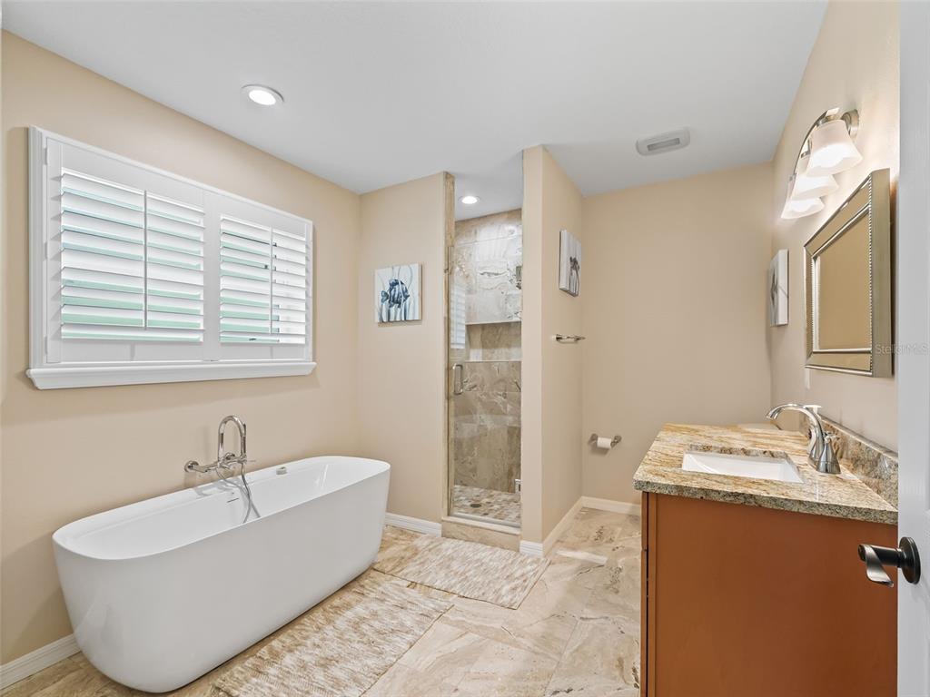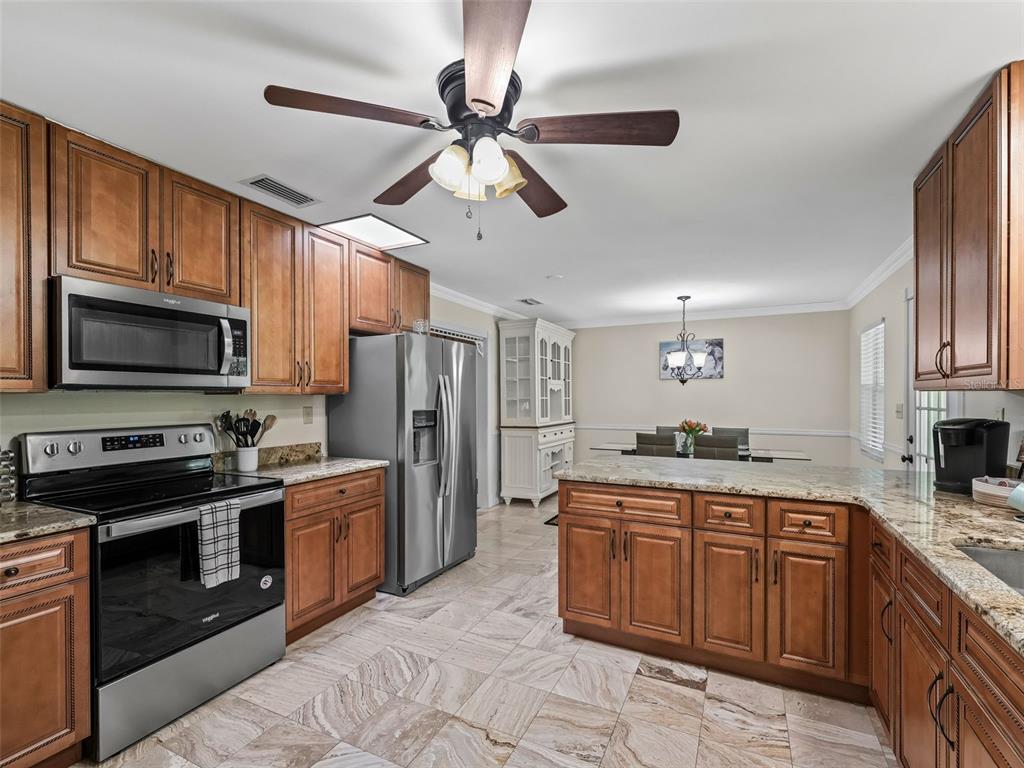 Split BedroomCeiling Fan(s) Eating Space In Kitchen Stone Counters Thermostat Window Treatments Primary Bedroom Main FloorExterior Features: