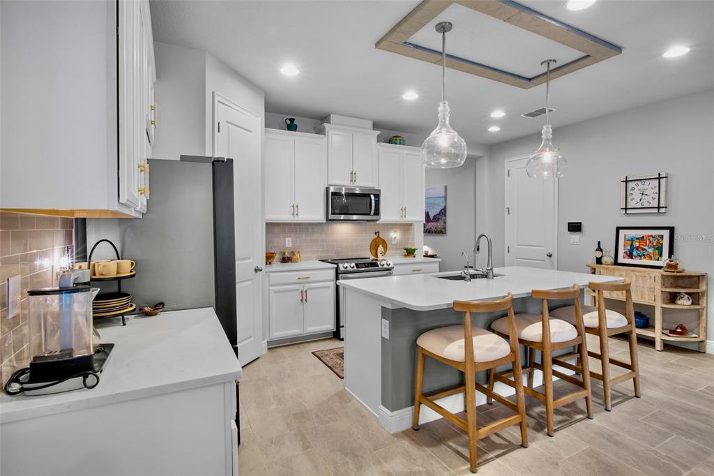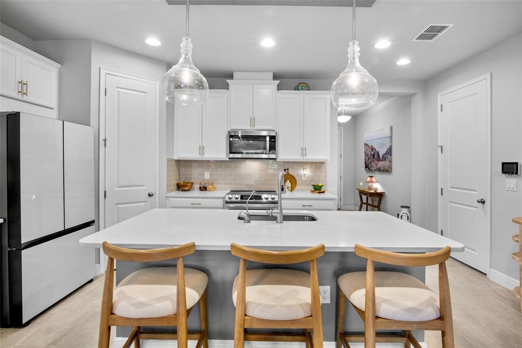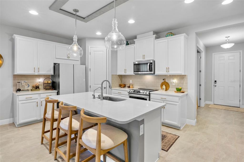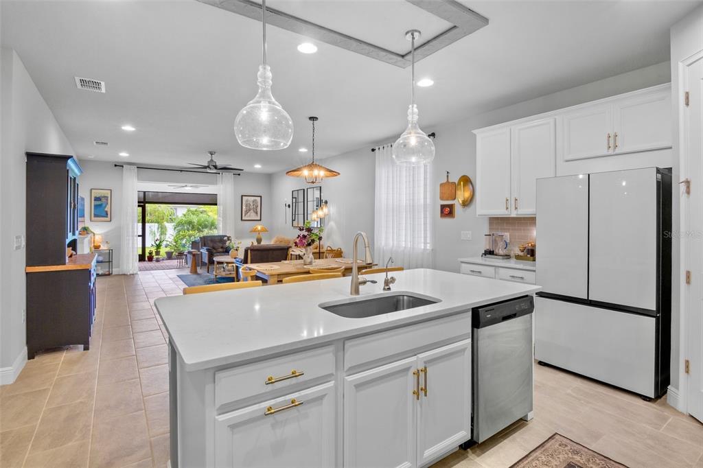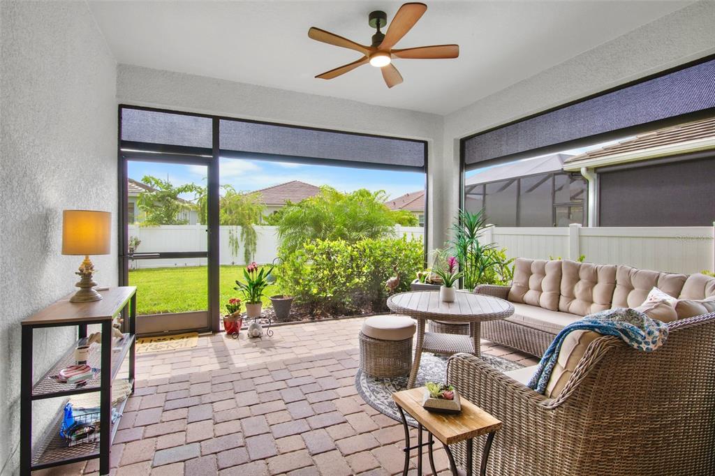 Opportunity at sunrise! this two-year-old home is better than new, featuring functional and stylish upgrades throughout. all lighting and fans have been thoughtfully upgraded. the chef's dream kitchen boasts a samsung glass-front refrigerator, custom cabinet pulls, and a beautiful quartz island with ample space for culinary creations. the open floor plan and generously sized rooms provide comfortable areas for gathering, as well as privacy. a light-filled den/study at the front of the home, complete with french doors, is perfect for a home office or music lessons. the expansive primary bedroom offers a peaceful retreat with an ensuite bath, walk-in shower, and an extensive walk-in closet. step outside to a screened lanai, ideal for a casual happy hour. the lanai features sunsolution privacy motorized screens that, when lowered, create an additional outdoor air-conditioned room. the landscaped yard is fully fenced, perfect for your family and furry best friends. additional functional upgrades include a whole-home reverse osmosis water system, a tankless gas hot water heater, and an extended garage with an epoxy floor. sunrise preserve is a resort-style gated community located in the prime palmer ranch area of sarasota. the beautiful clubhouse is the heart of the community, available for activities and rentals, and includes a self-catering kitchen with a coffee bar. homeowners also have access to a fully equipped gym. outdoor amenities include a zero-entry pool, hot tub, tennis, pickleball, and bocce courts. enjoy your new resort lifestyle with lounge chairs, umbrellas, and covered outdoor spaces at sunrise preserve. this home sits high and dry and does not require flood insurance. there are no cdd fees, and low hoa fees include irrigation and ground maintenance. the community is close to the legacy bike trail, zoned for top schools, minutes from the best beaches, and offers easy access to downtown sarasota and venice.5754 LONG SHR, SARASOTA, FL 34238