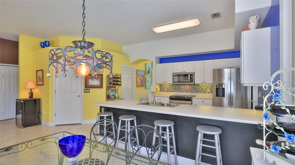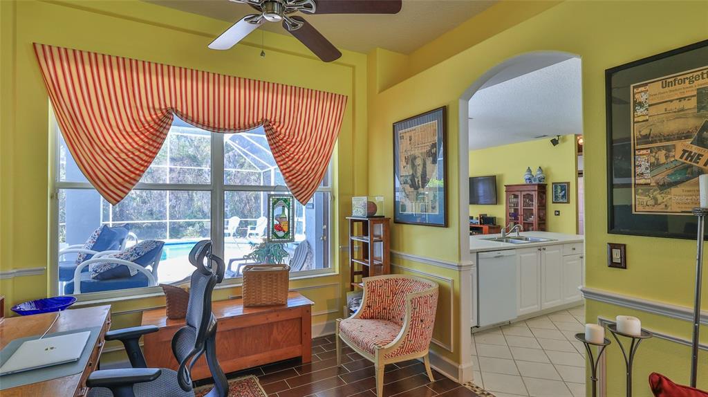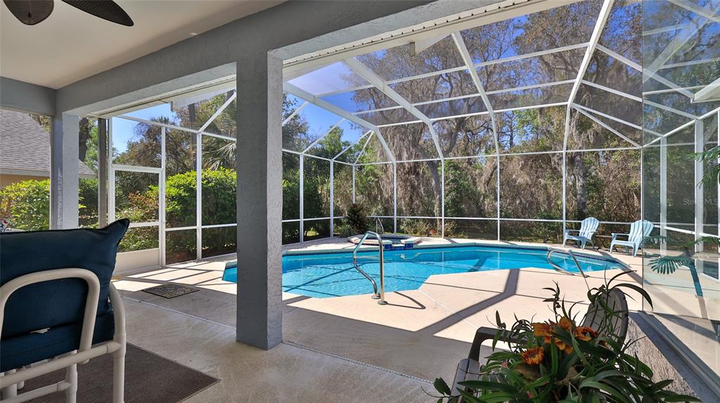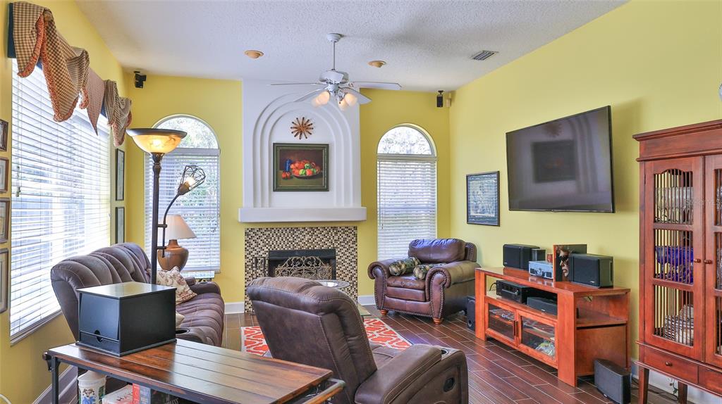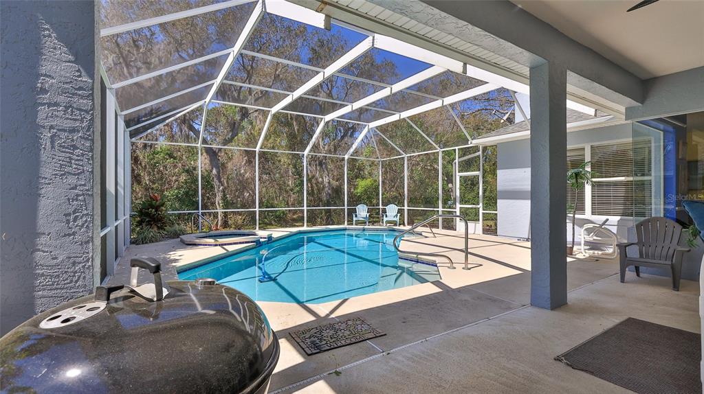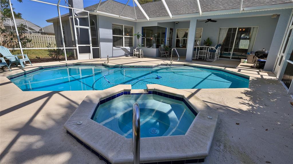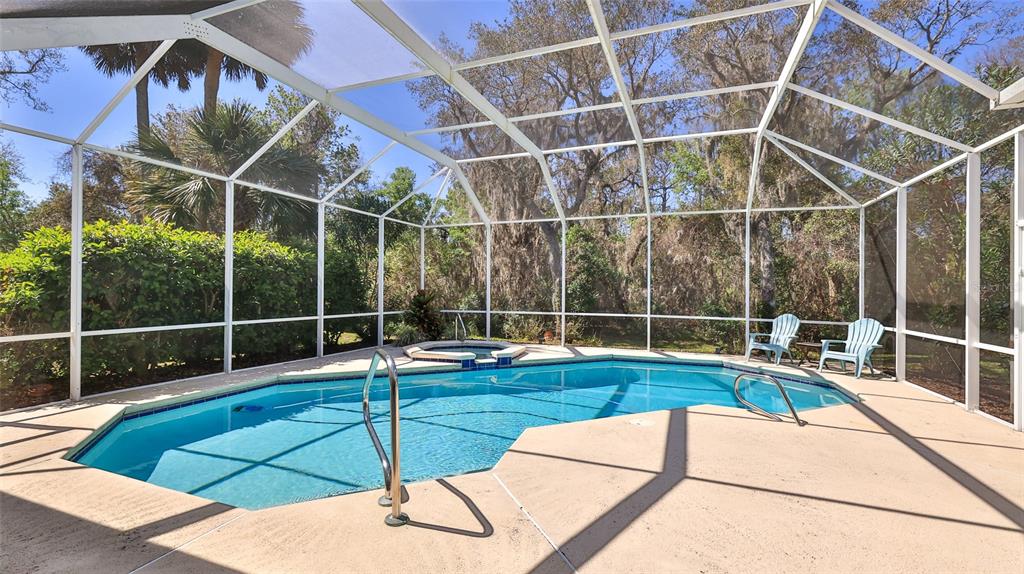 Built by ici, this home is in the desirable countryside west subdivision and features an ideal floor plan with grand double front doors, a split layout, 10-foot ceilings and a bright, open design enhanced by crown molding accents. on a quiet street with sidewalks, this property offers great potential, as the sellers are empty nesters and downsizing. a new roof was installed in july 2022, providing added peace of mind. the kitchen is well-appointed with a walk-in pantry and a breakfast bar. the open-concept design seamlessly connects the kitchen, breakfast nook and family room, which includes a fireplace, all overlooking the private screened pool with views of the conservation area. ideal for relaxation and entertaining. the formal living room is used as a secondary family room, and the dining room serves as a home office, offering versatility to suit various needs. conveniently near spruce creek high school, this home is an excellent choice. the private primary suite features an expansive walk-in closet, a beautiful view of the pool deck, a jacuzzi-style tub, a separate tiled shower and dual vanities. two guest bedrooms share a full bath, while the third bedroom offers flexibility as an office or additional guest space.5776 FALLING TREE, PORT ORANGE, FL 32127