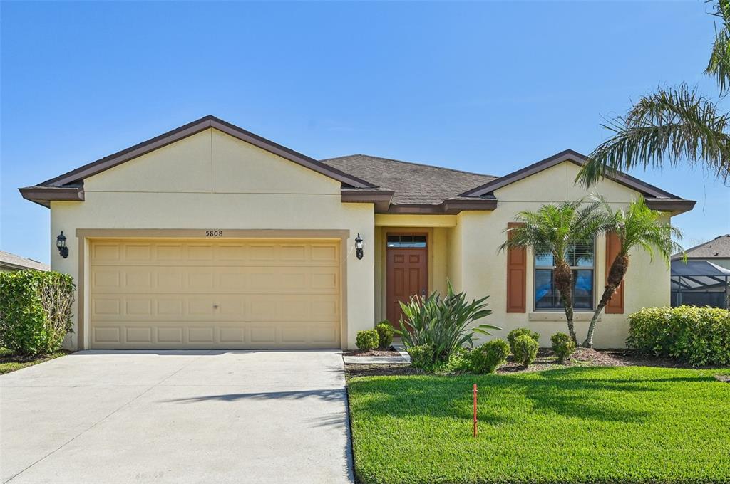 Welcome home to this stunning home in the highly sought-after harrison ranch community! with an assumable loan at an incredible 2.75% interest rate and a balance of $230k, this 3-bedroom, 2-bathroom home plus a bonus room is a must-see. situated on a serene pond, you can enjoy breathtaking sunrises while sipping your morning coffee. the home features well-manicured landscaping and an open floor plan ideal for entertaining. the kitchen boasts stainless steel appliances, granite countertops, cabinets with crown molding, and a spacious island for extra storage. the backyard offers a screened lanai to enjoy the beautiful florida weather and wildlife, with ample space to add a pool. the primary suite includes a large walk-in closet and an ensuite bathroom with dual sinks, a water closet, and a walk-in shower. a split floor plan places two additional bedrooms and a bathroom on the opposite side of the house, while a bonus room at the front serves as a perfect home office, den, or potential fourth bedroom. additional features include hurricane shutters, the garage has a 240v plug for electric vehicles, and the landscaping has an irrigation system with reclaimed water. harrison ranch is zoned for great-rated schools and offers resort-style amenities, including a 24-hour gym, a heated junior olympic pool, tennis, pickleball, basketball courts, playgrounds, ball fields, and 5.5 miles of scenic hiking trails. the on-site activity director organizes events for both young families and active adults. located within 45 minutes of tampa, st. pete, sarasota, and stunning beaches, harrison ranch provides a vibrant community and an enviable lifestyle. don’t miss this opportunity!5808 111TH E, PARRISH, FL 34219