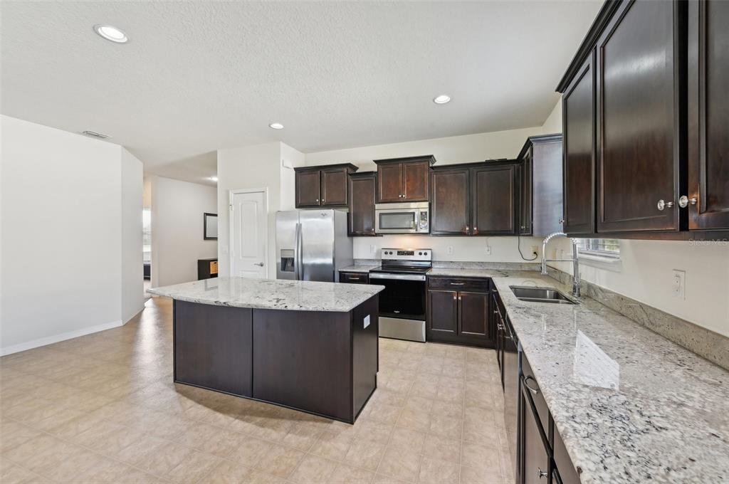Walk-In Closet(s)Ceiling Fan(s) Eating Space In Kitchen Stone Counters Thermostat Open Floorplan Window Treatments Primary Bedroom Main Floor Kitchen/Family Room ComboExterior Features: