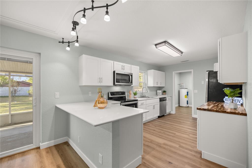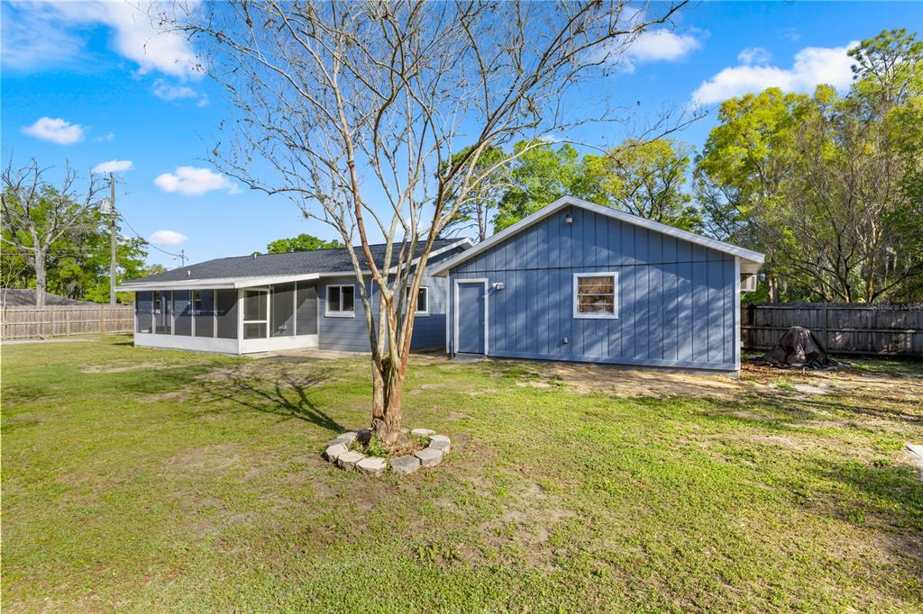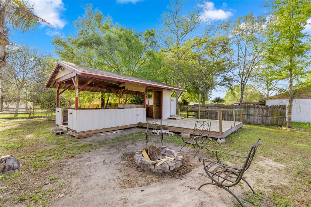 One or more photo(s) has been virtually staged. nestled in the highly sought-after northwest ocala, this beautifully updated three-bedroom, two-bathroom home sits on nearly half an acre and offers endless possibilities. whether you’re looking for a charming primary residence or a lucrative short-term rental near the renowned world equestrian center, this property is a fantastic find. the home boasts a new roof, new luxury vinyl plank flooring, new cabinets, and new corian countertops, ensuring a fresh and modern feel. the spacious primary suite features a walk-in closet and an en suite, which can double as a nursery, home gym, office, or entertainment flex space for your short-term opportunities. the kitchen shines with white shaker cabinets, soft-close drawers, corian countertops, and a dedicated space for a butcher block. enjoy florida living at its best in the backyard oasis, complete with twin palms, queen palms, crepe myrtles, and sage. the highlight of the outdoor space is the tiki hut, which features electric, a full kitchen, and a new bar top, perfect for entertaining. additionally, a 268 sq. ft. detached garage provides extra storage or workspace. with new windows and thoughtful updates throughout, this home is move-in ready and waiting for its next owner!5820 NW 60TH, OCALA, FL 34482