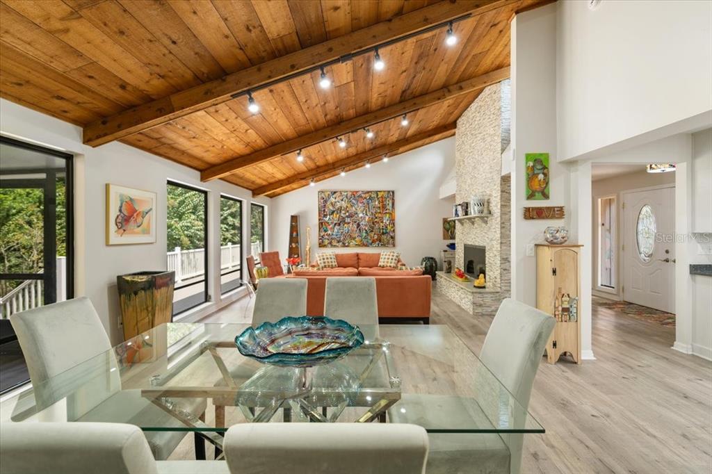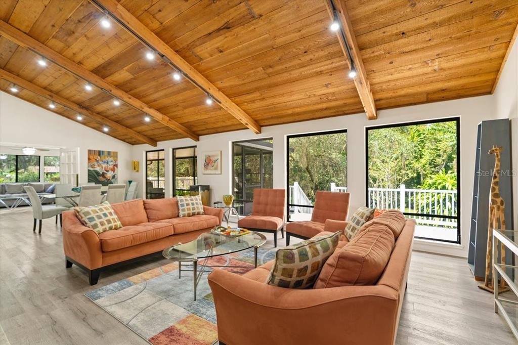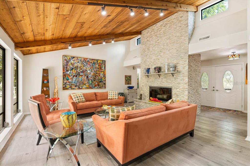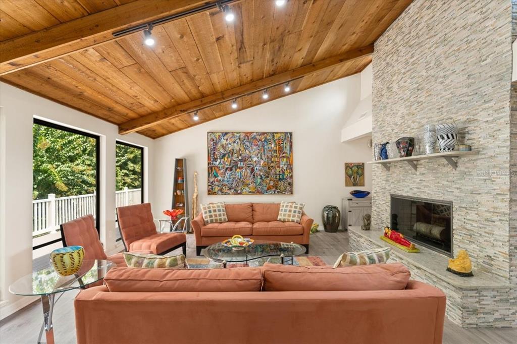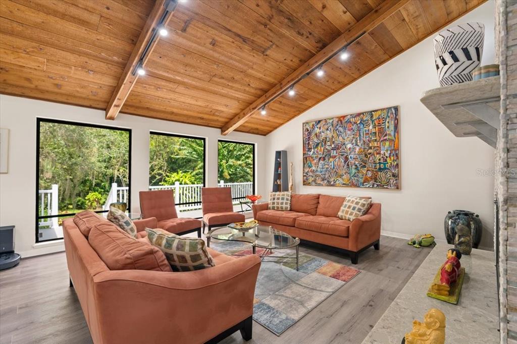 Stunning, move-in-ready, fully remodeled 2,900 sq ft 3-bed, 2.5-bath home on a rare one-acre lot with lush gardens and towering trees, blends modern elegance with nature’s charm. the open living room boasts vaulted ceilings, wood beams, and a grand stone fireplace. the completely re-done chef’s kitchen dazzles with dual quartz islands, all-wood cabinets, pull-out trays, solar tubes and a pass-through to the oversized dining room. the bright den flows to a screened room and expansive vinyl deck. the oversized primary suite features floor-to-ceiling windows, a spa-like bath and custom walk-in closet. additional highlights include: new roof, luxury vinyl floors, fresh paint inside and out, lighted built-ins, second fireplace, large pantry, updated appliances, full workshop off the garage and detached shed. in windover’s section 1 with no hoa, you’re free to make it your own, plus a transferable termite bond seals the deal for this perfect wooded retreat for upscale carefree living!5824 WINDOVER, TITUSVILLE, FL 32780