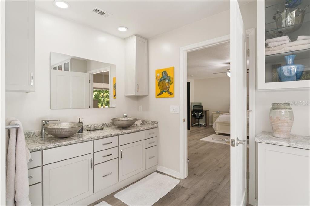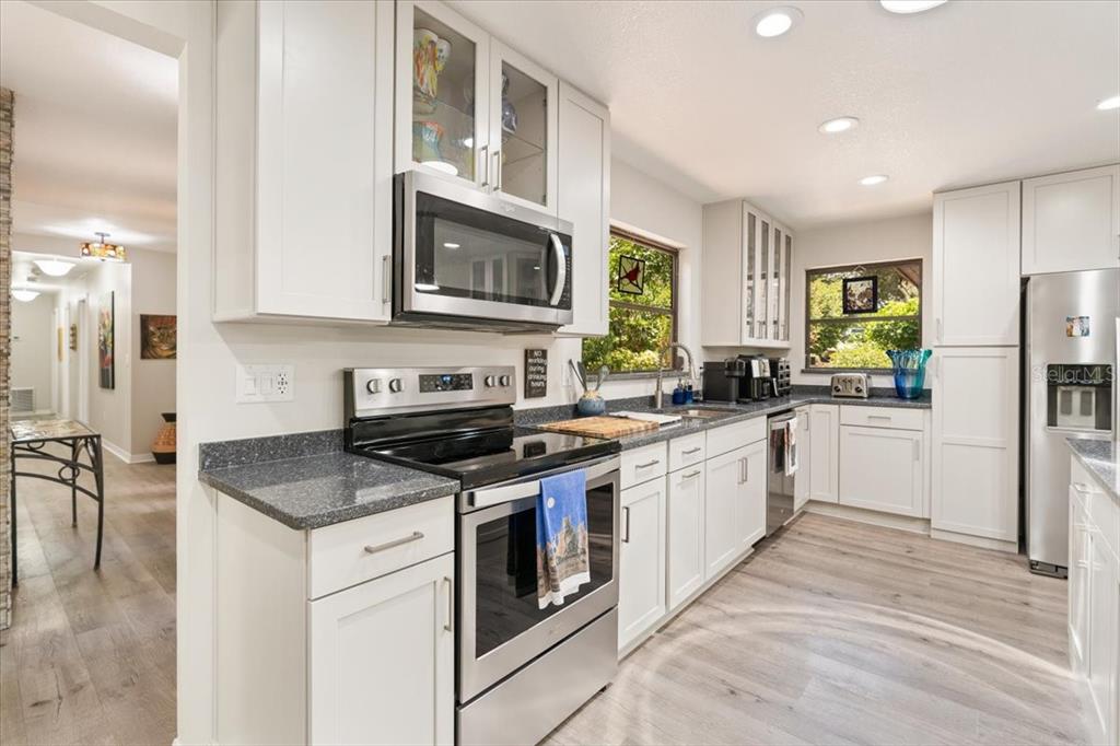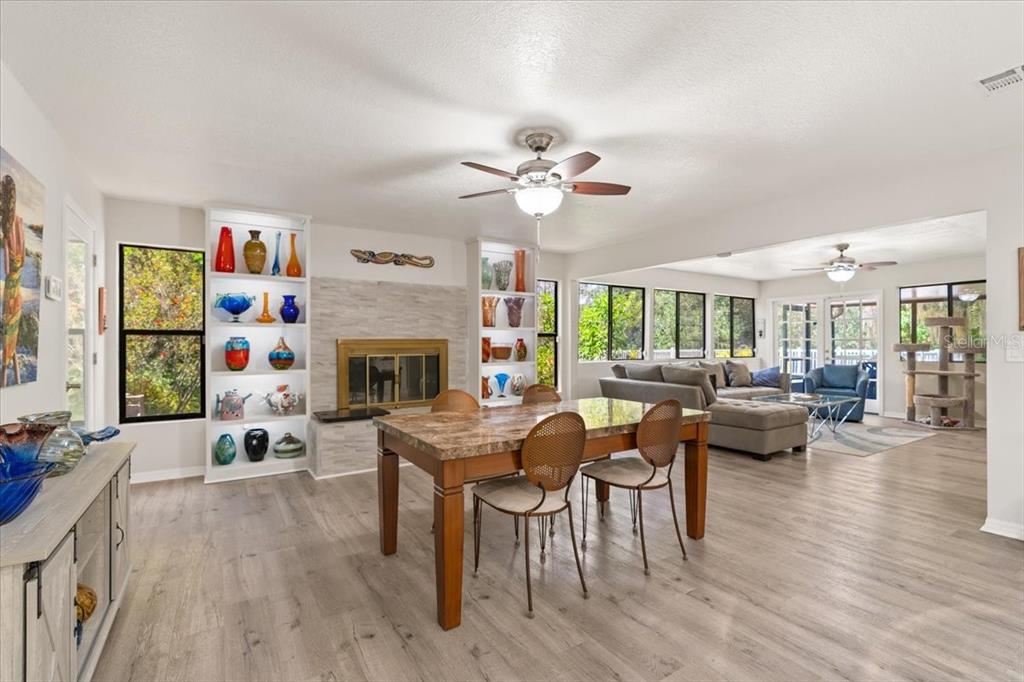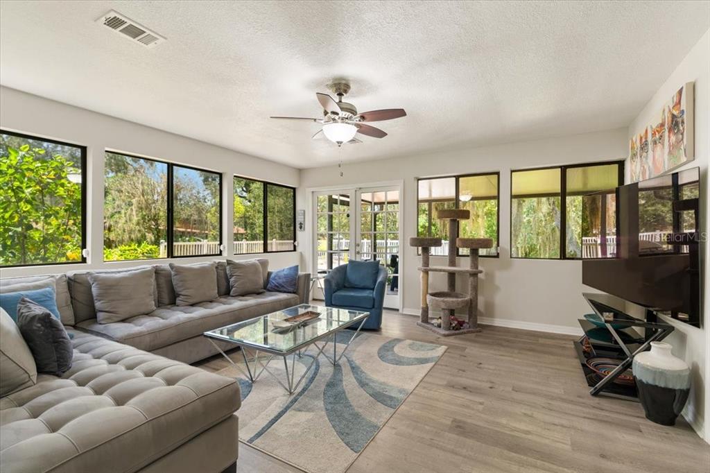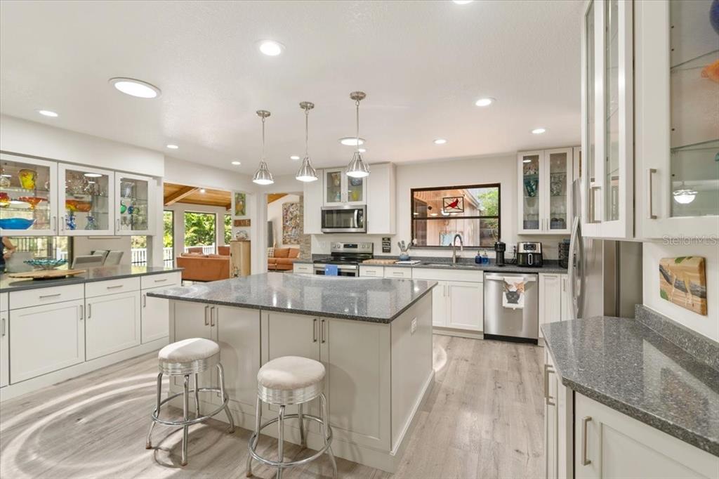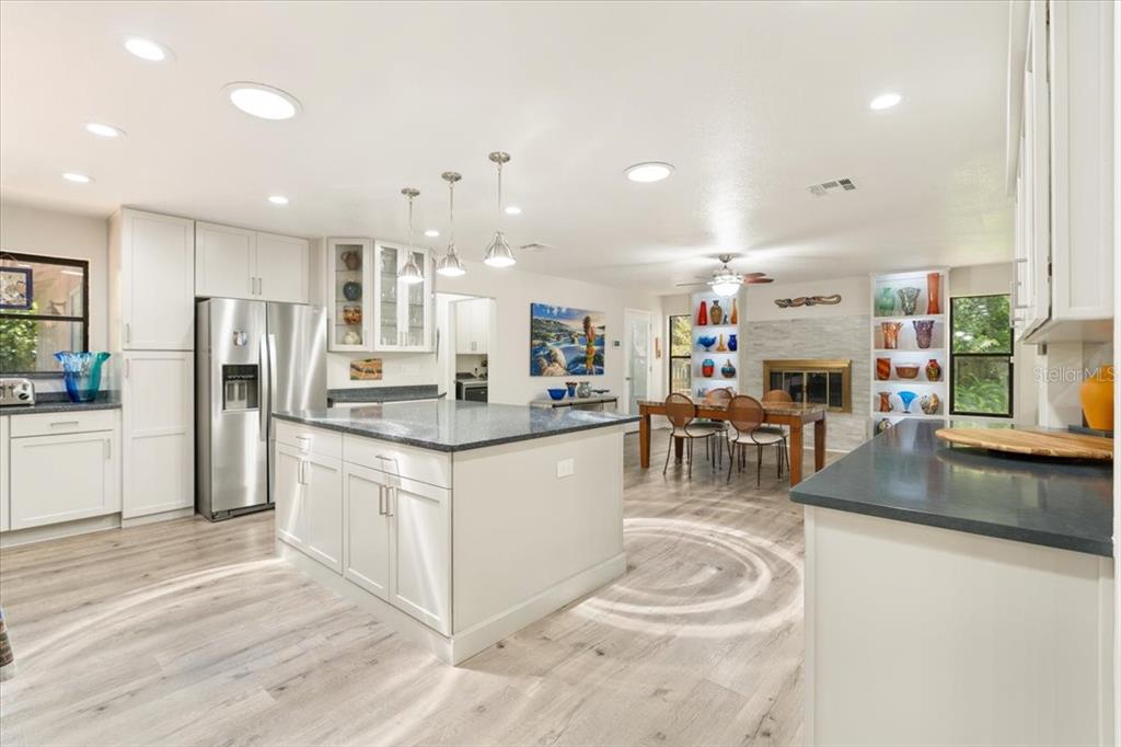 Stunning, move-in-ready, fully remodeled 2,900 sq ft 3-bed, 2.5-bath home on a rare one-acre lot with lush gardens and towering trees, blends modern elegance with nature’s charm. the open living room boasts vaulted ceilings, wood beams, and a grand stone fireplace. the completely re-done chef’s kitchen dazzles with dual quartz islands, all-wood cabinets, pull-out trays, solar tubes and a pass-through to the oversized dining room. the bright den flows to a screened room and expansive vinyl deck. the oversized primary suite features floor-to-ceiling windows, a spa-like bath and custom walk-in closet. additional highlights include: new roof, luxury vinyl floors, fresh paint inside and out, lighted built-ins, second fireplace, large pantry, updated appliances, full workshop off the garage and detached shed. in windover’s section 1 with no hoa, you’re free to make it your own, plus a transferable termite bond seals the deal for this perfect wooded retreat for upscale carefree living!5824 WINDOVER, TITUSVILLE, FL 32780