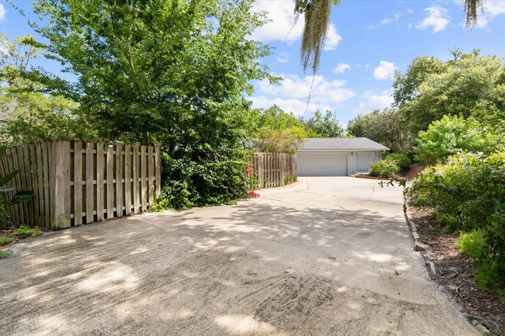 Circular Driveway Garage Faces Side Workshop in Garage