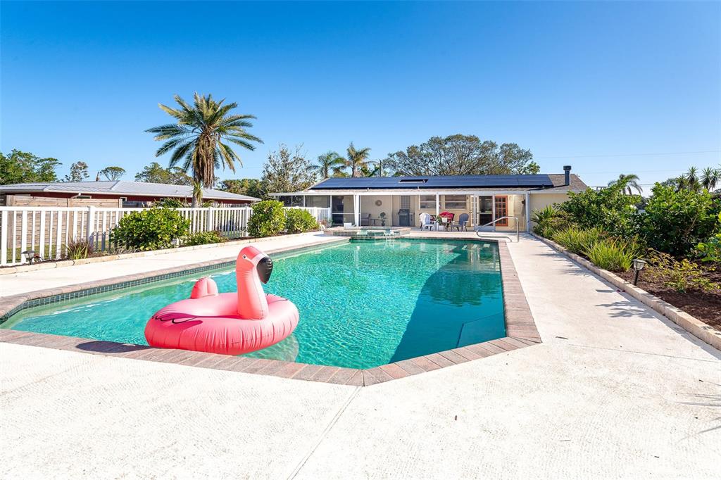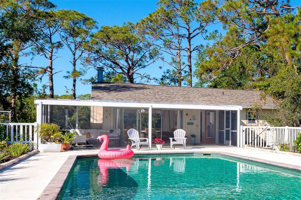 Put your watermark on this charming, fresh and lovingly updated gem. two homes, one property and multifaceted options as either a profitable investment opportunity or for a family with multi-generational needs. this property is in an elevation of its own with truly the best location - just a cast away from beautiful gulf beaches, world-class fishing and in an "x" flood zone which flood insurance may not be required. whatever the scenario, this retreat provides the power of choice. hatch a space that best fits your life. with options, you can’t go wrong: · be generous without sharing square feet – customize your private guest house for visitors, extended flex space for the kids or a spacious home office. · plan a sanctuary in advance for aging parents or a young adult gaining independence. · enhance your nest egg with passive income to either supplement expenses or save for the future. entertain at home surrounded by private, lush landscaping and enjoy a large heated pool and spa that offers a vacation feel with minimal maintenance. recharge and put your toes in the sand at beautiful manasota beach – door to wave – just four minutes away. elevated living is everything. literally feet above the others - this oversized property stayed high and dry during recent storm systems. no hoas, no ccd. future owners can rest easy as the king or queen of their hill – tranquilly overlooking a lake and bird sanctuary on a quiet road and nearby beautiful gulf beaches, world-class fishing and amenities: grocery stores, pharmacies, restaurants, shopping and entertainment. the main house boasts 3 bedrooms, 2 bathrooms, and a range of high-end updates, including luxury vinyl plank flooring throughout, updated electrical, new faucets, a new refrigerator, microwave, oven, and a brand-new roof (2023). freshly painted interiors, new lighting, screened lanais, updated toilets, and modern plumbing fixtures make this home truly move-in ready. a wood-burning fireplace and central heat & air ensure year-round comfort. the guest cottage is a charming 1-bedroom, 1-bathroom retreat, complete with a full kitchen featuring all-new appliances (except the stove), fresh paint, luxury vinyl plank flooring, a new hot water heater, and two re-screened lanais. like the main home, it offers a wood-burning fireplace and central heat & air. additional highlights include new side fencing for added privacy, storage shed for extra convenience, leased solar panels (transferrable) for lower energy costs, well maintained septic system (scoped & drained), and updated a/c motors with regular servicing. prime location—no hoa, no cdd! enjoy a tranquil feel just minutes from state road 776, us 41, shopping, dining, world-class fishing, and stunning gulf beaches. rental history and income details are available upon request. whether you're looking for a high-performing investment or a versatile living space, this property is a rare find!5868 DENISON, VENICE, FL 34293