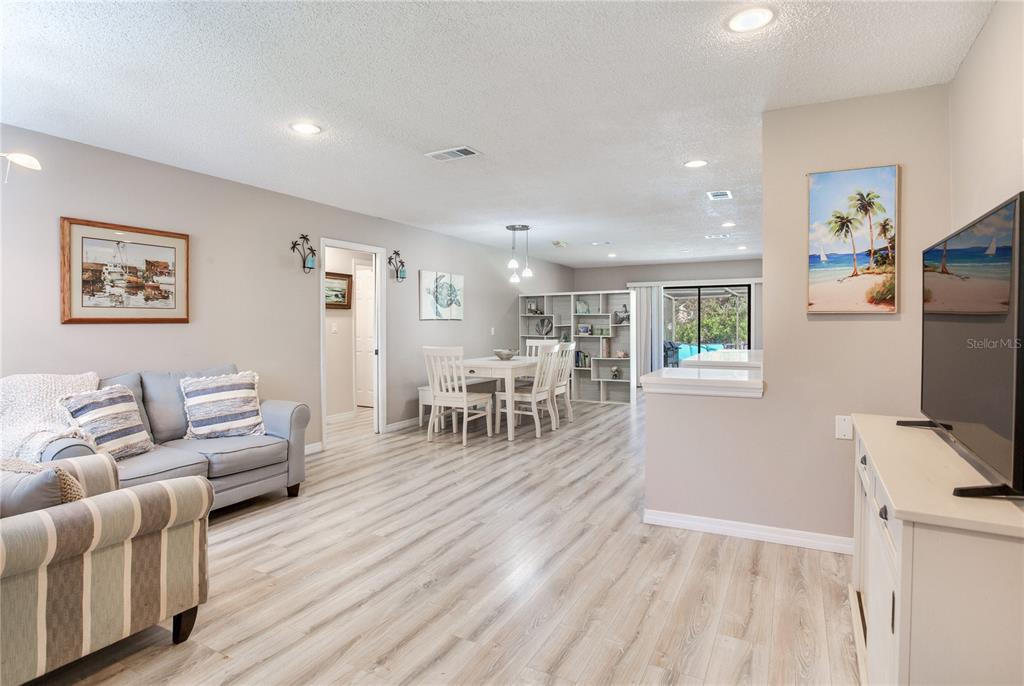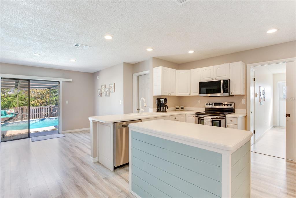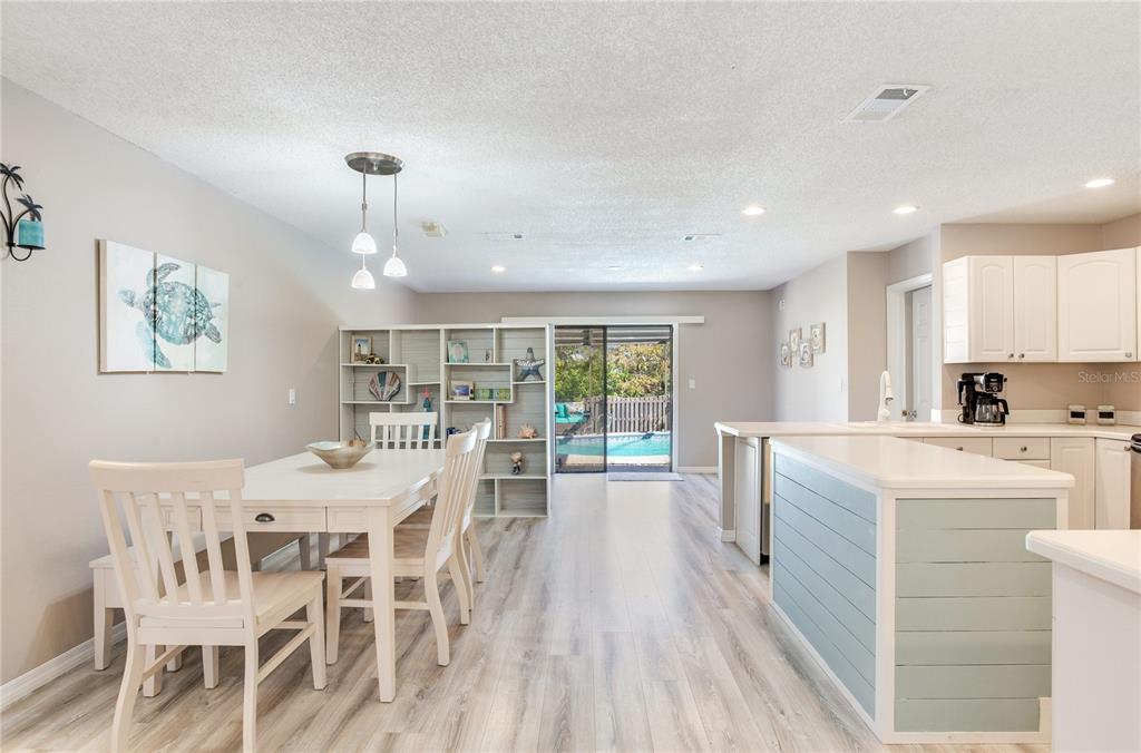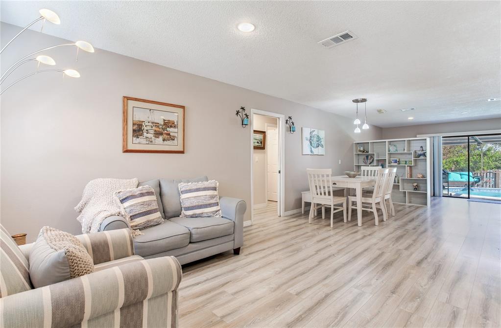 3 miles from the beach beautiful pool home!! welcome to this move-in-ready, 3-bedroom, 2-bathroom home with nearly 1,600 sqft of living space, designed for comfort and style. featuring an open and light-filled split floor plan, this home is perfect for modern living and entertaining. the kitchen is a chef’s dream, boasting recessed lighting, white cabinetry, stainless steel appliances, an island, and plenty of storage space. the spacious primary suite offers a serene retreat with a large organized walk-in closet, an additional closet, and direct sliding door access to the pool. the secondary bedrooms are generously sized and share a beautifully remodeled guest bathroom. recent updates include waterproof luxury laminate flooring throughout the home, ensuring durability and style. the indoor laundry room adds convenience with ample storage, a utility sink, a water heater, and access to the backyard. step outside to your private oversized outdoor oasis, complete with multiple seating areas perfect for relaxing or entertaining. the sparkling pool is the centerpiece of this stunning backyard, surrounded by lush landscaping. additional highlights include: oversized paver driveway leading to a two-car garage secure space to park a boat or rv behind the fence. located just 3 miles from the beach, this home offers the perfect blend of coastal living and modern amenities. don’t miss this incredible opportunity—schedule your private tour today!5875 BAY PINES LKS, ST PETERSBURG, FL 33708