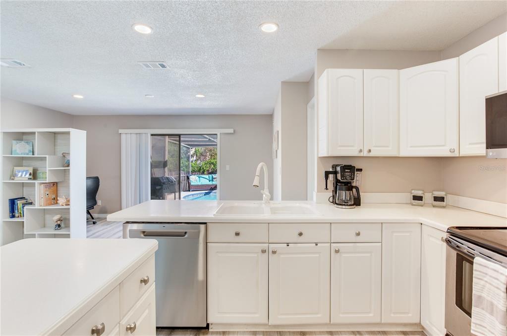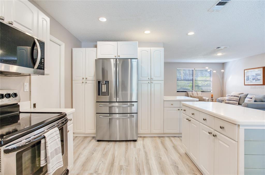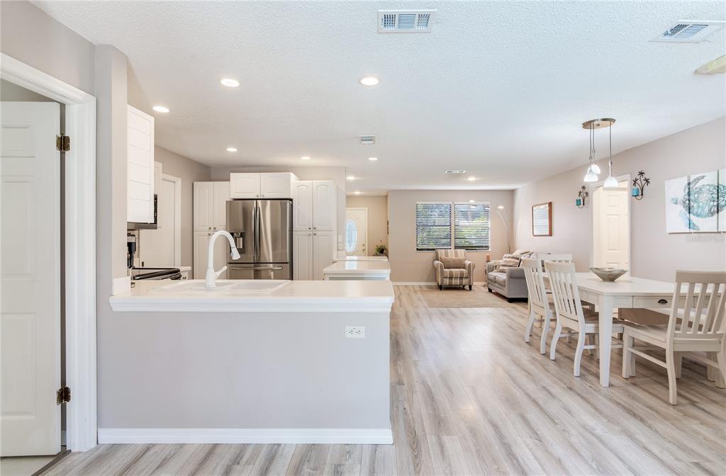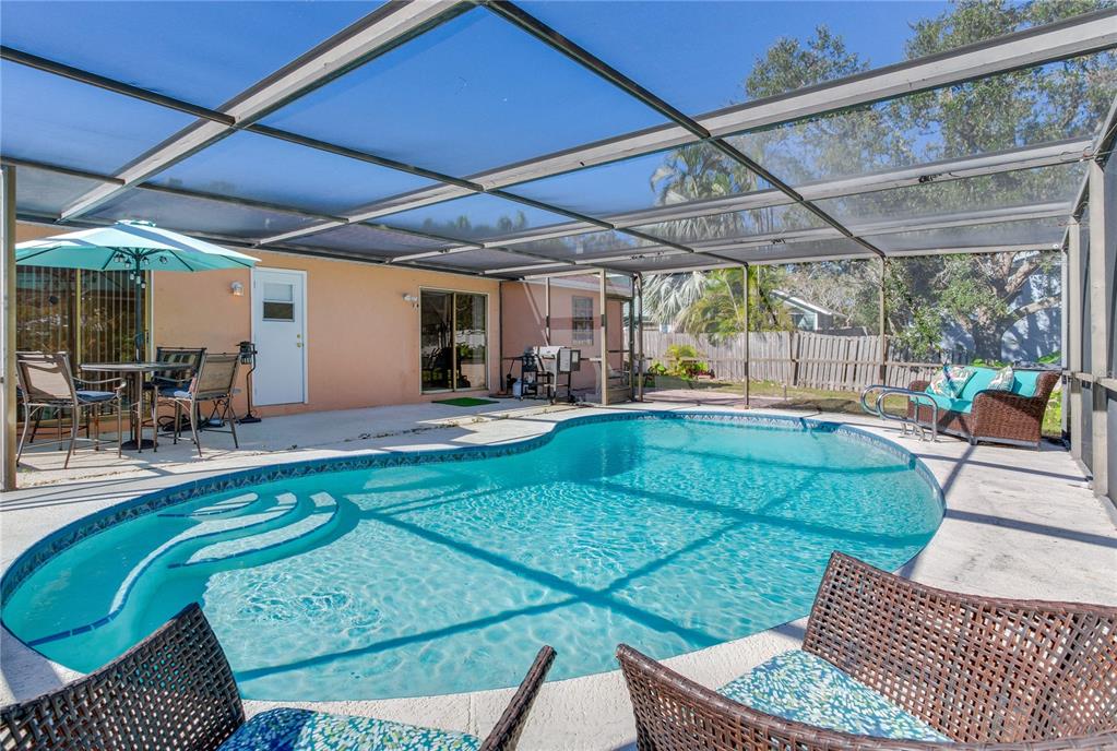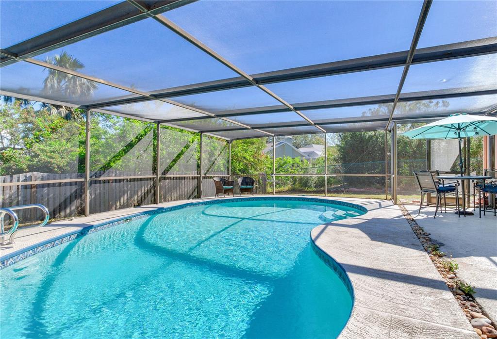 3 miles from the beach beautiful pool home!! welcome to this move-in-ready, 3-bedroom, 2-bathroom home with nearly 1,600 sqft of living space, designed for comfort and style. featuring an open and light-filled split floor plan, this home is perfect for modern living and entertaining. the kitchen is a chef’s dream, boasting recessed lighting, white cabinetry, stainless steel appliances, an island, and plenty of storage space. the spacious primary suite offers a serene retreat with a large organized walk-in closet, an additional closet, and direct sliding door access to the pool. the secondary bedrooms are generously sized and share a beautifully remodeled guest bathroom. recent updates include waterproof luxury laminate flooring throughout the home, ensuring durability and style. the indoor laundry room adds convenience with ample storage, a utility sink, a water heater, and access to the backyard. step outside to your private oversized outdoor oasis, complete with multiple seating areas perfect for relaxing or entertaining. the sparkling pool is the centerpiece of this stunning backyard, surrounded by lush landscaping. additional highlights include: oversized paver driveway leading to a two-car garage secure space to park a boat or rv behind the fence. located just 3 miles from the beach, this home offers the perfect blend of coastal living and modern amenities. don’t miss this incredible opportunity—schedule your private tour today!5875 BAY PINES LKS, ST PETERSBURG, FL 33708
