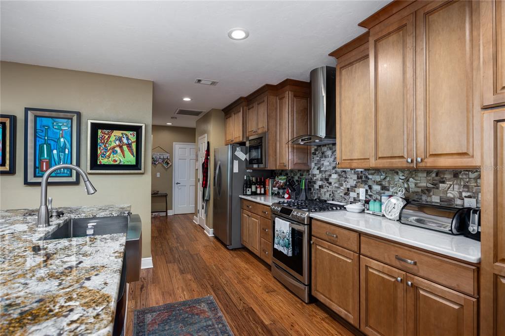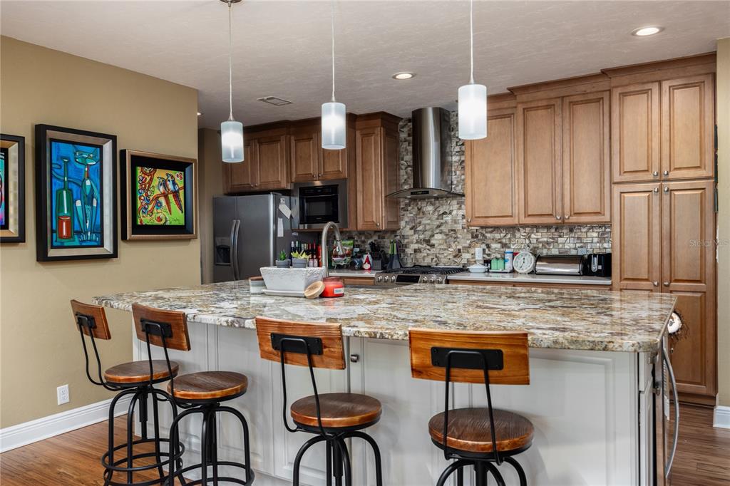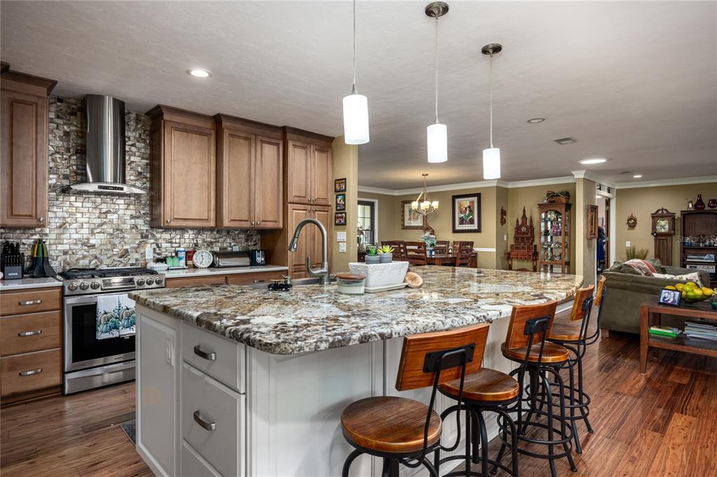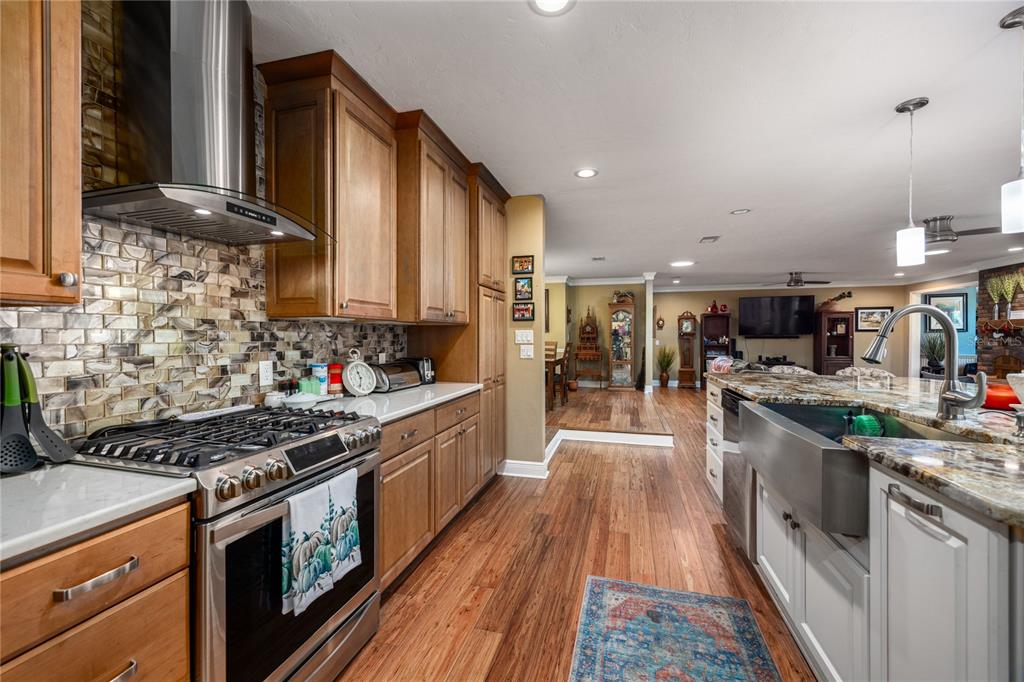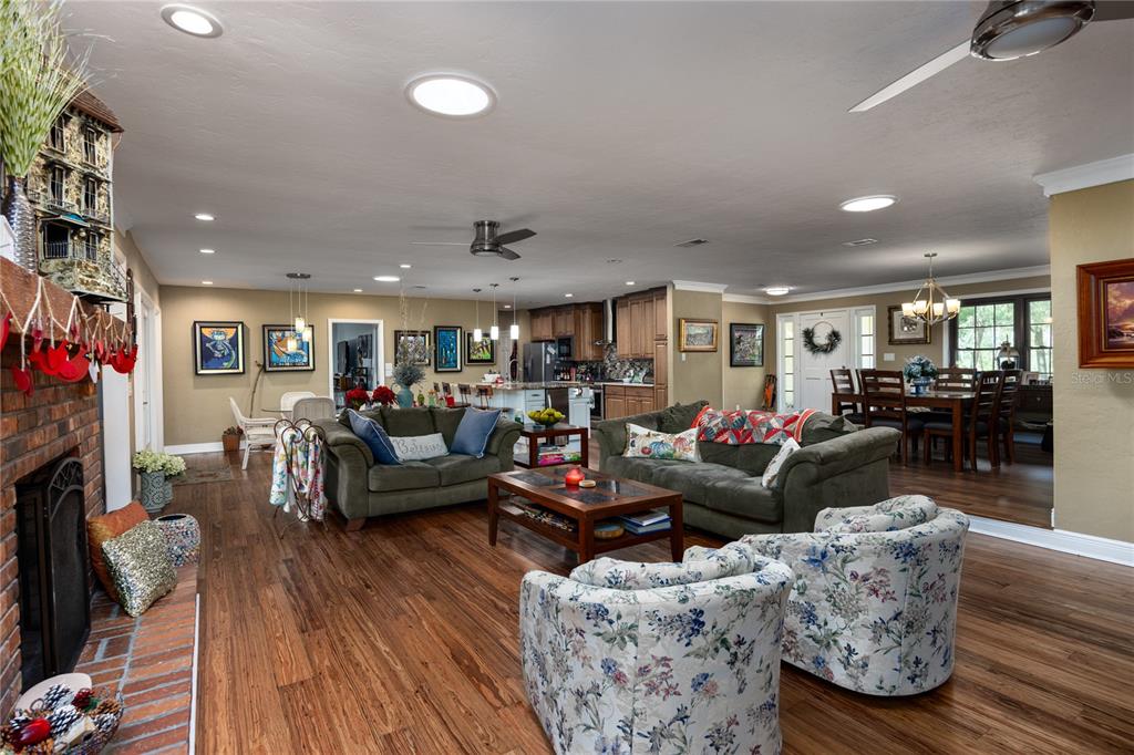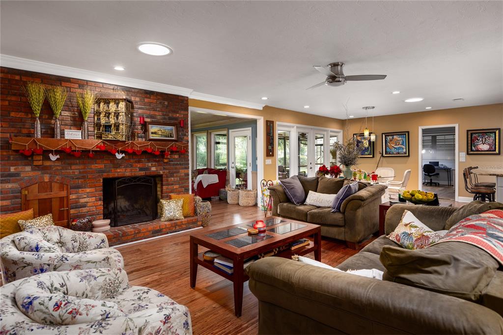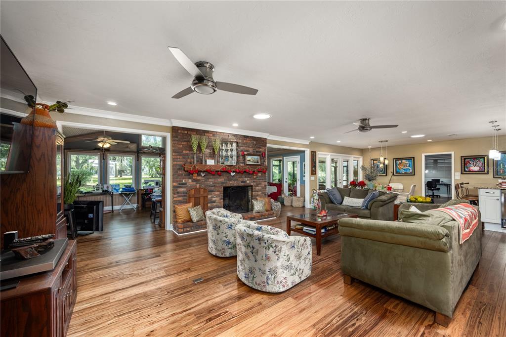 Nestled within the gainesville country club, this extensively renovated 3 bedroom 2.5 bath with office that could be used as 4th bedroom home stands offers a meticulous design and modern luxury. positioned to command stunning views of the green space behind the home, the owners have poured their pride into crafting an open and flowing floor plan that seamlessly integrates beauty and convenience. the exterior of this residence is a showcase of thoughtful additions, including a screened-in lanai with an outdoor kitchen, providing the perfect setting for outdoor gatherings. for the avid adventurer, a 12’ x 36’ rv/boat/golf cart storage garage offers ample space to house your recreational vehicles. a newer roof and upgraded attic insulation ensure both durability and energy efficiency. step inside to discover a haven of comfort and style. with four spacious bedrooms and three full bathrooms, this home offers an abundance of space for both relaxation and entertainment. the family room, adorned with a wood-burning fireplace, exudes warmth and charm, while an exercise nook caters to an active lifestyle. the heart of the home lies in its remodeled kitchen, featuring a huge granite island/eat-up bar with a farm sink, quartz countertops, and stainless steel appliances. the oversized side-entry garage provides convenient parking for two vehicles. an inviting florida/bonus room beckons with picture windows that frame a serene view of the treed backyard. natural gas fuels both a tank-less water heater and a range, adding a touch of efficiency to daily living. the owner's suite is a sanctuary of relaxation, boasting a gorgeously remodeled bathroom with a walk-in shower, granite double vanity, and a window seat. fossilized eucalyptus wood floors grace the main level, complemented by modern lighting and solar tubes that bathe the interiors in natural light. outside, the large lot is adorned with zoysia sod and river rock landscaping, creating an inviting curb appeal. call today to view this home.5905 SW 36TH, GAINESVILLE, FL 32608