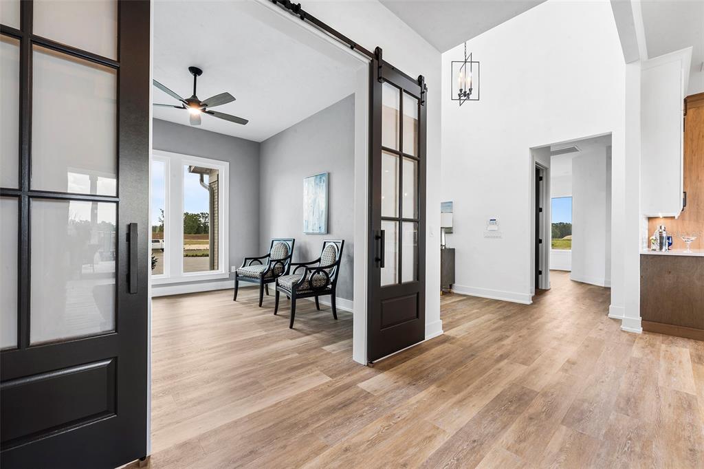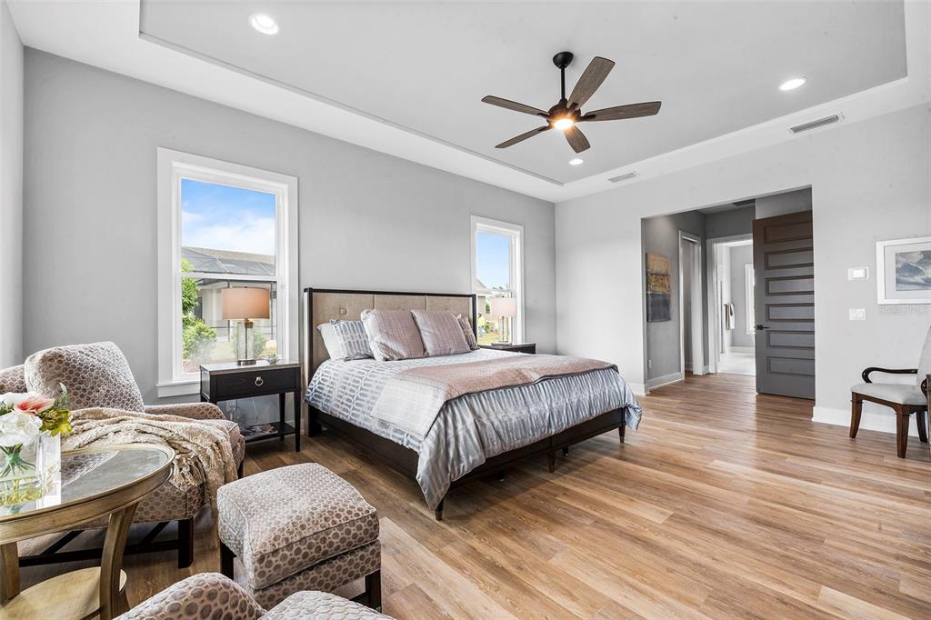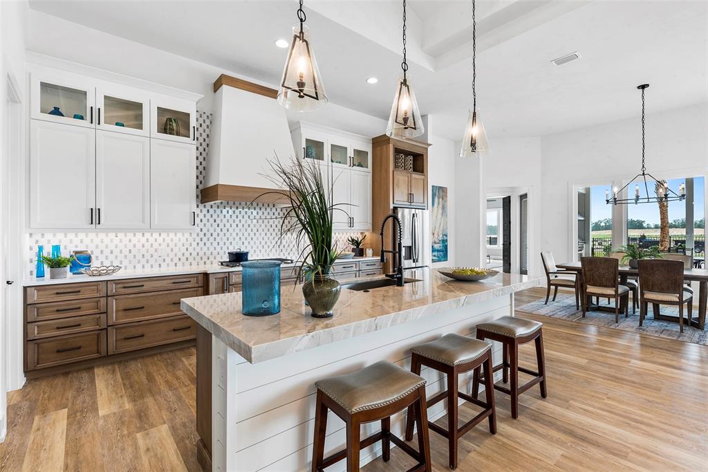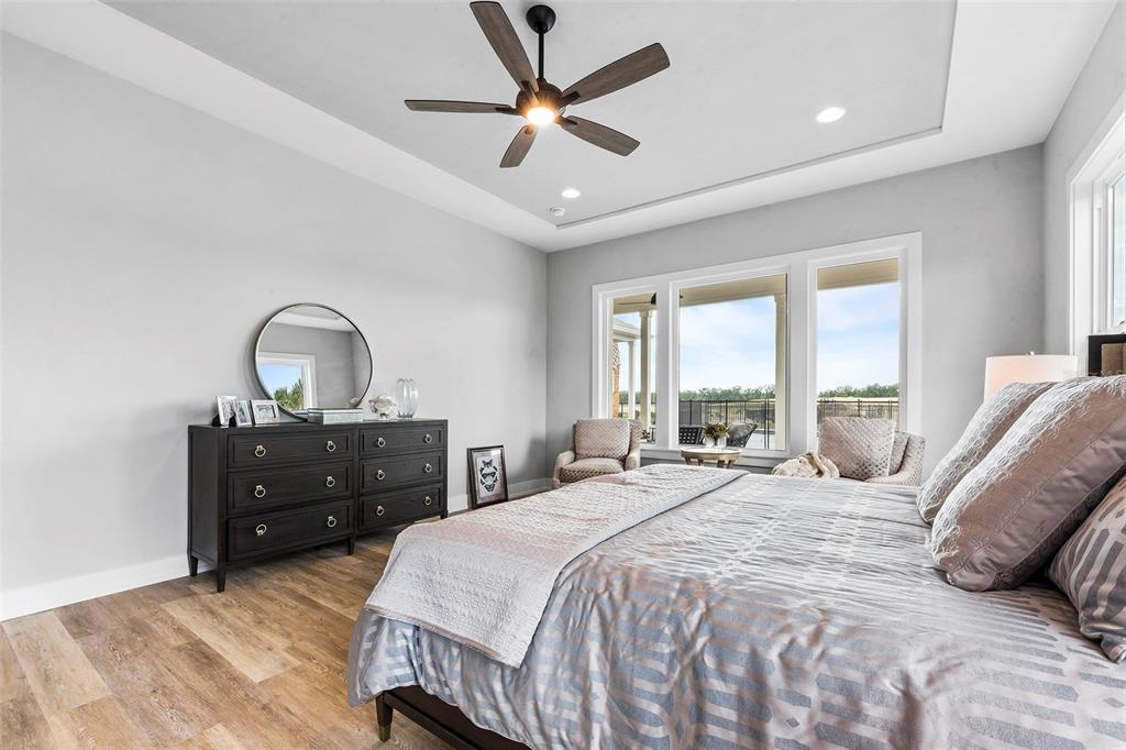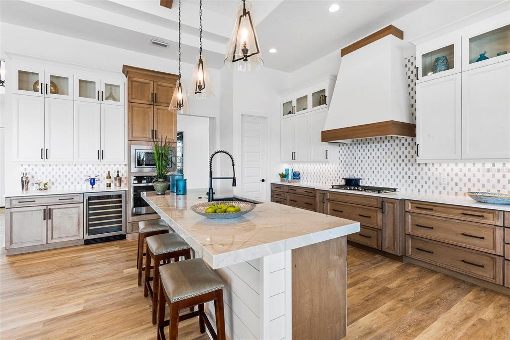 Split BedroomWet BarBuilt-in Features Walk-In Closet(s)Ceiling Fan(s) High Ceilings Stone Counters Thermostat Open Floorplan Solid Wood CabinetsCrown Molding Primary Bedroom Main Floor Kitchen/Family Room Combo Coffered Ceiling(s)Exterior Features: