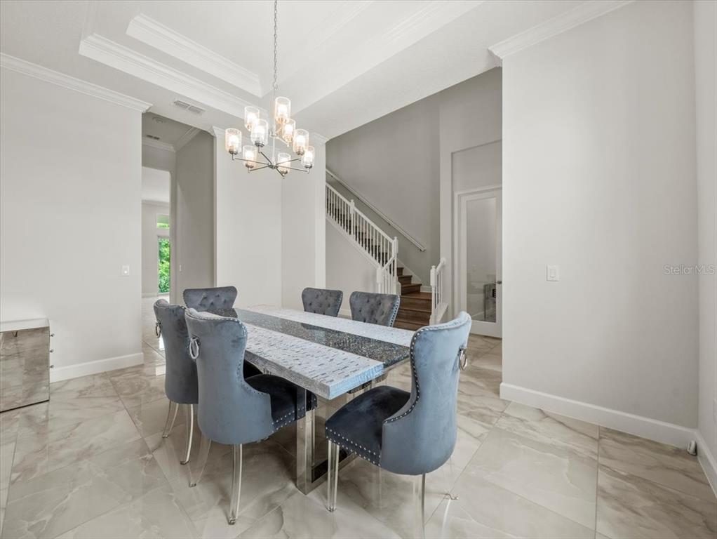 Walk-In Closet(s) High Ceilings Living Room/Dining Room Combo ThermostatCrown Molding Primary Bedroom Main Floor PrimaryBedroom Upstairs Tray Ceiling(s)Exterior Features: