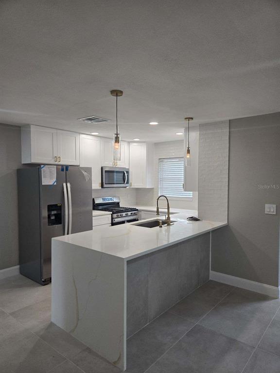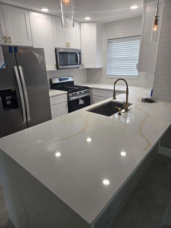 Newly renovated 1st floor condo that has never flooded and is fully updated. discover the perfect of comfort, security and modern luxury in this 1st floor condo situated right on the pond. features a new kitchen with calacatta gold stone counter tops, both bathrooms and new baseboards along with new flooring with 24x48 tile throughout. there is a full-size washer and dryer inside. 55+ there was no water intrusion from the last 2 storms.5980 80TH N #106, ST PETERSBURG, FL 33709