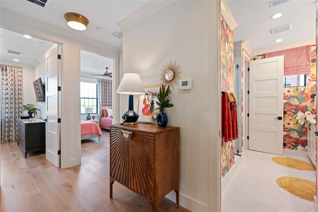 Split BedroomElevatorWet BarBuilt-in Features Walk-In Closet(s)Ceiling Fan(s) Eating Space In Kitchen High Ceilings Living Room/Dining Room Combo Stone Counters Open Floorplan Window Treatments Solid Surface Counters Solid Wood CabinetsCrown Molding Kitchen/Family Room Combo PrimaryBedroom Upstairs Tray Ceiling(s) Smart Home In Wall Pest SystemAccessibility Features Dry BarExterior Features: