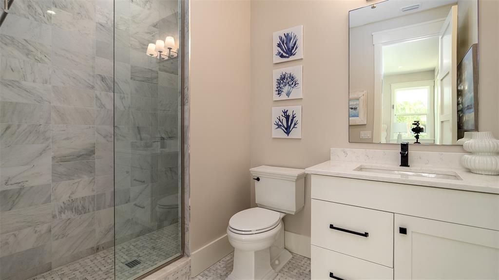 Stunning turnkey new construction on anna maria island, located on a serene and rare double channel lot in the key royale neighborhood. this spacious residence features 5 bedrooms, 2 on the main level and 3 upstairs, all with en suite and walk-in closets offering ample space for family and guests. the main floor’s primary suite includes a large bathroom with steam shower and beautiful marble tile flooring. enjoy 2 living spaces, one on the main level and another with a large balcony overlooking the canal on the second floor. the elevator provides easy access to both levels. convenient laundry with 4 washers and 4 dryers, 2 upstairs and 2 on the main level. upgraded finishes throughout with wide plank engineered walnut flooring, marble tile in the bathrooms, quartz countertops, 8' high extra thick upgraded doors, and upgraded trim package. the modern kitchen boasts brand new high-end sub-zero and wolf paneled appliances and upgraded cabinetry. step outside to enjoy covered seating and dining areas, a large saltwater pool and spa with breathtaking canal views, and 2 new composite wood docks with new seawall on this home's rare corner channel access, ideal for water enthusiasts. the property also features garage spaces to accommodate 4 vehicles, and new mature landscaping. the home's interiors are thoughtfully designed with hand-curated, beach inspired furnishings which are included in the sale.603 EMERALD, HOLMES BEACH, FL 34217