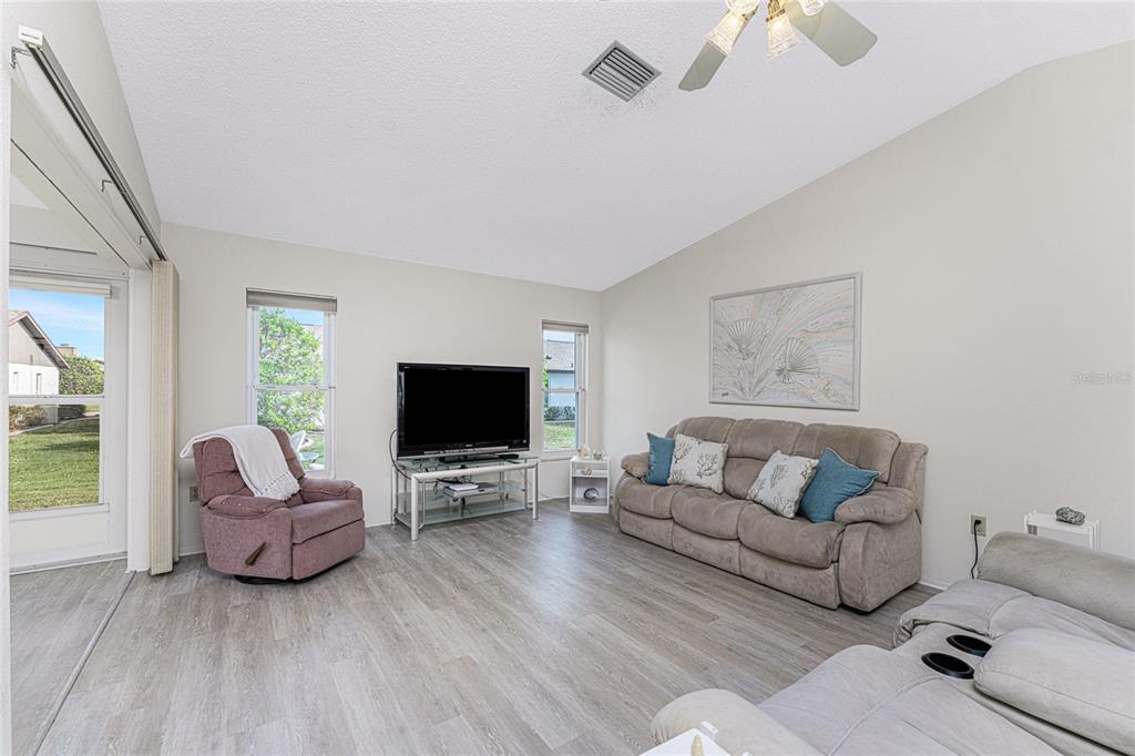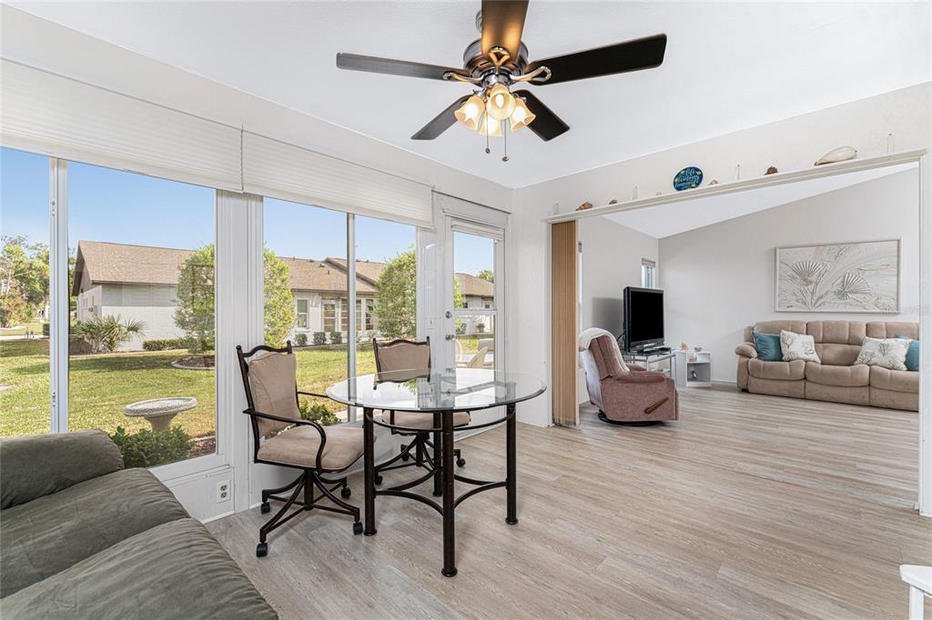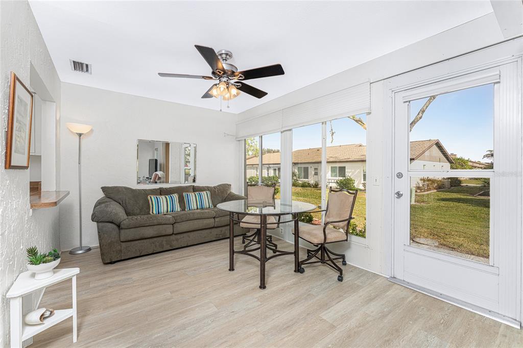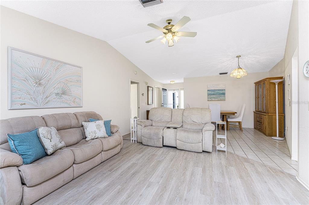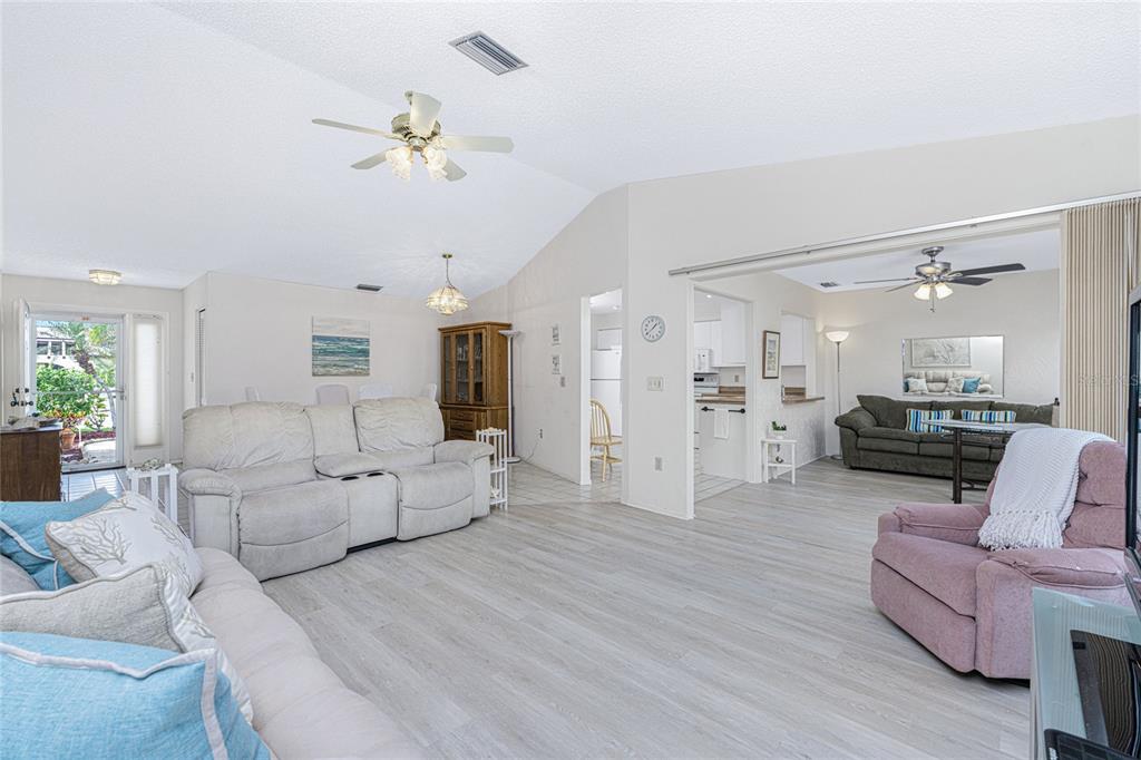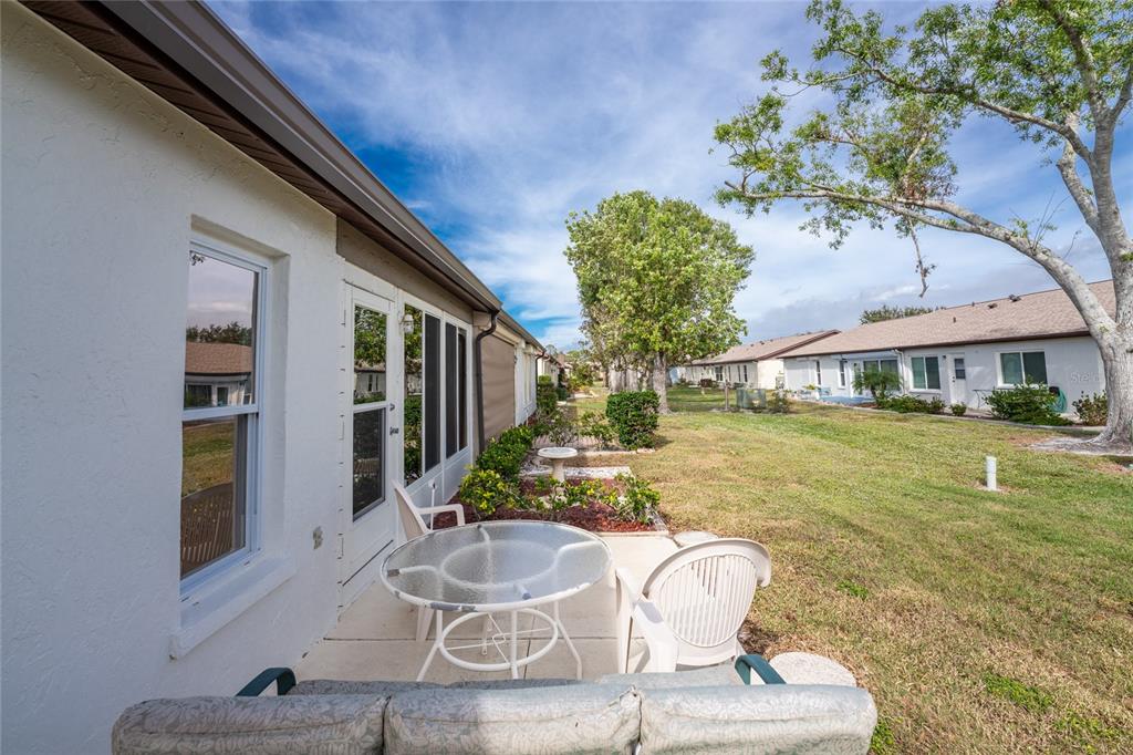 Welcome to foxwood, where vibrant community amenities and events offer the perfect florida lifestyle! this 2 bedroom, 2 bath attached villa provides peace of mind with a 2023 roof, 2023 air conditioner, and easy-care tile and vinyl flooring. step inside to a welcoming foyer that opens to a spacious dining area and great room with vaulted ceilings, creating a bright and airy atmosphere. the fully enclosed lanai, seamlessly integrated with the interior height, adds versatile year-round space for relaxing or entertaining. the kitchen features white cabinetry, a pantry, pass-thru bar, dining nook, and convenient access to the garage - no more unloading groceries in the rain! the well-sized ensuite primary bedroom includes a walk-in closet, a tiled walk-in shower, and an oversized single vanity for added convenience. the guest bedroom is perfect for visitors and there is a guest bathroom with a tub/shower combo. foxwood offers an active, maintenance-free lifestyle with a heated community pool, spa, tennis courts, shuffleboard, pickleball, and a lively clubhouse hosting plenty of social events. the hoa handles the grounds, roof, exterior pest control, building maintenance, water, cable, and internet, so you can focus on enjoying life. located in the heart of englewood, you're less than 5 miles from stunning gulf beaches and minutes from tiki bars, local restaurants, golfing, kayak launches, and live music. whether you prefer swimming, fishing, hiking, shopping, or simply relaxing, this is the ideal place to escape the snow and embrace warm sunny living. schedule your showing today and start living the good life in foxwood!Villa 2 bedrooms - FOXWOOD for Sale
