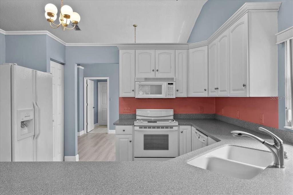 Move-in ready! this beautifully maintained extended sandpiper model offers an open triple split floor plan designed for easy living and entertaining. from the moment you arrive you will be impressed with the pride of ownership. the driveway with pavers adds the touch of luxury to set the tone. inside there are 3 bedrooms and 2 full bathrooms, along with a 2 car garage. the custom kitchen is a chef’s dream, featuring corian countertops, upgraded appliances, and pull-out cabinet drawers for convenience. gorgeous new waterproof laminate flooring flows throughout the home (installed in 2024), complemented by abundant natural light. the spacious living room and formal dining area provide the perfect setting for gatherings, while the second and third bedrooms offers flexibility for your lifestyle. the eat-in kitchen with a charming bay window overlooks the golf course—an ideal spot for your morning coffee. the primary suite is a true retreat, boasting a massive walk-in closet, double shower heads, and a relaxing whirlpool tub. enjoy the outdoors in your oversized screened porch, perfect for unwinding or entertaining. additional highlights include an indoor laundry room with storage, surround sound system, and so much more! the shelving and built-in work in the garage does convey. sandpiper golf & country club offers exceptional amenities, including golf, a pro shop, recreational facilities, tennis courts, shuffleboard, a community pool, and exterior grounds maintenance. conveniently located close to restaurants, medical offices, retail shopping, the interstate, airports, and disney parks. don’t miss this incredible opportunity—schedule your private showing today!6086 SWALLOW, LAKELAND, FL 33809