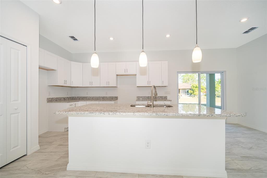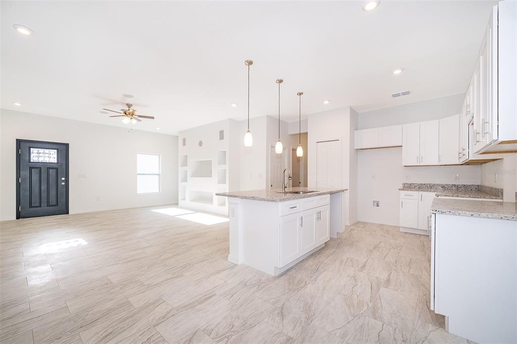 Must see newly-built 4 bedroom, 2 & 1/2 bathroom, 2 car garage ready to move in. the kitchen stands out with its granite counters and modern cabinets, perfect for the avid cook. the built-in entertainment center comes equipped with surround sound speakers installed, upgraded lighting, creating a perfect focal point in the home. the master suite boasts dual vanities with a granite countertop, a modern rain shower, and lots of space. perfect for unwinding after a long day! all common areas are tiled for easy cleaning, while bedrooms are carpeted to keep cozy. there's also a large covered lanai that would be perfect for summer gatherings with friends or family. as a bonus feature, this house also includes all new samsung appliances. within 3 miles of shopping, hospitals, and schools. call today to schedule an appointment! hurry- this one won't last!610 MESSINA, KISSIMMEE, FL 34758
