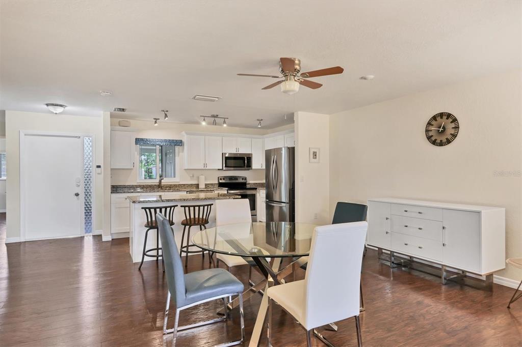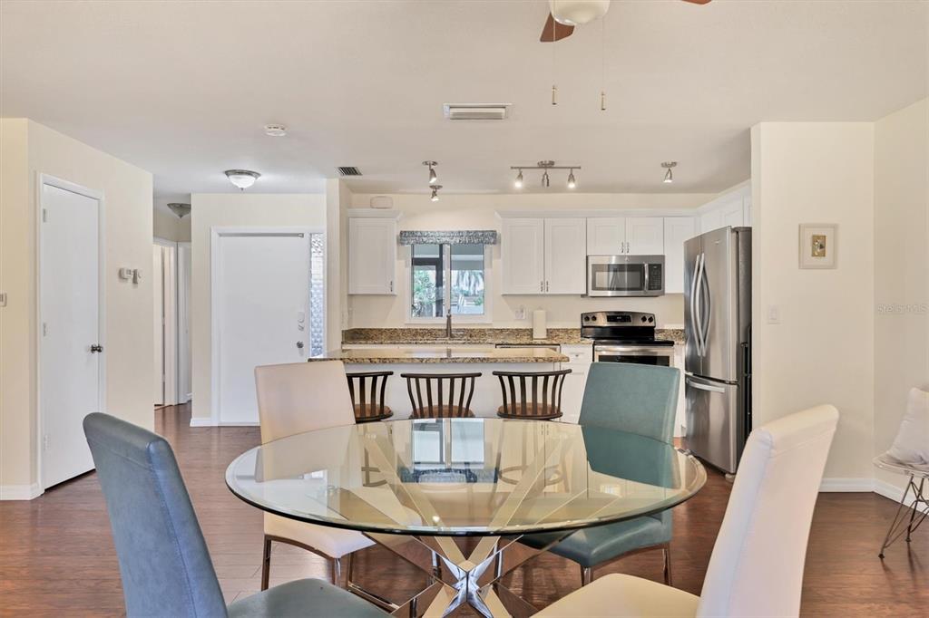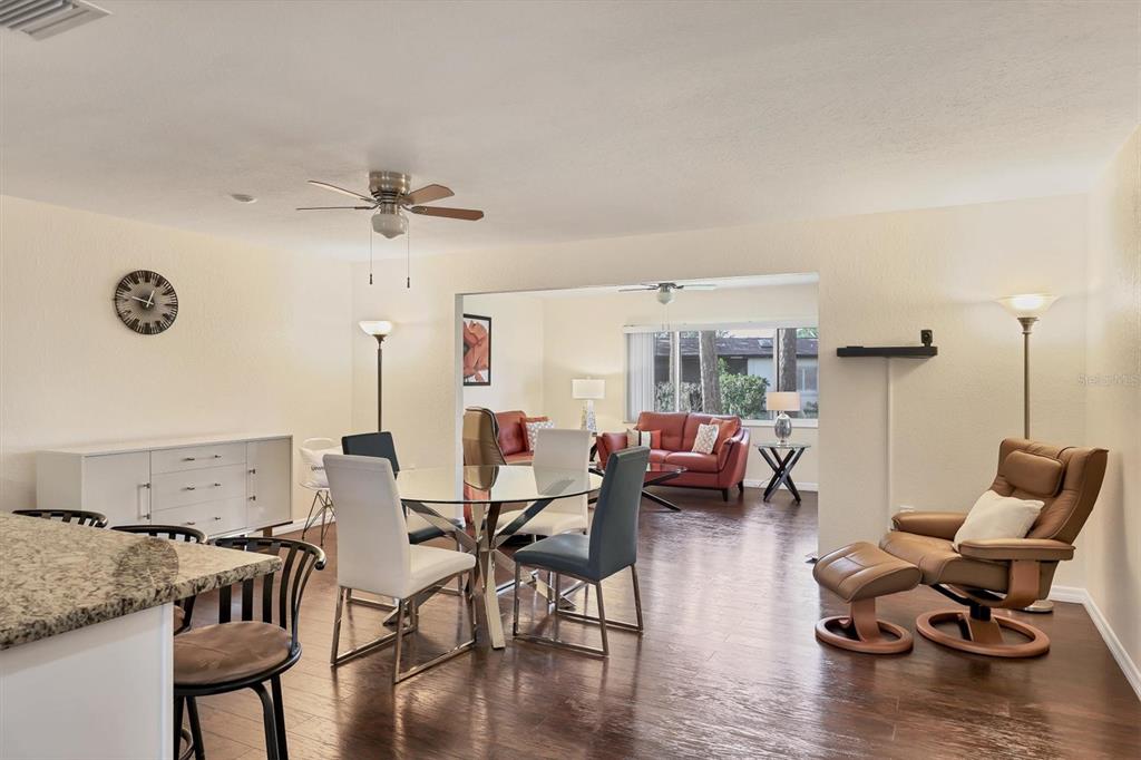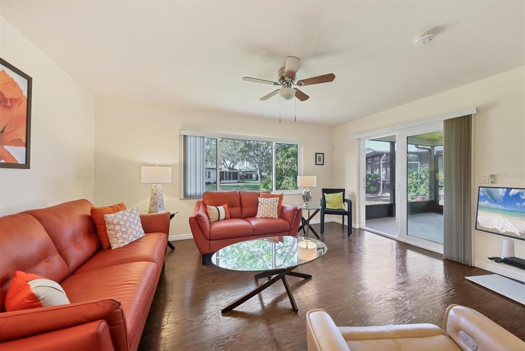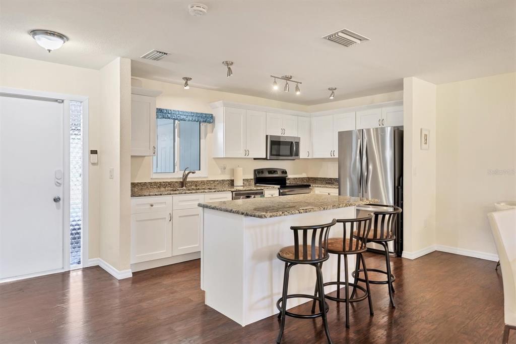 Fully remodeled 2 bed / 2 bath villa in the desirable 55+ friendly enclave of village in the pines featuring a community pool and clubhouse w/ active year-round social calendar just steps away from your front door! for those seeking a low-maintenance simplified lifestyle, this might just be your ticket. * hurricane impact windows and sliders * provide extra peace of mind for snowbirds and make this home extra quiet inside. upon entering, you will find a super spacious, light and bright space. some homes just have a way of making you feel happy. this is one of those homes. the open concept design combines the kitchen, dining, and living areas, making this home perfect for both entertaining and everyday living. the chef's kitchen, which is the heart of this home, features solid wood shaker cabinetry, modern whirlpool stainless steel appliances, granite counters, and a showstopping center island where friends and family will love to gather. high-quality laminate flooring throughout provides warmth to the space and is a breeze to clean and maintain. the great room features 3 large windows that frame a park-like serene garden view of mature trees that is great for birdwatching. sliding glass doors lead from the great room to the 15' x 12' covered and screened lanai that is perfect for enjoying a quiet morning cup of coffee or playing cards with friends. back inside the home, the primary bedroom features a large walk-in closet that will surprise you. the primary bath boasts an oversized walk-in shower with modern subway tiles from floor to ceiling with an ample vanity featuring granite countertops. bedroom 2 is at the front of the villa, which provides maximum privacy and has additional closet space, making it the perfect guest bedroom or den/office space as it currently serves. the inviting screen porch entry enhances security and provides access to the attached laundry/utility room featuring a handy custom built-in work bench/desk area and a halo water filtration system for enhanced water quality. close to siesta key beaches, downtown sarasota, grocery shopping, restaurants, and sarasota memorial hospital. this home is an absolute must see!Villa 2 bedrooms - VILLAGE IN THE PINES 1 for Sale
