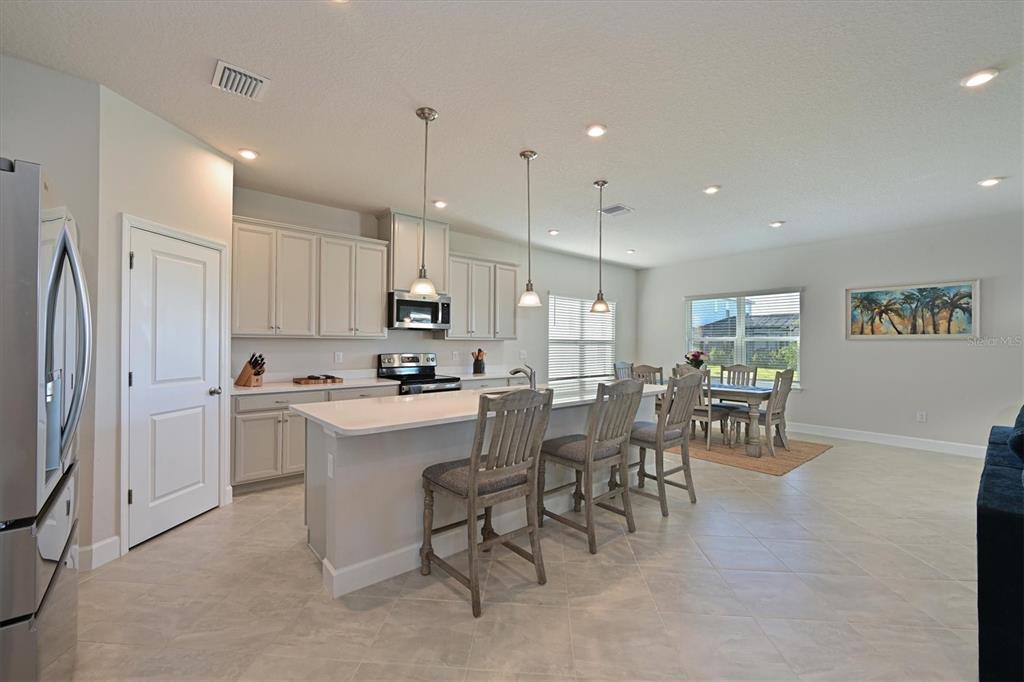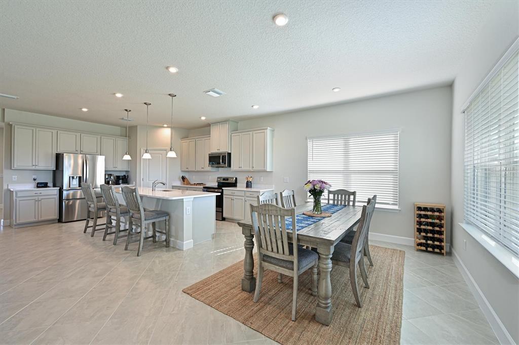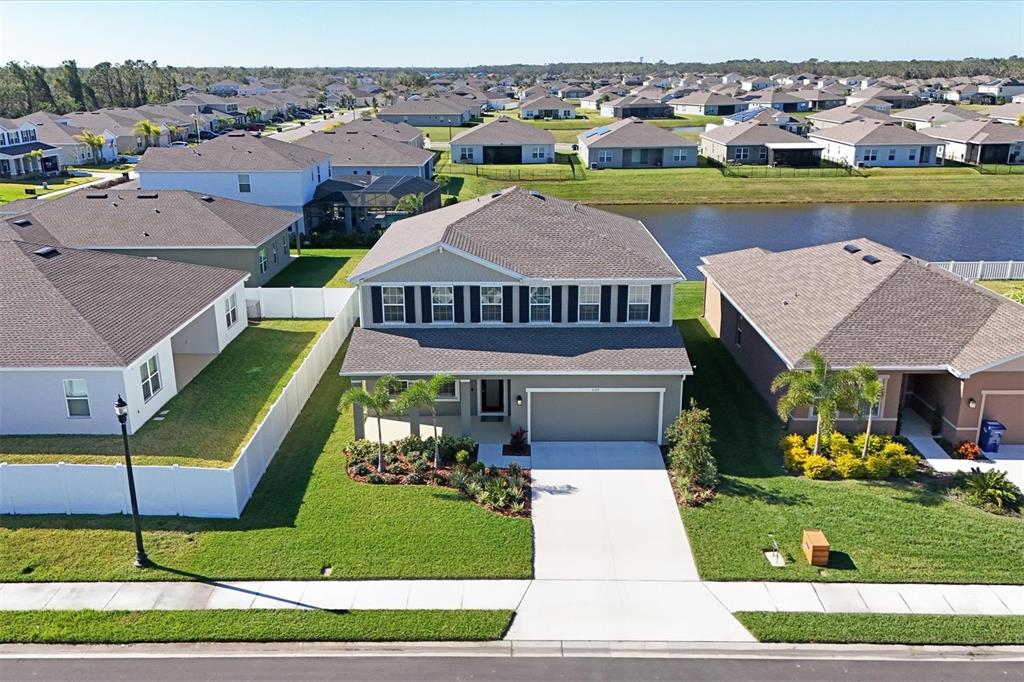 Welcome to your dream home! this like-new, 2-story gem offers a spacious open floorplan. boasting 5 bedrooms and 3 bathrooms, this home is perfect for families of all sizes. the kitchen with large island and walk-in pantry has a dinette area and overlooks the family room making it ideal for entertaining. a downstairs bedroom, which is currently set up as a home office, has a full bathroom right outside its door making it a great space for your out of town guests! the spacious primary bedroom features two walk-in closets. three additional bedrooms and a huge bonus area provide endless possibilities for a game room, play area, or second living space. enjoy serene lake views from the expansive lanai, perfect for relaxing evenings or weekend gatherings. the garage floor with epoxy coating adds a polished touch and extra durability. amenities include a community pool and playground. you won't want to miss this move in ready home!6107 116TH E, PARRISH, FL 34219