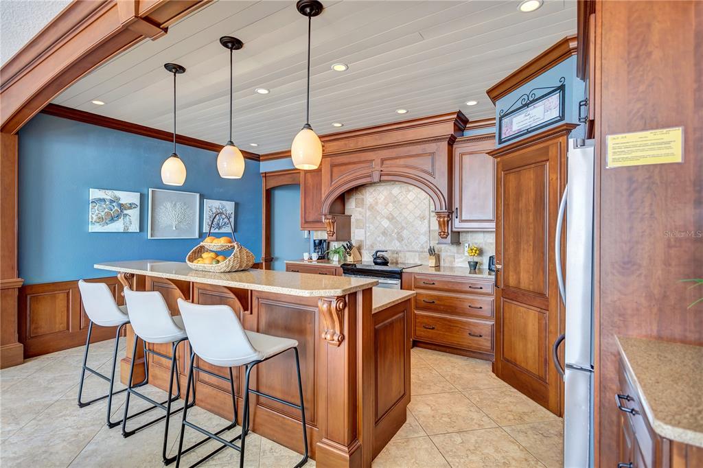 Built-in FeaturesCeiling Fan(s) High Ceilings Stone Counters Open Floorplan Window Treatments Solid Wood CabinetsCrown Molding Kitchen/Family Room ComboExterior Features: