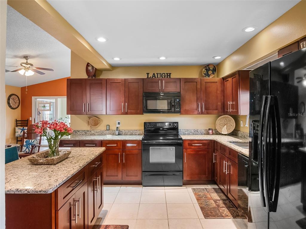 No rear neighbor! this renovated 3 bedrooms, 2 bath home features screen enclosed court-yard entry, new double pane, double door and side light entry that greets you with an open floor plan with tiled floors throughout (no carpet)! granite kitchen counters, cherry cabinets, all appliances, eat-in kitchen/dinette space, breakfast bar/island over-look the family room. split bedrooms with the primary retreat located at the rear of the home and has an en suite bath, walk-in closet and direct access to the family room. lots of windows make for a light and bright feel, while over-looking the green space/conservation area beyond the home. there's even an open patio to enjoy the outdoors. separate dining room also has soothing views of the outdoors and is light and bright. bedrooms two and three, at the front of the home, share an updated guest bath in the hall with new vanity and a shower-tub combination. an interior laundry room comes complete with washer and dryer. don't let this over-sized single car garage deter you; it boasts 486 square feet... more like a 2-car garage. the lot is landscaped and well maintained, like the home. roof 2020! hvac 2016! water heater 2024! updated electrical panel to siemens. solar tube in living room offers lots of natural lighting. furniture optional! highland lakes is a gated 55+ community situated in central florida just south of leesburg & offers residents the following amenities: recreational clubhouse with two swimming pools; indoor (heated) & outdoor, a softball field complete with concession stand, an indoor arena with a stage for comm. events, complete kitchen, billiard/ping pong rm., 4 tennis courts (2 courts are lighted), 1 indoor tennis court, 8 lighted shuffle board courts, bocce ball courts, 2 outdoor and 4 indoor pickleball courts, 7 horseshoe pits, covered picnic pavilion with picnic tables & grills to barbeque, library, meeting/card room, exercise room/fitness, craft room, golf driving range, rv/boat storage (included in hoa) & has 260 spaces on a secured lot (fenced & lockable), a craftsmen building/woodworking shop (homeowners can join the club for only $12 annually and use any/all tools available), there's also a nature trail within the community & seven lakes scattered throughout highland lakes; 4 are used by residents for catch & release fishing! don't wait............. call now to schedule your private tour!6212 WADE, LEESBURG, FL 34748