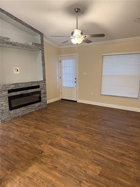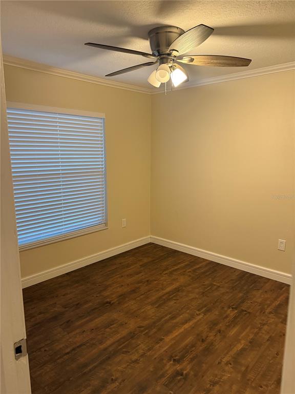 Ceiling Fan(s) Stone Counters Thermostat Window TreatmentsCrown Molding Kitchen/Family Room ComboExterior Features: