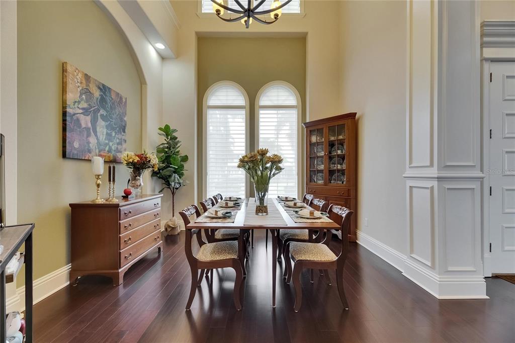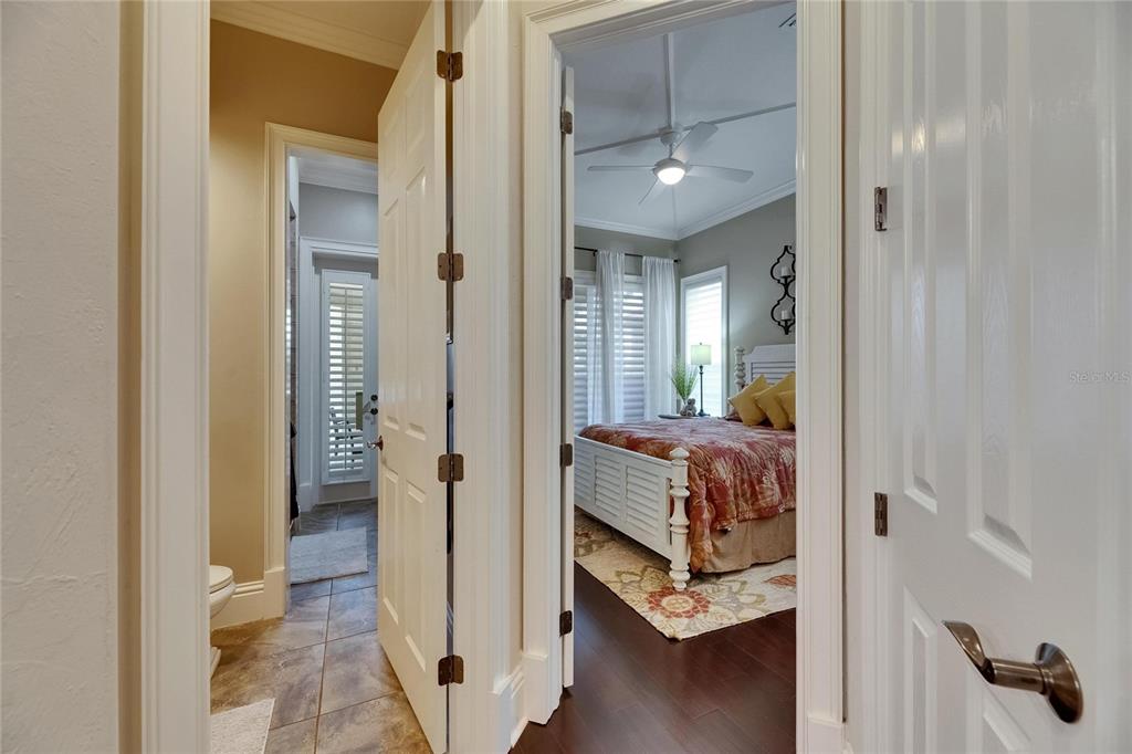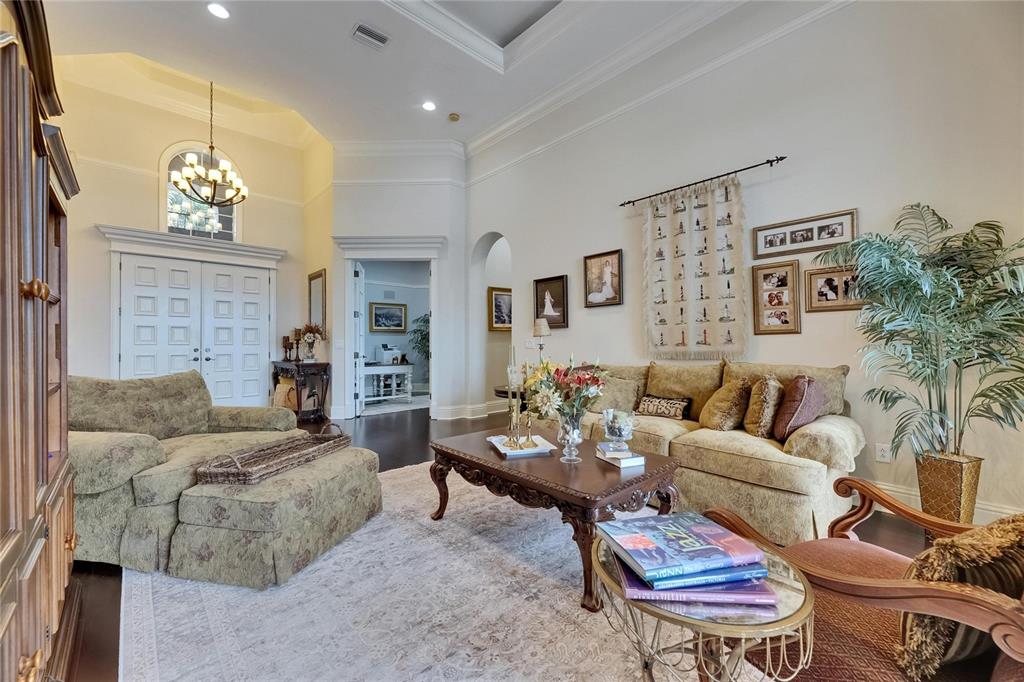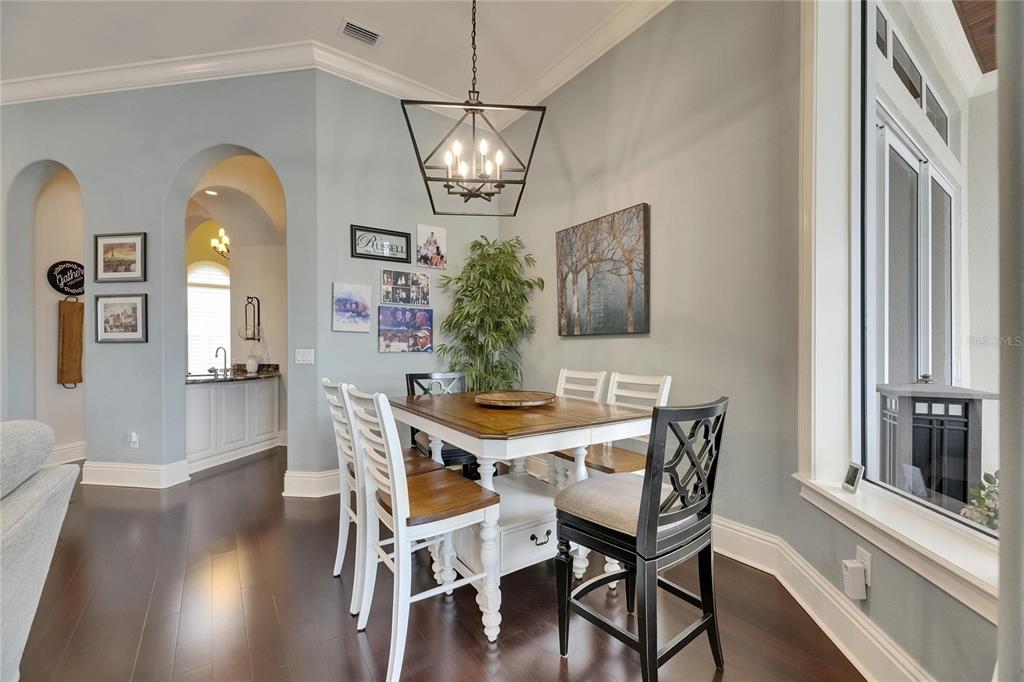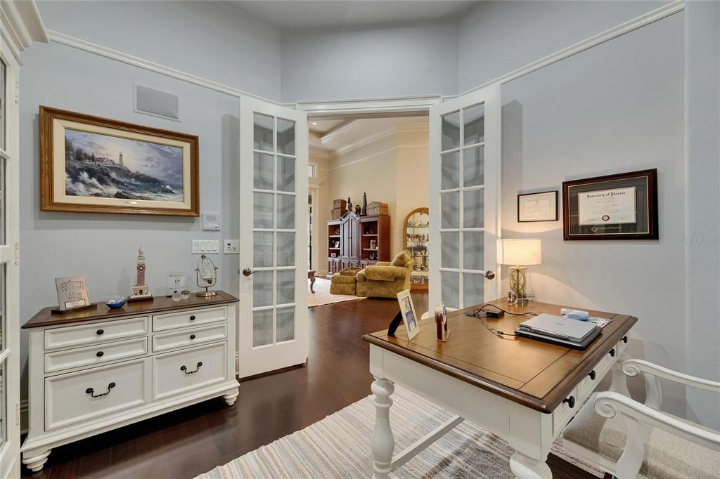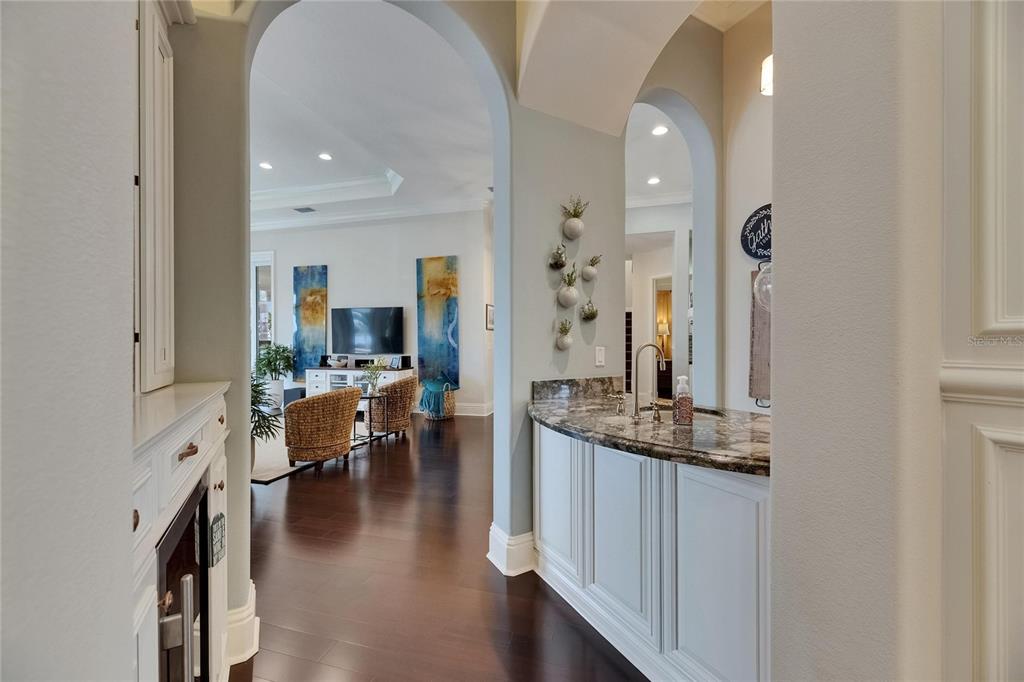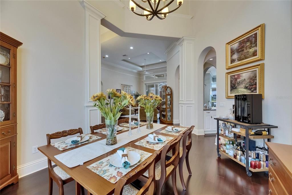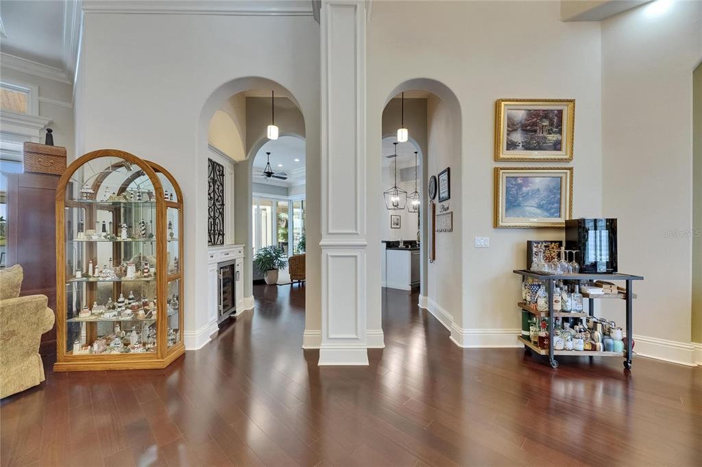 Split BedroomWet Bar Walk-In Closet(s)Ceiling Fan(s) High Ceilings Open Floorplan Solid Wood CabinetsCrown Molding Primary Bedroom Main Floor In Wall Pest System Dry BarExterior Features:
