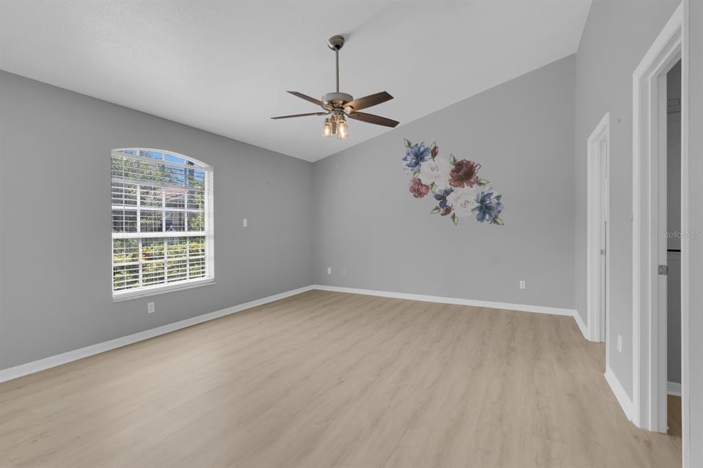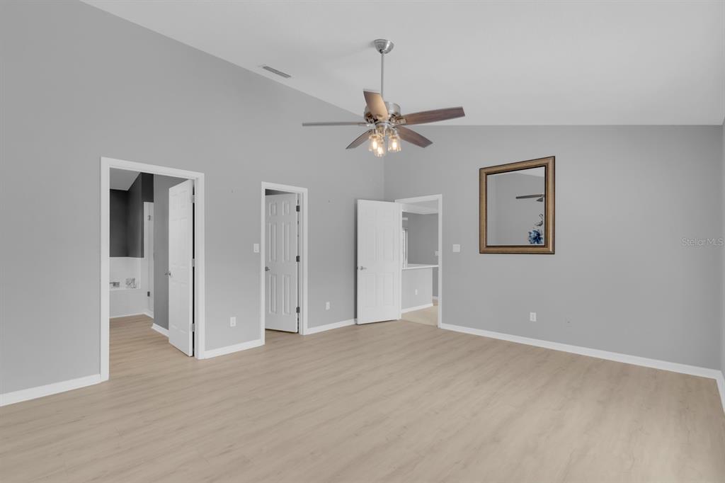 Split Bedroom Walk-In Closet(s) Vaulted Ceiling(s)Ceiling Fan(s) Thermostat Open Floorplan Window Treatments Solid Surface Counters Solid Wood CabinetsCrown Molding Primary Bedroom Main FloorCathedral Ceiling(s)Exterior Features: