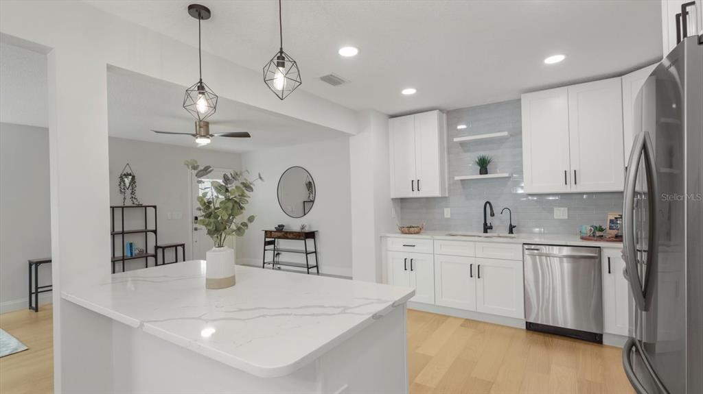 Welcome to this stunning fully updated home located at 6291 63rd st n! this charming house offers a truly exceptional living experience. with 3 bedrooms and 2 bathrooms, this property is perfect for families or those seeking extra space. as you step inside, you'll immediately notice the open floor plan that creates a bright and airy atmosphere throughout the home. the large and versatile living space provides endless possibilities for entertaining guests or simply enjoying quality time with your loved ones. the chef's kitchen is an absolute dream, featuring beautiful granite counters, a large island, and a convenient breakfast bar. the stainless-steel appliances and undermount sink add a touch of elegance, while the beautiful tile backsplash completes the look. the high-end finishes and lighting give the kitchen a modern and sophisticated feel. this property also offers additional living space that can be used as a home office or flex space to suit your individual needs. the well-sized bedrooms provide plenty of room for relaxation and personalization. the master bedroom stands out with its vaulted ceiling and ample floor space, creating a private retreat within your own home. all bathrooms in this house have been fully updated and boast beautiful appointments, ensuring a luxurious experience every day. you'll also love the large backyard, fully fenced for privacy, where you can enjoy the lovely florida weather year-round. additional features and upgrades of this property include a water softener, pool removal & backfill, st augustine sod and new irrigation system, a 12'x12' shed for extra storage space, and 11.6 kw dc solar panels for energy efficiency. the large pantry provides ample storage space for all your essentials. for added peace of mind, an adt security system with impact sensors on all windows, open sensors on all exterior doors, flood sensors next to the water heater, and 3 smoke alarms is included. don't miss out on the opportunity to make this beautiful house your new home. schedule a showing today and experience the true meaning of comfort and luxury!6291 63RD N, PINELLAS PARK, FL 33781