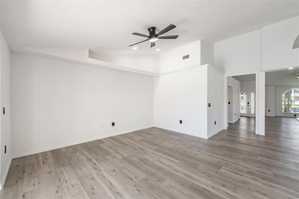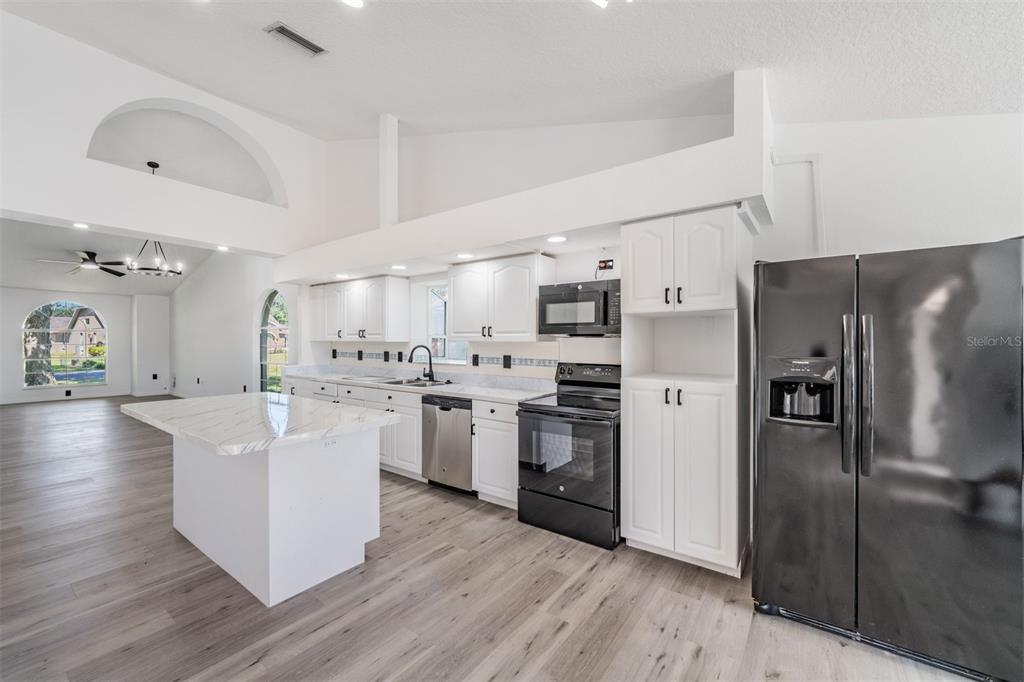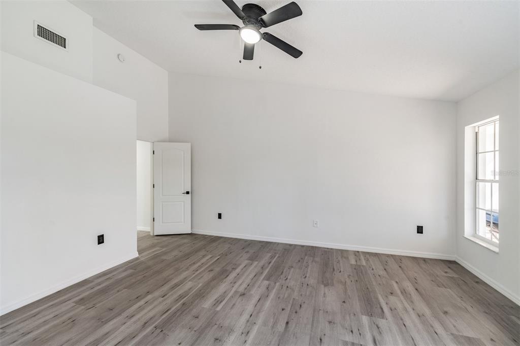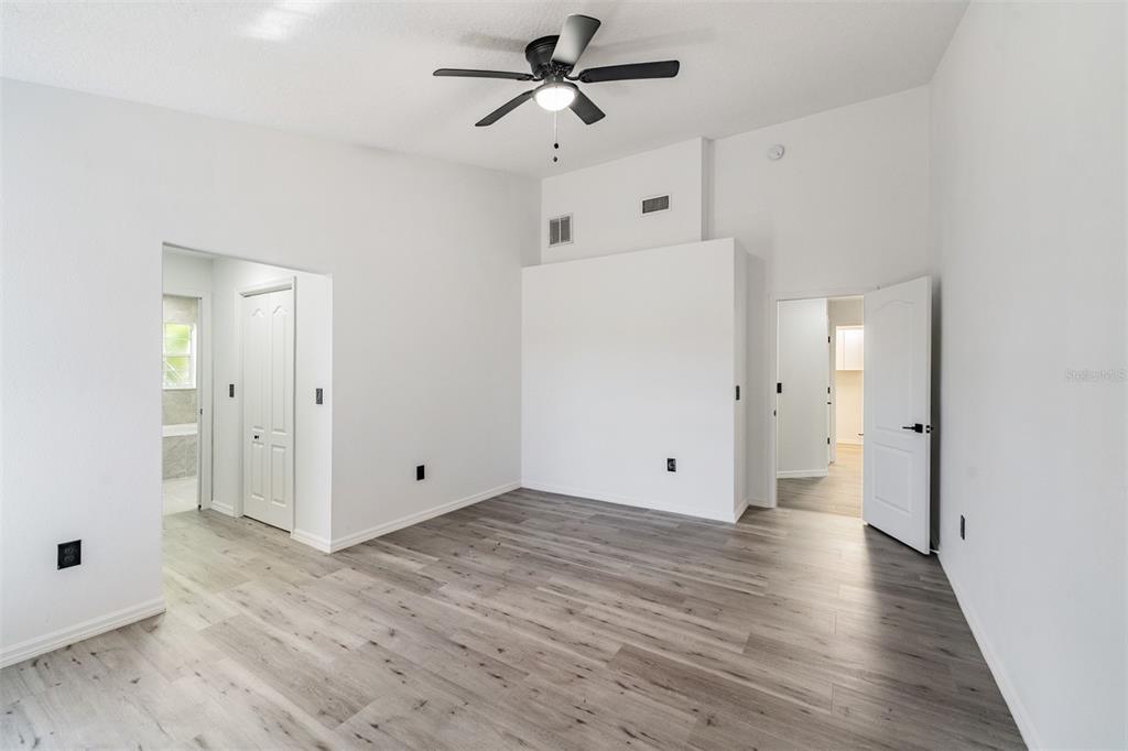 Walk-In Closet(s)Ceiling Fan(s) High Ceilings Thermostat Open Floorplan Solid Surface Counters Solid Wood CabinetsCrown Molding Kitchen/Family Room ComboExterior Features: