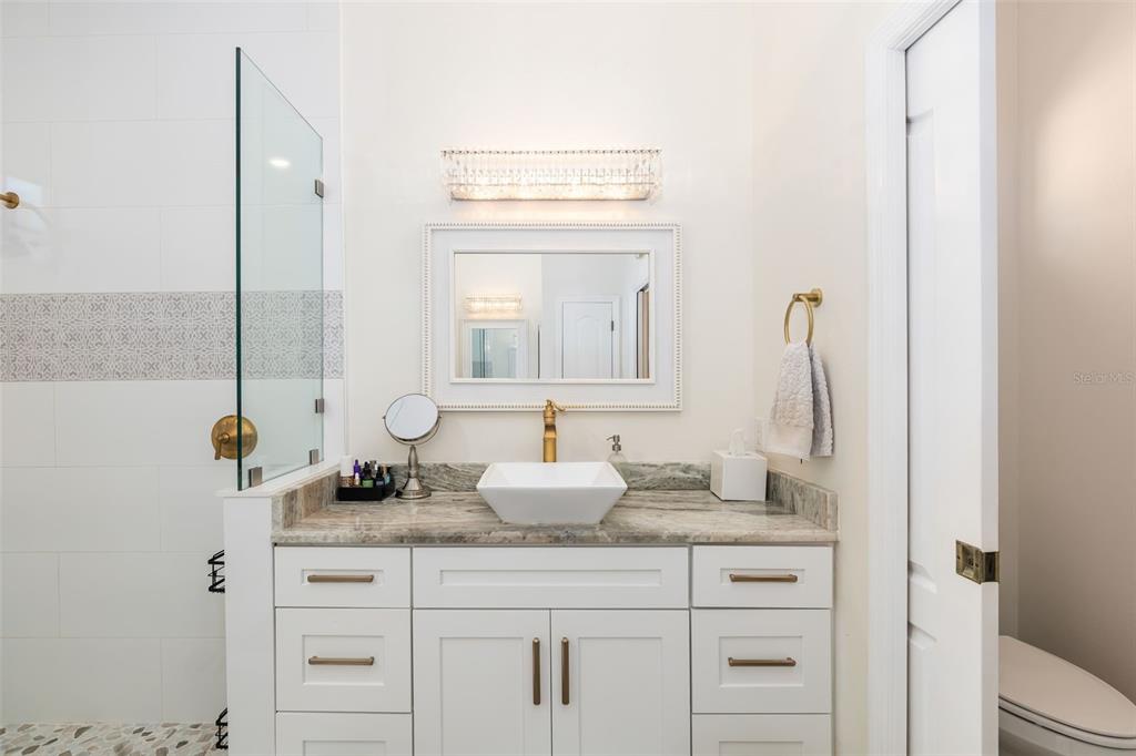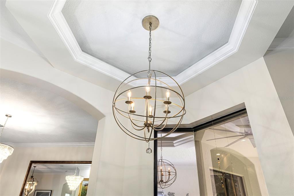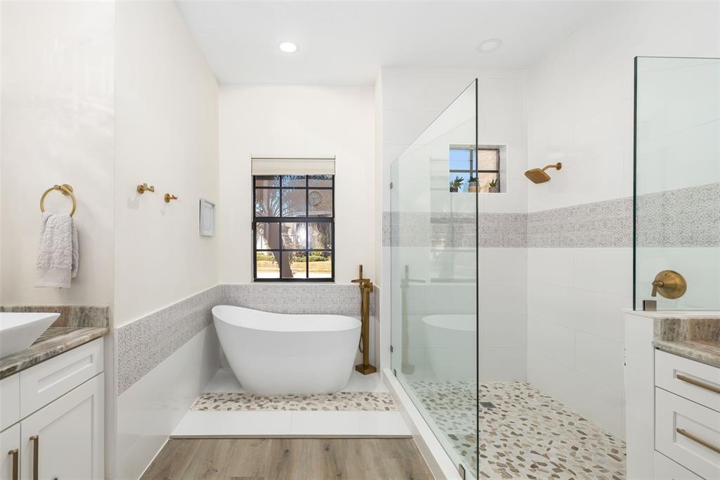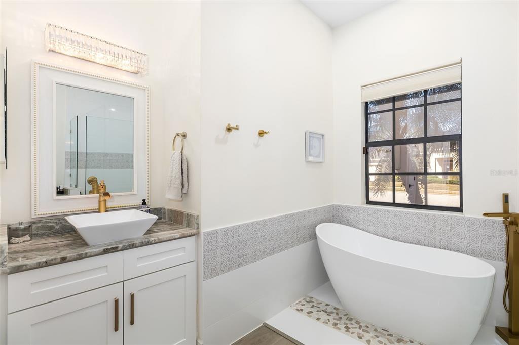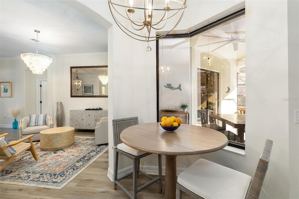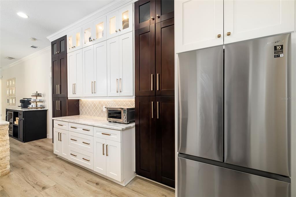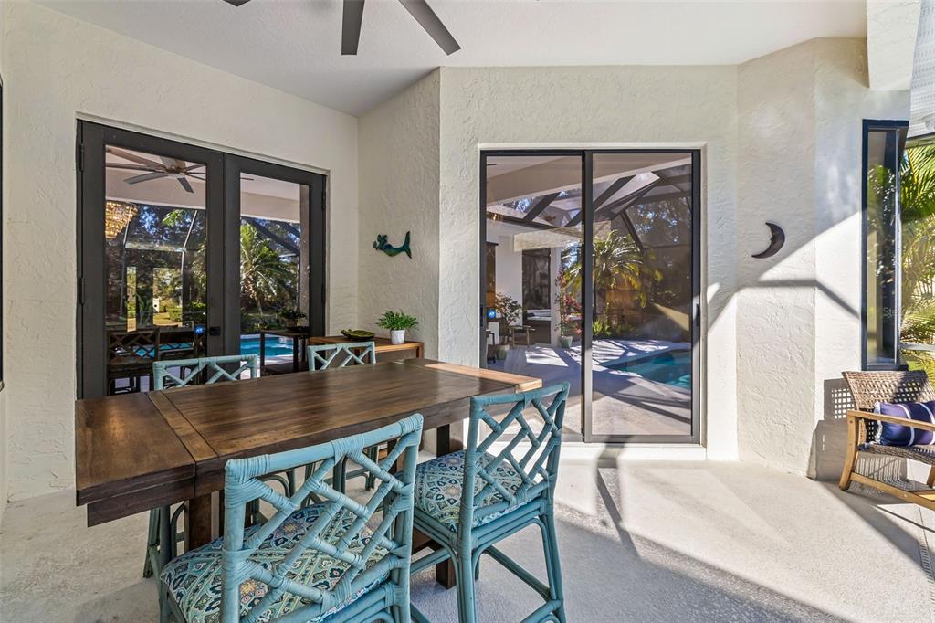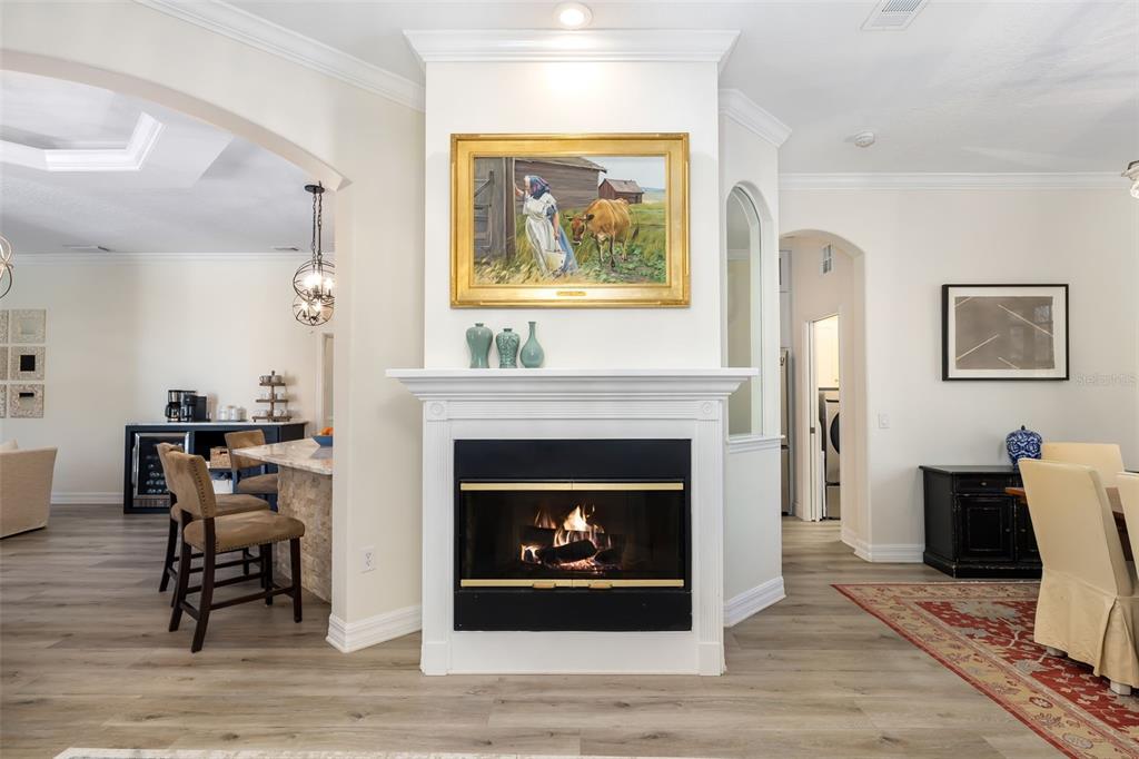 This impeccably maintained greenbrook home features a side-entry oversized garage, a paver driveway, a charming front porch, and a stacked stone façade. the property also boasts a 2-year-old roof with full-house gutters and a new 6-camera adt security system with alert 360. the peaceful rear lanai is home to a heated saltwater pool with a new filter, a freestanding therapy spa, and a southern rear exposure. inside, you'll find luxury vinyl plank flooring throughout the living areas, custom light fixtures, an electric wall fireplace in the living room, 5 ¼” baseboards, and an abundance of crown molding and architectural details. the kitchen is a chef’s dream with white and cherry cabinetry, granite countertops, 42” upper cabinets with additional stacked glass-front lit cabinets reaching the ceiling, pull-out drawers in the base cabinets, a stainless steel gas stove and appliances, a farmhouse sink, and a built-in wine and coffee bar. the home also includes a whole-house water filter and softener. all four bedrooms feature built-in closet systems, along with a spacious home office. double-pane bronze windows add energy efficiency, while the garage offers extra storage above the car space and built-ins. the garage door opener comes with a transferable 3-year warranty. the laundry room is fully equipped with ample cabinets and storage space. the exterior showcases genuine curb appeal with upgraded landscaping and lighting. greenbrook is a fantastic community within walking distance to a-rated mcneal and nolan elementary & middle schools. the greenbrook adventure park offers ball fields, inline skating, dog parks, walking trails, playgrounds, pickleball/tennis courts, and a pavilion. the neighborhood has incredibly low hoa fees—less than $10 per month—and is conveniently located within lakewood ranch, close to lakewood ranch main street, waterside, restaurants, shopping, and just a short drive to sarasota’s crystal-clear beaches, including siesta key, bradenton, and anna maria island. some furniture may be available for purchase via a separate bill of sale.6305 ROYAL TERN, LAKEWOOD RANCH, FL 34202