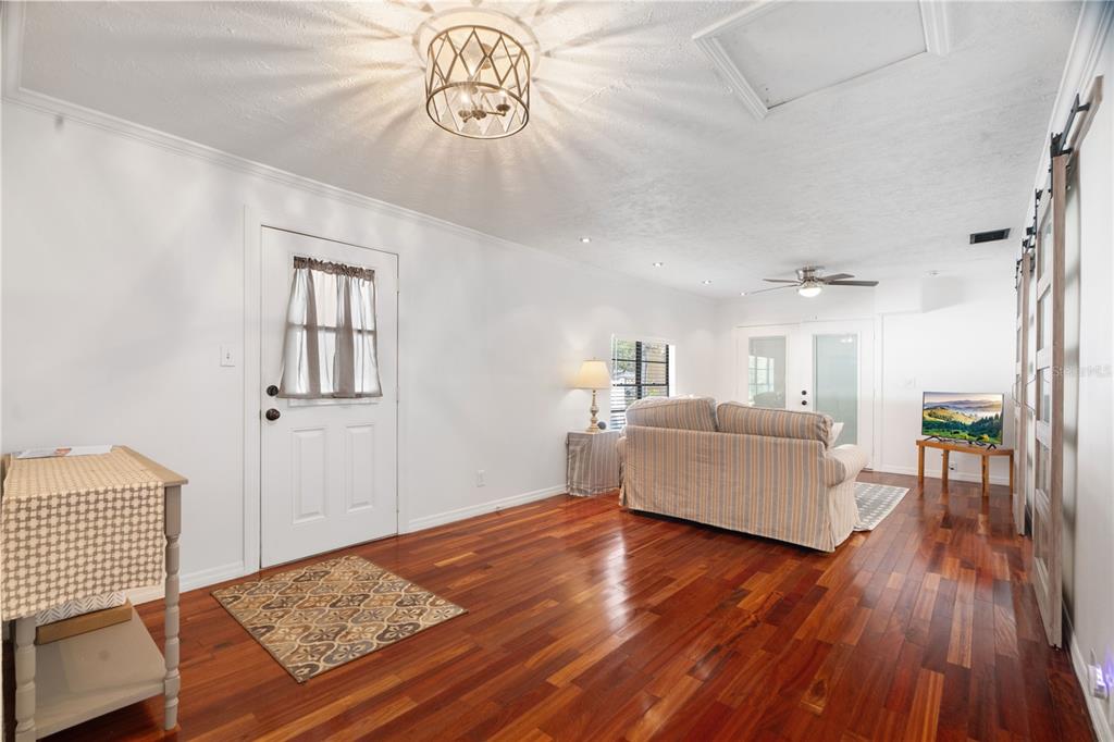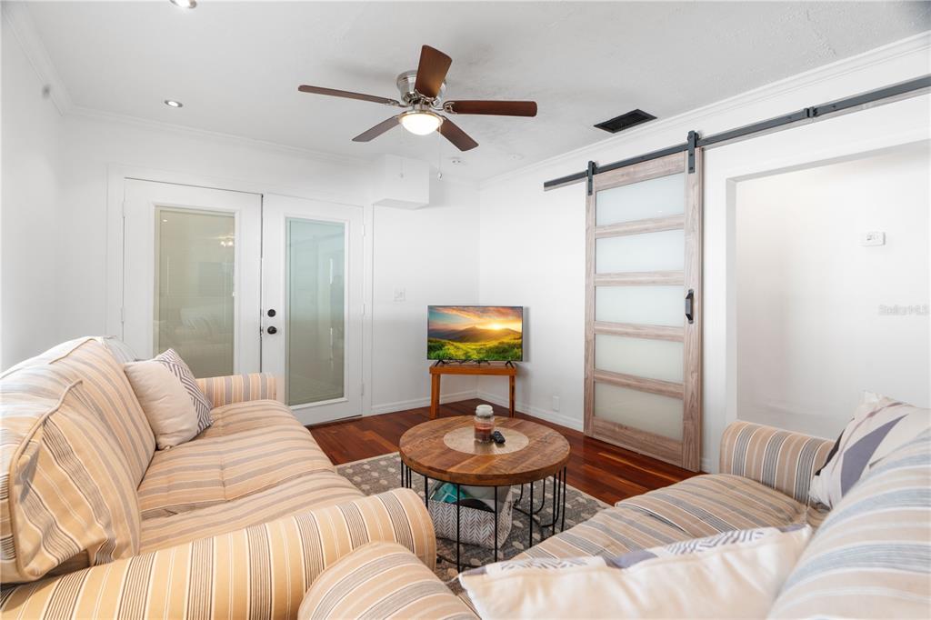 Welcome to highly desirable south tampa 2 bed, 2 bath with easy 3rd bedroom or office with carport updated cottage is charm at its finest! entering the front door, you'll notice the main living/dining area that boasts gorgeous hardwood floors. to the right is the kitchen which features wood laminate flooring, contrasting gray cabinets, stainless steel appliances, large sink, and stylish countertops. off of the living room through double doors is a second bedroom, which is currently being used as on office and has a separate entrance. on the left side through fabulous modern barnyard doors, you will find the primary bedroom, 3rd bedroom, and 2nd full bath. the primary bedroom sits towards the front of the home and showcases an enormous chic ensuite bathroom with stunning white marbled tile, stylish vanity, and a large decorative tiled walk-in shower. head back through the kitchen to access your covered back porch and to your large backyard, featuring a separate huge covered patio area and extended paver patio. the utility shed is great for extra storage! enjoy the convenience of extra parking in your curved driveway, and the privacy of a fenced yard! no hoa! this is zoned for ballast point elementary and robinson high school! conveniently located just minutes away from macdill afb, downtown tampa, restaurants, entertainment, shopping, hyde park village, interbay commons-future development including daycare, shopping, and townhomes, tampa international airport, and within a 30-minute drive to gorgeous gulf beaches! location and charm all tied into one! seller pays $1103/year for flood insurance and policy is assumable.6305 S MACDILL, TAMPA, FL 33611
