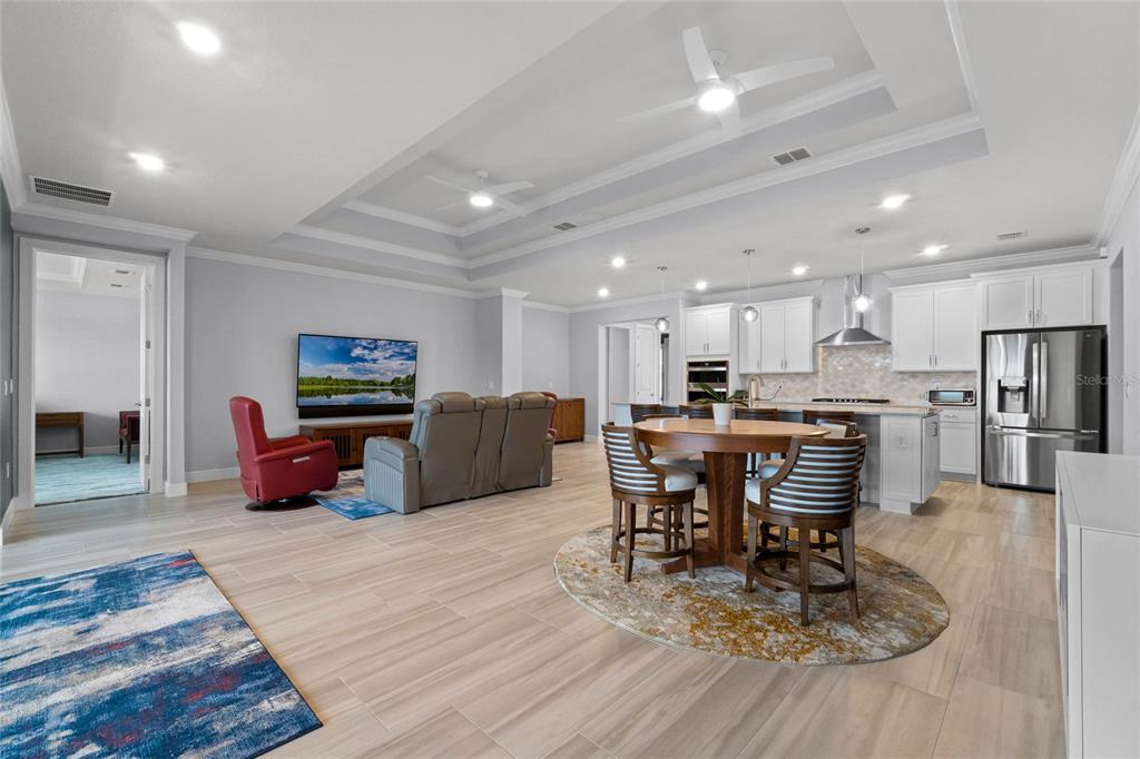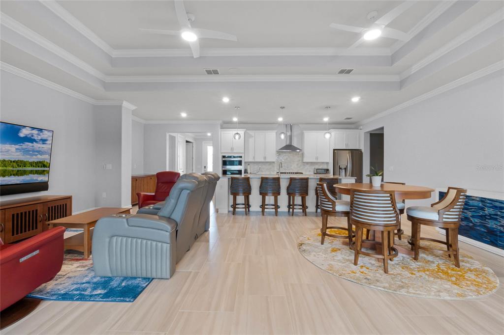 Split BedroomCeiling Fan(s) High Ceilings Living Room/Dining Room Combo Stone Counters Thermostat Open Floorplan Window TreatmentsCrown Molding Tray Ceiling(s)Exterior Features: