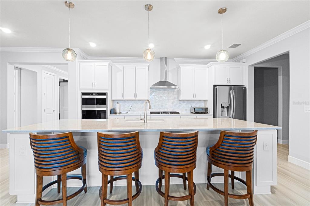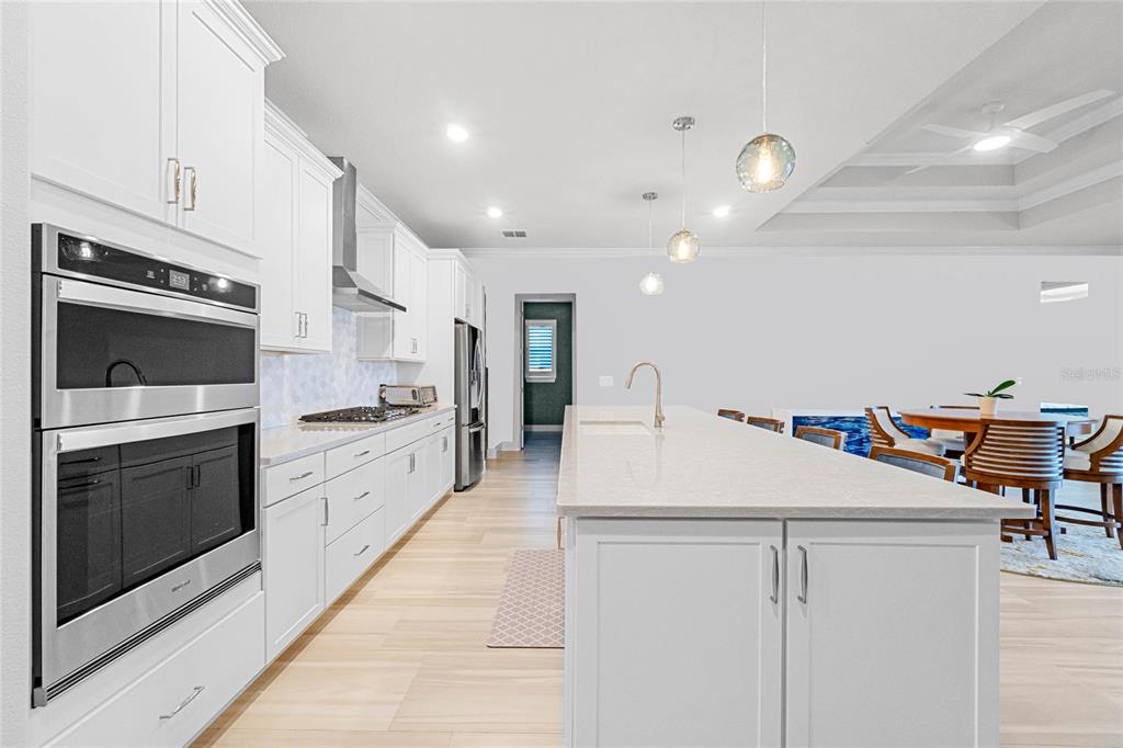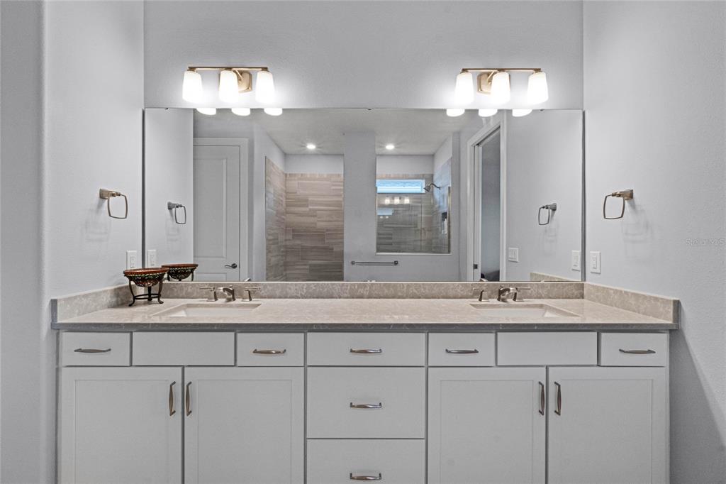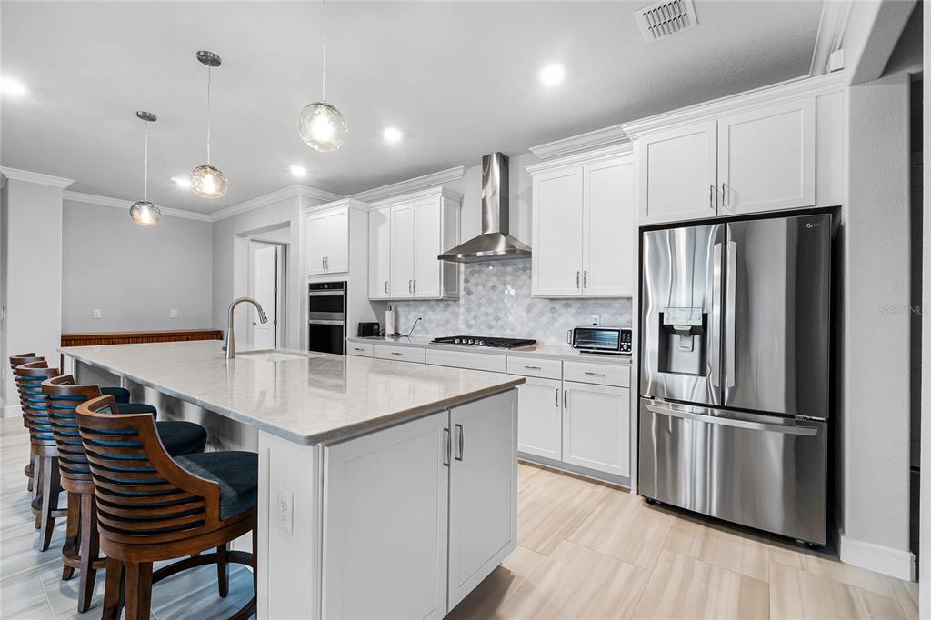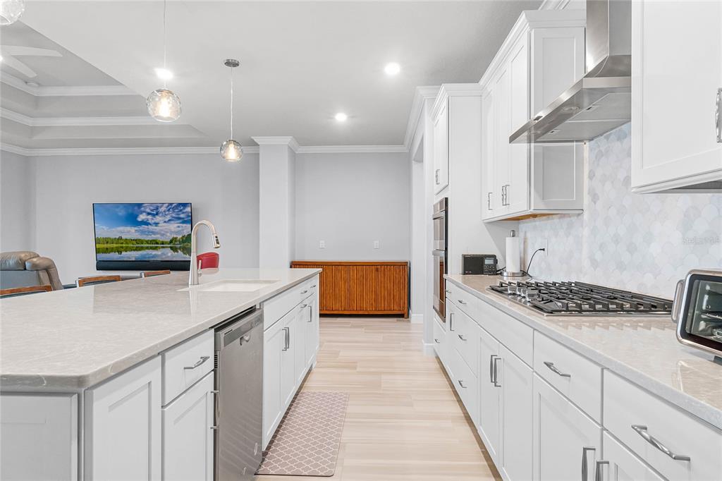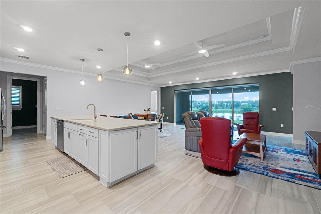 Welcome to your retirement retreat! over $180,000 in builder and post-closing upgrades on a premium waterfront lot. in the highly sought-after active adult community of del webb sunbridge, this stunning 2022 built stardom floorplan by pulte offers 3 bedrooms, 2.5 baths plus a bonus room in 2,270 square feet of beautiful living space. attention to detail and upgrades are evident throughout the home. the kitchen features an oversized island, modern finishes, natural gas cooktop, and open space for entertaining. plantation shutters throughout provide classic style, while remote-controlled retractable darkening blinds on the fully retractable sliding doors provide ease of use and convenience. step outside to your extended covered lanai, complete with a remote-controlled retractable screen to enjoy water views in total comfort. every room and piece of trim has been meticulously repainted, making this better than new from the builder. the california closets in each bedroom and the laundry room provide ample storage solutions with a custom touch. this home also boasts a three-car garage for extra parking and storage space. del webb's premier amenities include 24-hour guard-gated security, fiber optic internet, and access to top-notch recreational facilities such as pickleball and tennis, pools, a 27,000 square foot clubhouse with fitness, an on-site restaurant and a vibrant schedule of community-organized social events. if you're looking for a low-maintenance lifestyle in an active, amenity-rich community, this home is a must-see. save nearly $100,000 over building this home new. some appliances have never been used. you must see to appreciate the attention to detail.6308 MOSSY OAK, ST CLOUD, FL 34771