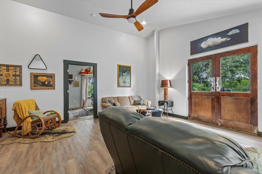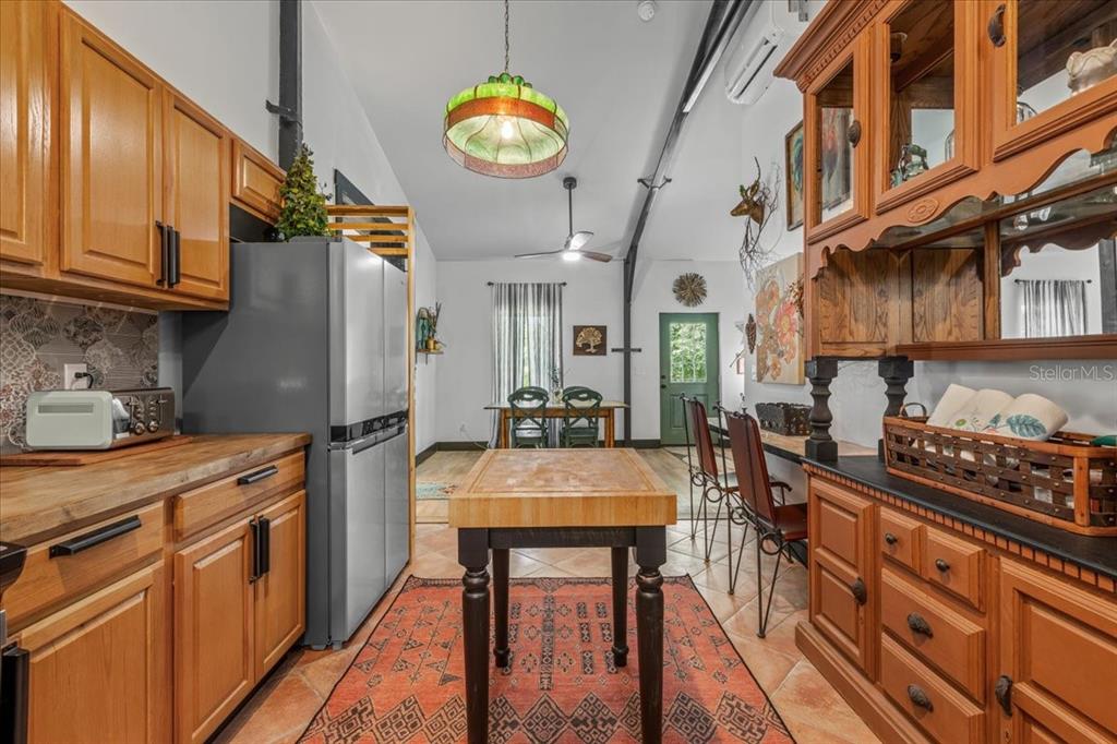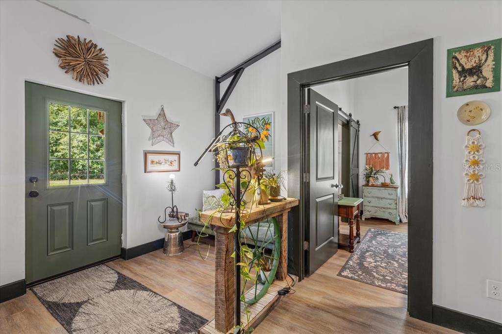 2023 industrial style custom farm house with copper metal roof on gorgeous 9.92 acres , located on a paved road just before 3 acres of push pastures in the front perfect for horses and gorgeous mature pines with a dream like private drive to showcase this gorgeous custom home. this home is a dream! 2 master bedroom suites with 2.5 bathrooms and a gorgeous open floor plan. this home has an additional 600 sqft concrete pad with footers ready for additional space if needed. home currently is 1500 h/c sqft of perfection. as you enter the home you will fall involve with the industrial style beams throughout , high end finishes and amazingly unique decorating taste. the kitchen is perfectly tasteful with a mexican style flare, mexican tile throughout kitchen with butcher block and granite countertops as well as stainless steel appliances. laundry room is oversized and spacious and offers an exit in the back yard. gorgeous lvp flooring throughout the whole home with a double mini split system as well as 2 additional mini splits offering extremely low and energy efficient power bills. 10-14 foot high ceilings with closed cell foam insulation makes this home top tier energy efficient. each master suit is oversized with beautiful light and a view of the quiet countryside. each bathroom offers custom tile work throughout with gorgeous custom vanities. windows are dual pane with deep antique brick window sills. outside it's a mini farm dream. around the home is fenced perfect for your pets to roam, while the yard can be used for the geese and chickens to free range. two storage sheds are offered with a 40ft shipping container perfect for storage as well as chicken coop and more. this property offers privacy as the home is quietly tucked behind the pines offering the two pastures in the front open for your horses and donkeys. this property was perfectly build and curated with love and care , no expense was spared. call today for your tour!631 NW 172ND, TRENTON, FL 32693