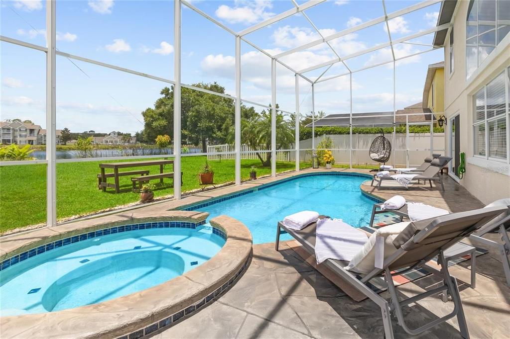 Lake view! income producing short term rental : $100k+ a year. experience the perfect fusion of modern luxury and serene lakeside living in this stunning 6 bedroom,3.5 bath home, ideally situated for both personal retreats and profitable short-term rentals—boasting a potential income of $10,000/ month! recently upgraded with a $100,000 renovation, this residence features stylish, durable vinyl flooring and soaring ceilings enhanced by large windows that bathe the interiors in natural light. brand new appliances, sleek countertops, and cabinetry, freshly renovated bathrooms. brand new ac - installed may 2025. brand bew pool heater -installed june 2025. every room is adorned with beautiful, high-end furniture and decor that exudes sophistication. a stunning grand piano graces the living room, a rare find that adds a touch of elegance and charm. step into the spacious first-floor master suite, which seamlessly opens to the pool deck, offering a private escape. enhancing the beauty of outdoor space are serene pool and lake views, creating an ideal environment for both entertaining and quiet relaxation. the 1/3-acre lot also boasts a thriving garden, featuring young fruit trees. this remarkable backyard is a true extension of your home. with every detail meticulously updated this home is truly move-in ready and comes fully furnished. nestled in a quiet community with low hoa fees, and just 15 minutes from disney, this property offers the ideal balance of luxury and convenience. schedule your private showing today and take the first step towards your dream home!632 PINEWOOD, DAVENPORT, FL 33896