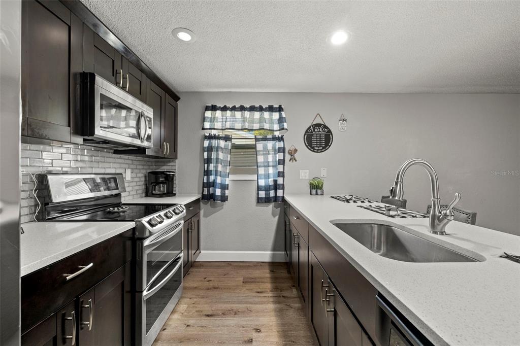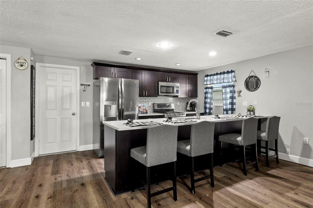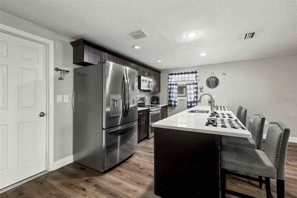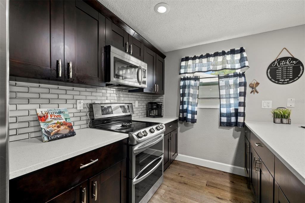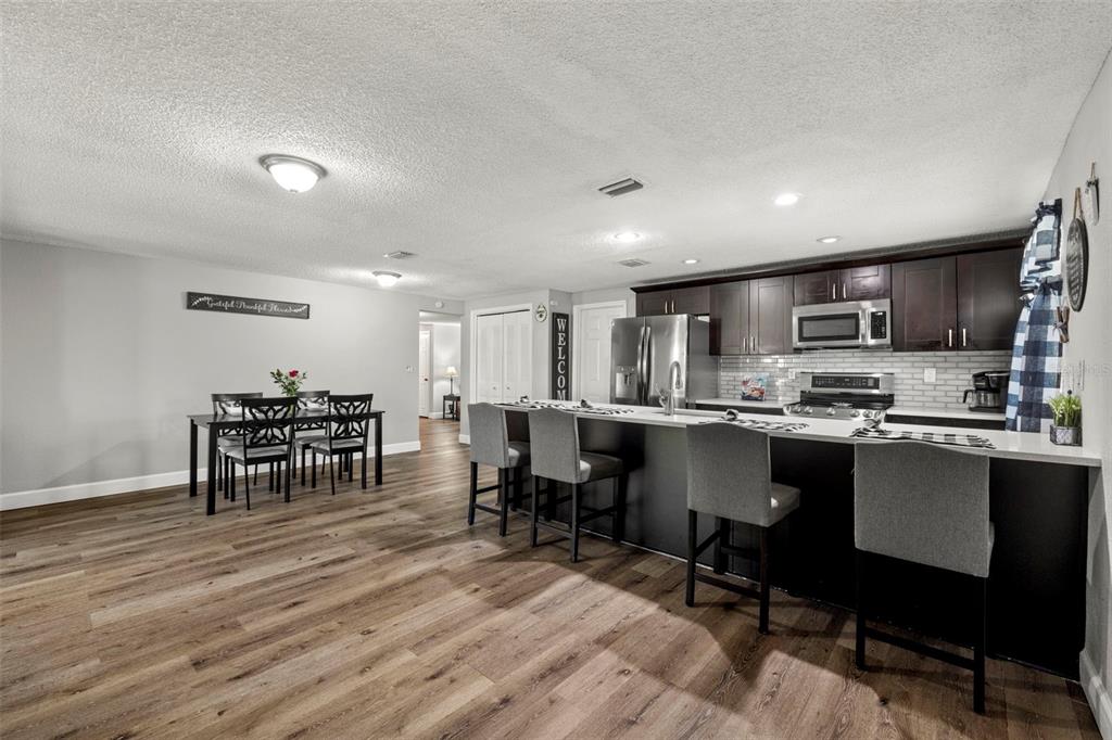 Nestled in the charming town of new port richey, just a quick 5-minute drive from the vibrant downtown area, this beautifully updated 3-bedroom, 2-bathroom home offers nearly 2,000 square feet of well-designed living space. this solid block home provides lasting peace of mind with no flood insurance required. step inside to discover vinyl plank flooring that flows seamlessly through the main living areas, enhancing the thoughtfully designed layout. the kitchen, fully renovated in 2021, is a chef's dream, featuring espresso soft-close wood cabinetry, classic white subway tile backsplash, and stainless steel appliances, including a double oven. quartz countertops and a spacious kitchen island with seating for 4-5 people add to the kitchen's appeal. the open-concept design connects the kitchen to the dining room and a bonus room, which is adorned with wood-like ceramic tile flooring—ideal for hosting gatherings. the oversized owner’s suite is a tranquil retreat, boasting ample storage and a beautifully updated ensuite bathroom with a stand-up shower featuring modern tilework. the additional two bedrooms are generously sized and share an updated bathroom. recent upgrades include a new water heater (2021), as well as updated electrical and windows. the attached garage houses a washer, dryer, and utility sink, adding to the home's practicality. outside, the fully fenced backyard offers the perfect setting for barbecues and outdoor enjoyment. new port richey’s downtown main street, just minutes away, is a hub of activity with annual parades, festivals, and boat parades along the cotee river. sims park provides something for everyone, from concerts at the amphitheater to a splash pad, kayak launches, and walking paths. whether you're catching a show at the historic richey suncoast theatre or exploring local boutiques and eateries, this town's small-town charm offers a slower pace of life, while easy access to us-19 keeps you connected to gulf coast beaches. this home combines affordability with an enviable lifestyle. don’t miss your chance—schedule your showing today!6333 ABERDEEN, NEW PORT RICHEY, FL 34653