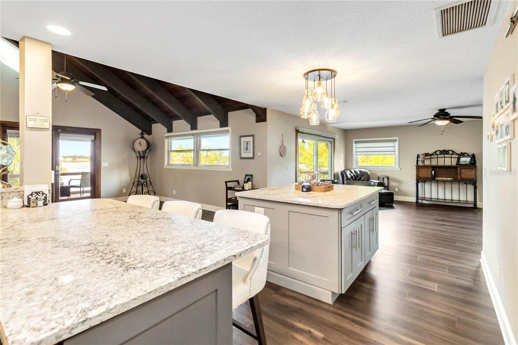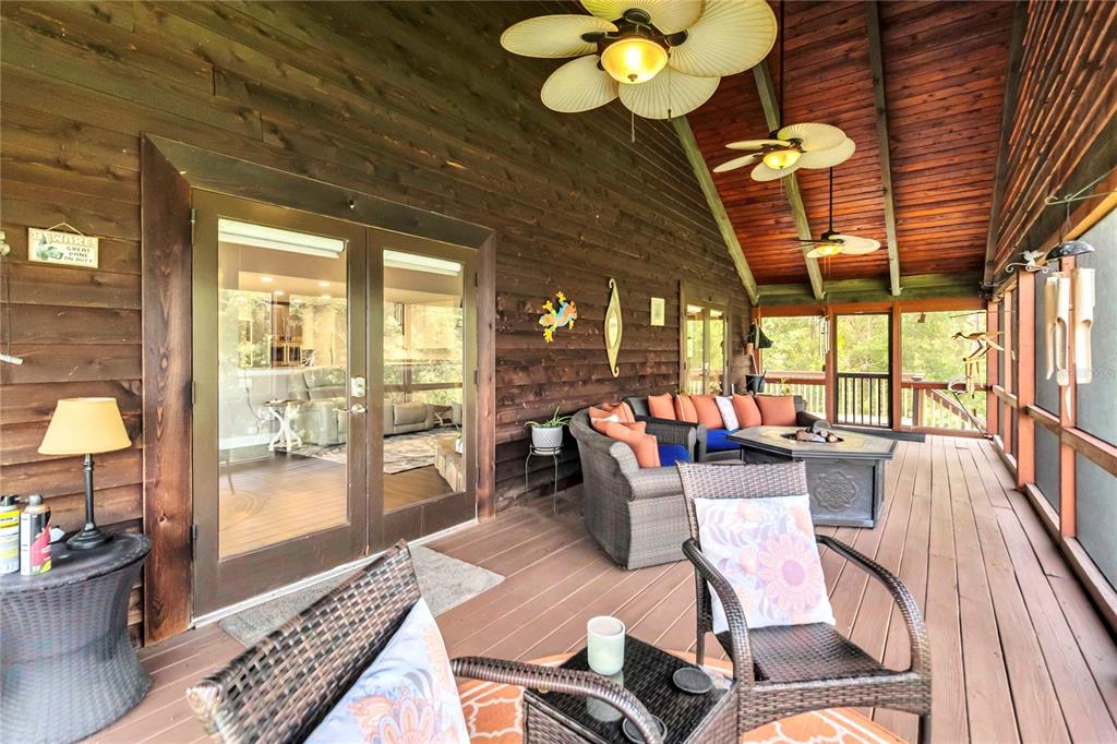 This stunning elevated lakefront home is a rare find. perfectly situated on lake lizzie with conservation area on one side and waterfront on the other. this 5-bedroom, 3-bathroom home invites relaxation and comfort. enter from the stairs leading to the front door of this completely remodeled one-of-a-kind home and walk through the entryway that leads into an open concept kitchen, dining and living area with vaulted wood ceilings and a large stone wood burning fireplace. the area is light and bright with skylights and double french doors, with hunter-douglas (2019/2020) remote powered shades on the upper level. the chef’s kitchen is well appointed, including quartz countertops, ceramic farmhouse sink, ge (‘café’) double ovens, microwave, 5 burner gas stovetop and hood, tru cabinets, bosch dishwasher and built in pot filler. after dinner, relax and enjoy the sunsets and wildlife, on the large newly screened in porch. there are additional lake views on the unscreened decks with sliding glass doors off the dining area and the master suite. take the spiral staircase to the in-law apartment, complete with it’s own full-sized kitchen and bath. the apartment has it’s own newly screened porch with a large swim spa installed in 2021, west facing on the lake. the entire home is set up for home automation. the most recent upgrades to the home include metal roof, front door, attic insulation for energy efficiency, rebuilt seawall, fencing, fire pit. there is also a generac 24kw generator installed in 2017 that seamlessly keeps power on throughout the home. there is a community boat ramp conveniently located adjacent to the property.6375 TOPSY, ST CLOUD, FL 34771