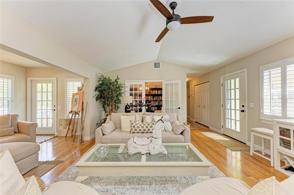 Beautifully updated and an open design you will notice the elegance from the moment you walk in the door! whether sitting in the formal livingroom, the cozy conversation area in front of the fireplace, or close the glass french doors to the office/library (use it as you wish). let's not forget the beautiful kitchen with large peninsula overlooking the nice size dining area. there is even a great little spot to enjoy coffee right in the kitchen looking out onto your private deck. also off of the kitchen is the laundry room, with extra storage and the entry from your two-car attached garage! speaking of storage this home has no shortage of it with large closets and extra closets around every corner it seems! a large primary suite offers a walk in closet and great ensuite bath. just down the hall you will find the second bedroom also with a walk-in closet and access to the second bath. out the back door is an oasis with a grilling area and sitting spot to enjoy the outdoors! literally just steps from your front door you will find the heated pool which is in a lanai for your enjoyment! the neighborhood has beautiful mature trees and landscaping. this truly is a little slice of heaven offering peace and tranquility. schedule a showing today to see all this home and community has to offer! note** per seller total sq. ft. is larger due to recent remodel enclosing lanai and opening to main living area per permit br231389.6402 23RD AVENUE W, BRADENTON, FL 34209