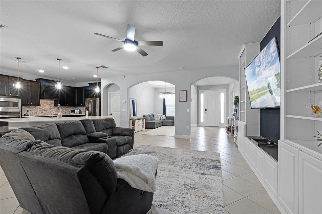 Walk-In Closet(s)Ceiling Fan(s) Eating Space In Kitchen High Ceilings Living Room/Dining Room Combo Stone Counters Thermostat Window Treatments Primary Bedroom Main Floor Kitchen/Family Room ComboExterior Features: