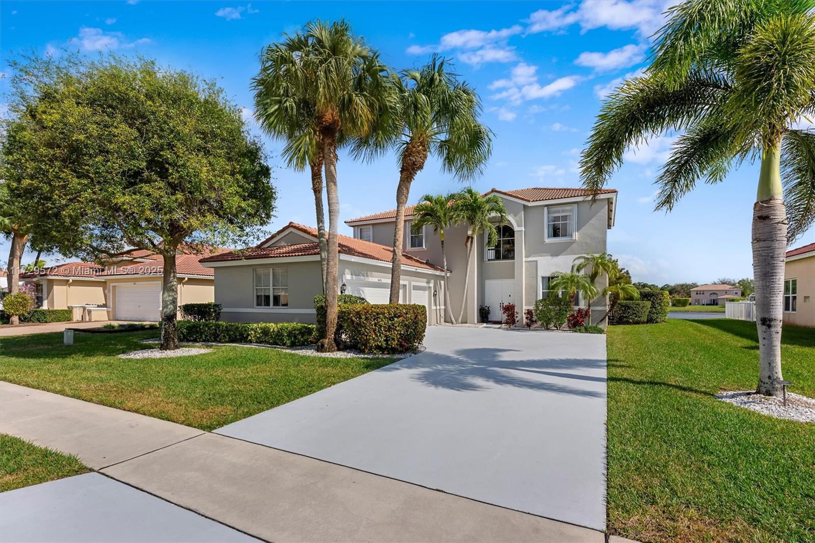 Experience luxury living in this elegant 5-bed, 3-bath, 2-story home w/ 3-car garage, located in prestigious winston trails, a gated community offering premier amenities such as tennis & pickleball courts, community pool, gym, and golf course. the grand entrance boasts soaring high ceilings adding a sense of space & elegance. a spacious open kitchen w/ bar-nook connects with family room & overlooks a stunning pool patio/backyard w/ serene lakefront views, the perfect setting for entertaining. formal dining & living rooms receive an abundance of natural light. master suite w/ separate tub & shower + 3 additional bedrooms upstairs. 1 bedroom & full bath downstairs. thoughtful upgrades: a/c & water-heater(2021) & new sprinkler system(2023). a rare gem for discerning buyers!6423 SAND HILLS CIR, LAKE WORTH, FL 33463