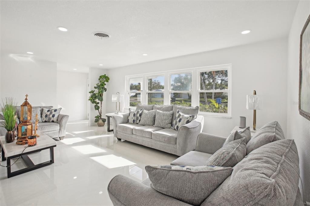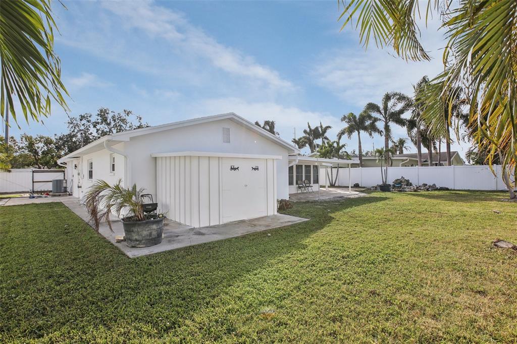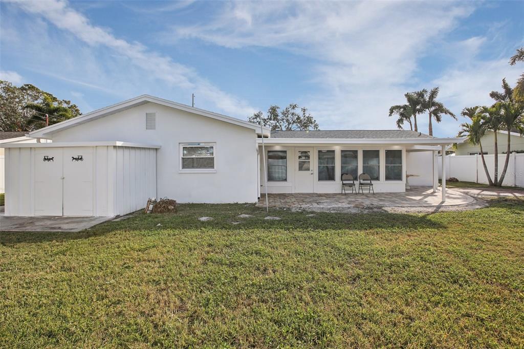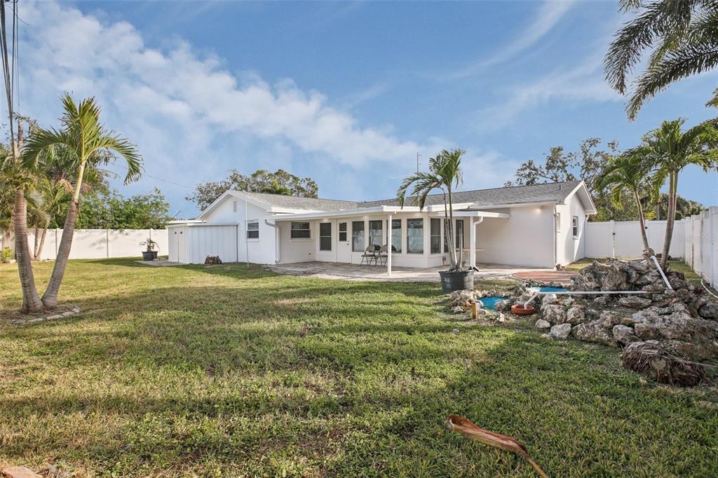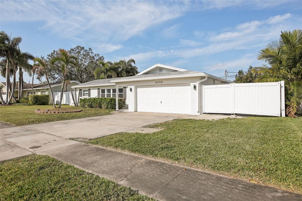 Experience the charm of this three-bedroom, two-bathroom house in the center of saint petersburg, florida's highly sought-after holiday park neighborhood. with a spacious living area of 1,791 square feet, this home provides the ideal balance of comfort and utility. enjoy the solitude of a fenced yard that encloses a large backyard, offering plenty of space for outdoor activities and leisure, and park your cars with ease in the handy 2-car garage. an extra outdoor storage shed adds functionality to your lifestyle, and the covered back porch creates the ideal atmosphere for fun get-togethers.in addition, the backyard has a lovely tiny waterfall. when you enter, you will see two warm living rooms with porcelain tile floors all over. granite countertops, stainless steel appliances, and solid white wood storage cabinets are just a few of the upscale kitchen's features that perfectly blend design and use. granite countertops, stainless steel appliances, and solid white wood storage. non flood zone.6459 30TH N, ST PETERSBURG, FL 33710