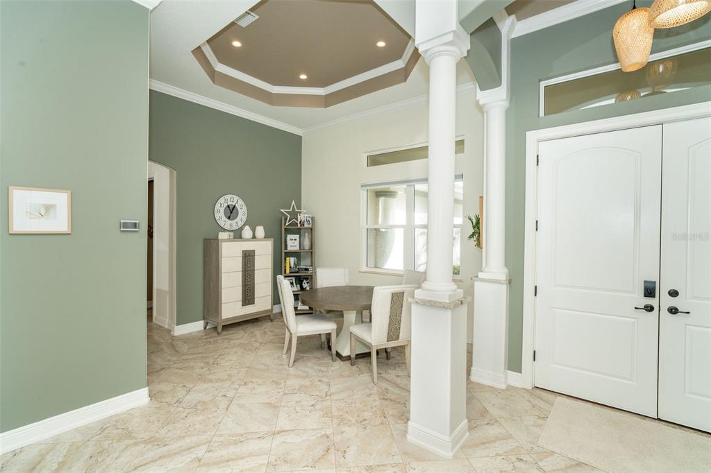 Split Bedroom Walk-In Closet(s)Ceiling Fan(s) Eating Space In Kitchen High Ceilings Stone Counters Thermostat Window TreatmentsCrown Molding Primary Bedroom Main Floor Kitchen/Family Room Combo Tray Ceiling(s)Exterior Features: