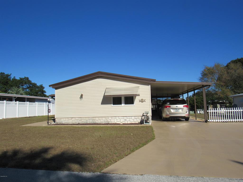 This 3/2 home shows beautifully! features laminate floors in main living area, carpet in bedrooms, vinyl in baths. the kitchen is spacious with 2 pantries. home is light and bright with cathedral beam ceilings and ceiling fans. there are many upgrades including pella windows, metal roof in 2010, water heater in 2011, and hvac in 2014. home has 2 screened porches and a utility shed. community clubhouse with pool.Manufactured Home 3 bedrooms - Ocala E Villas for Sale